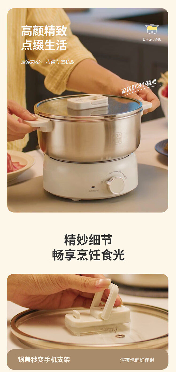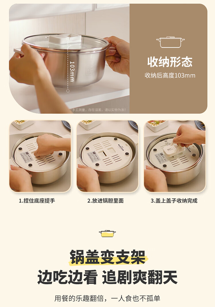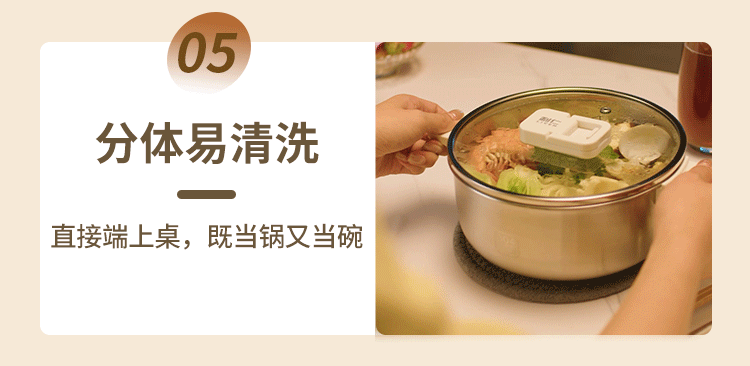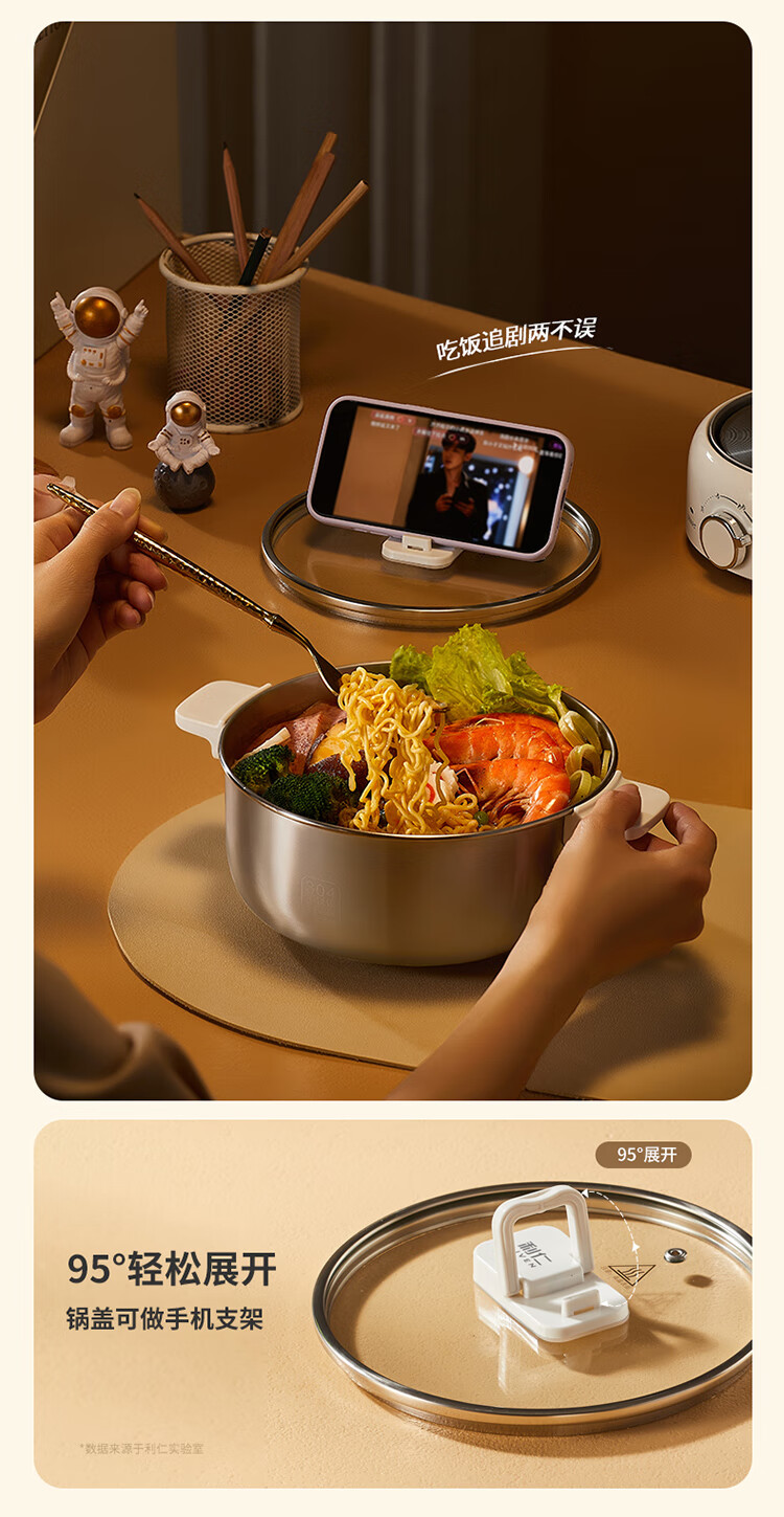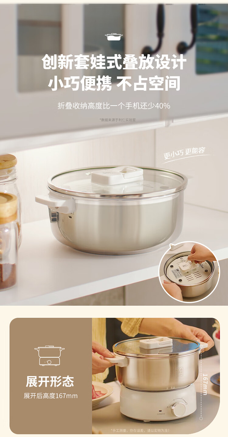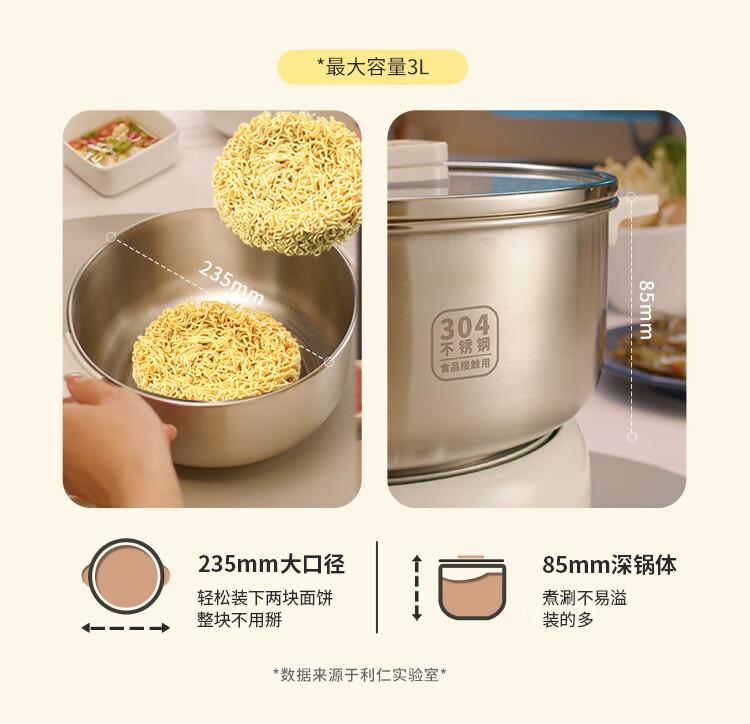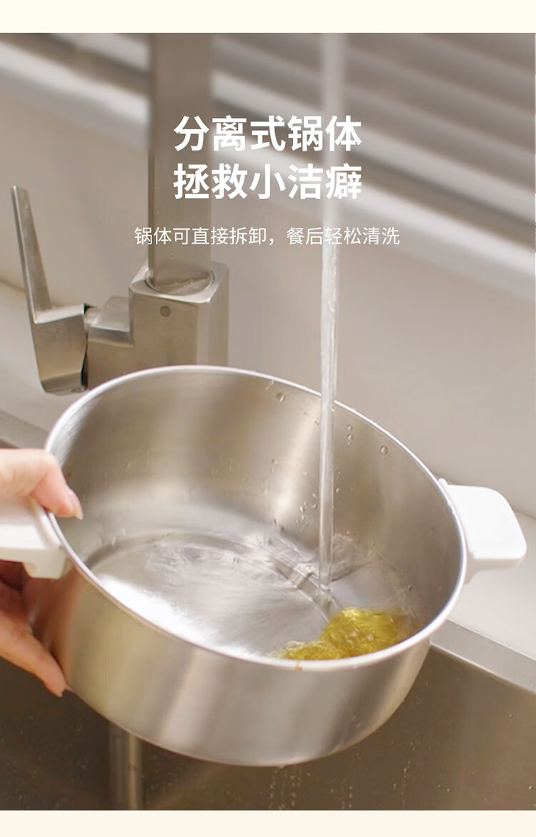利仁(Liven)小钢人304不锈钢电火锅小型2-3人用电煮锅分体式0涂层3升小电锅旅行锅火锅专用锅电热锅DHG-J346