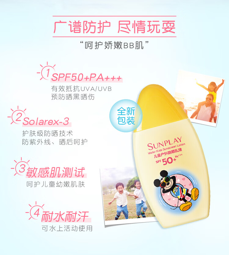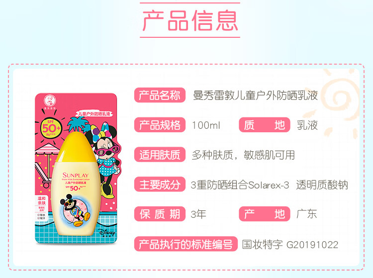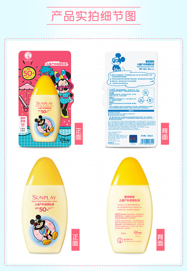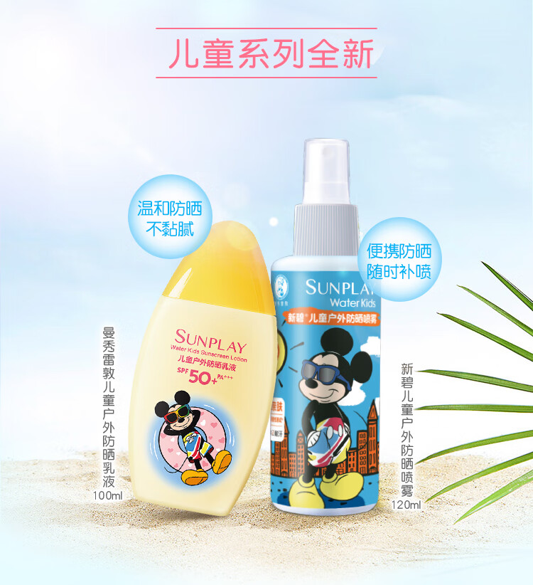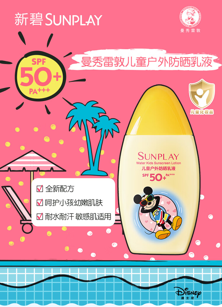 曼秀雷敦新碧儿童防晒霜100ml高倍防晒乳液清爽保护肤海边学生军训青少年