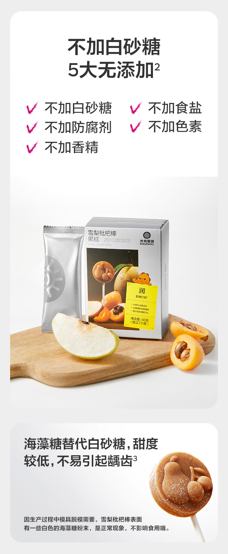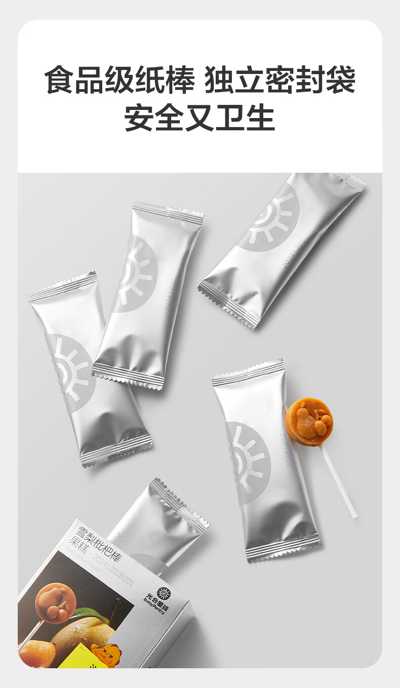 光合星球babycare儿童零食雪梨枇杷棒棒糖糕3岁+山楂棒清润不上火60g