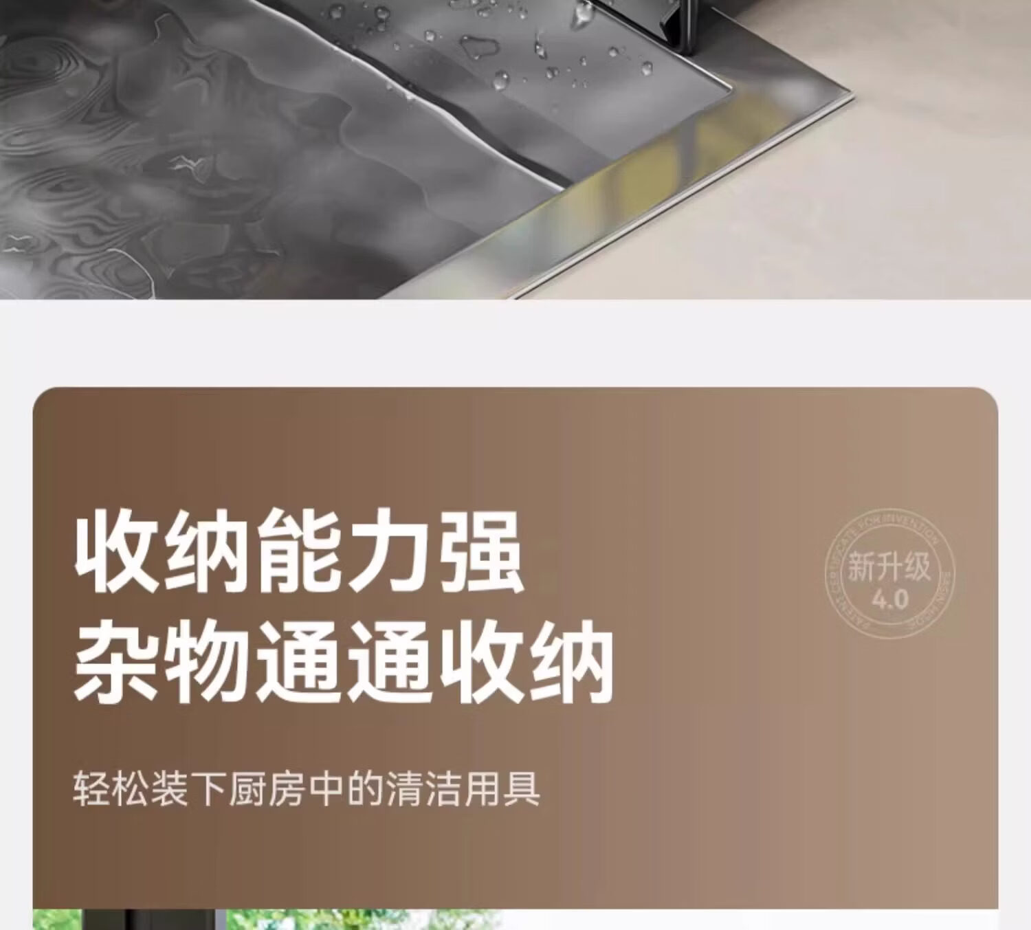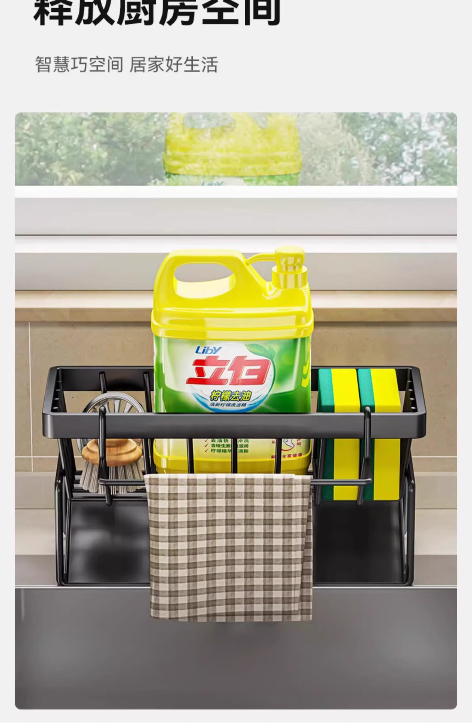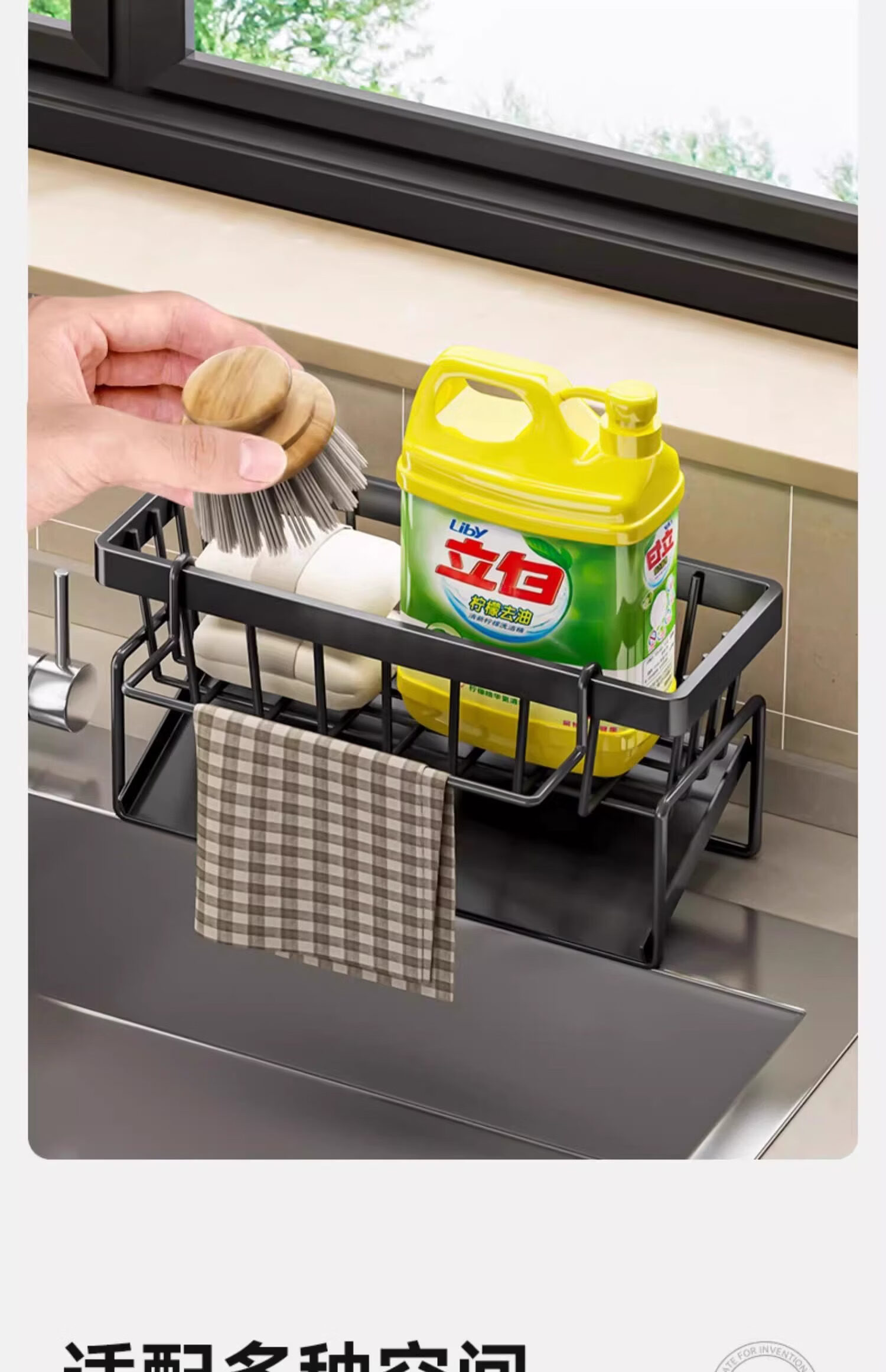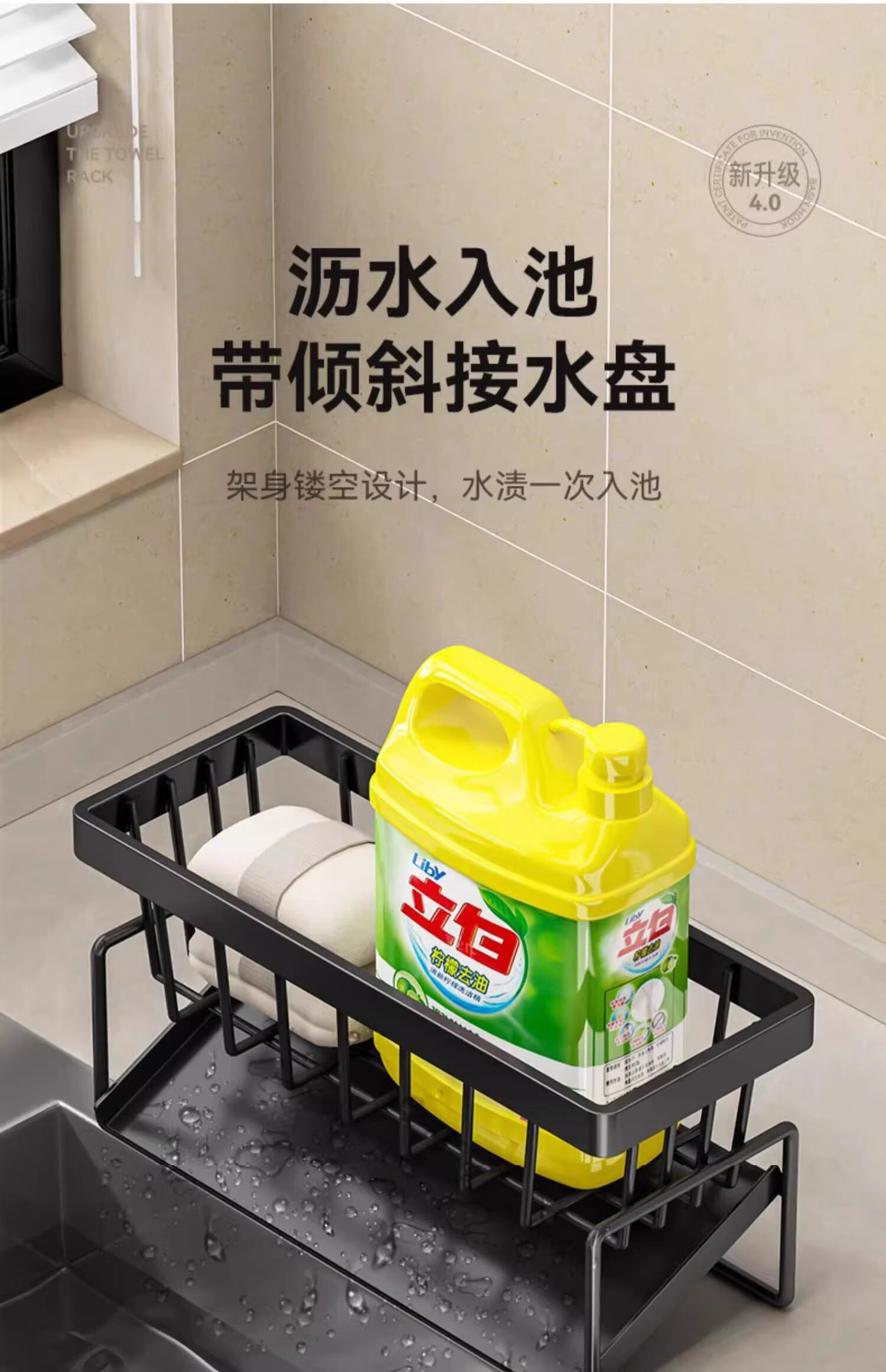 吱凡日本厨房沥水架水槽边置物架抹布架水龙头洗碗水槽用品收纳架神器 【304不锈钢】电镀款岩石灰+抹布杆