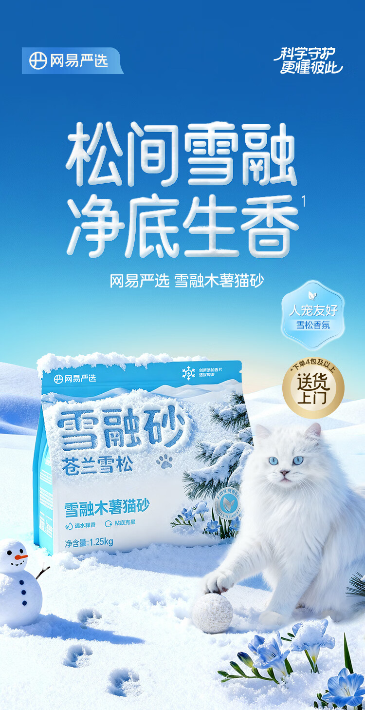 网易严选雪融木薯猫砂人宠友好除臭香氛不粘底除味无尘植物猫砂快速结团 雪融木薯原矿砂 2.5kg*4袋