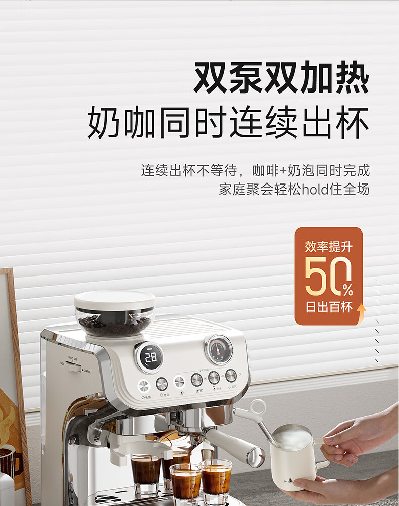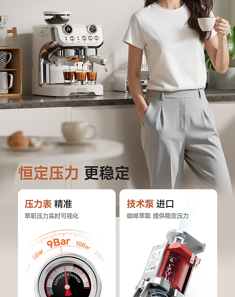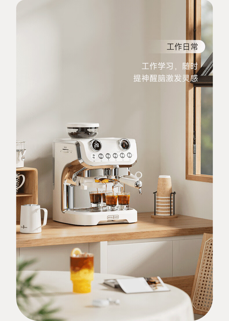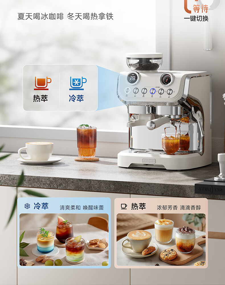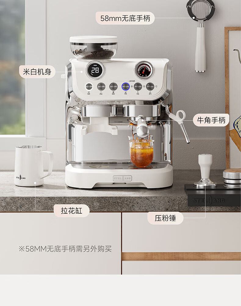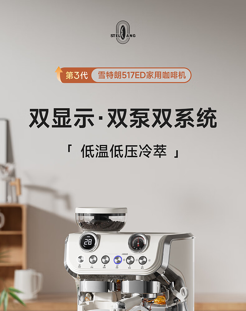 雪特朗【国家补贴】517ED双锅炉系统半自动咖啡机家用研磨一体机意式美式咖啡机冷热双萃