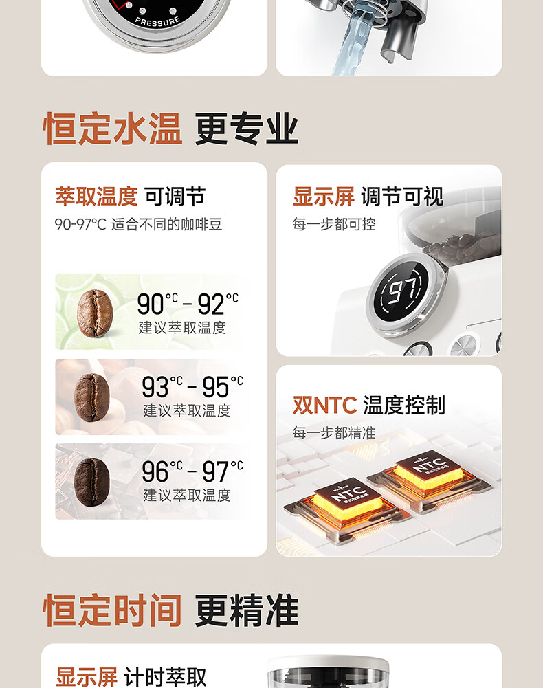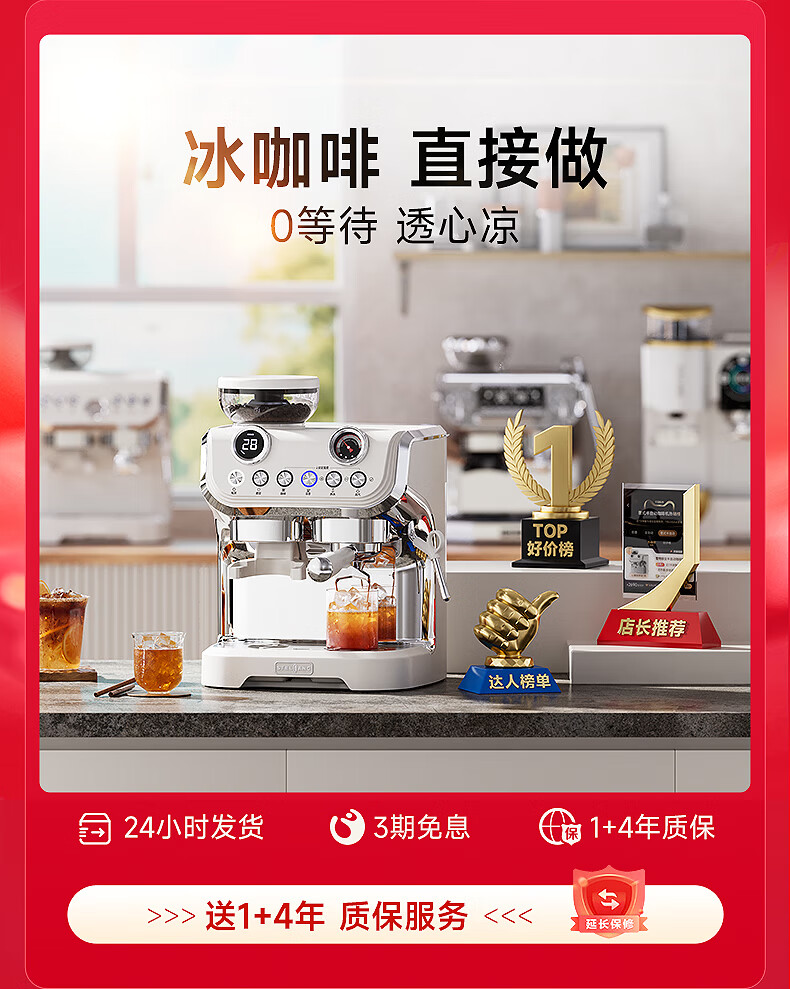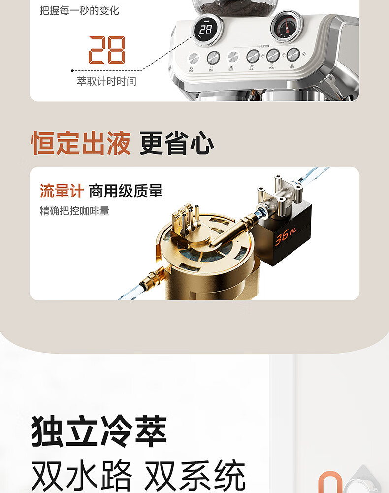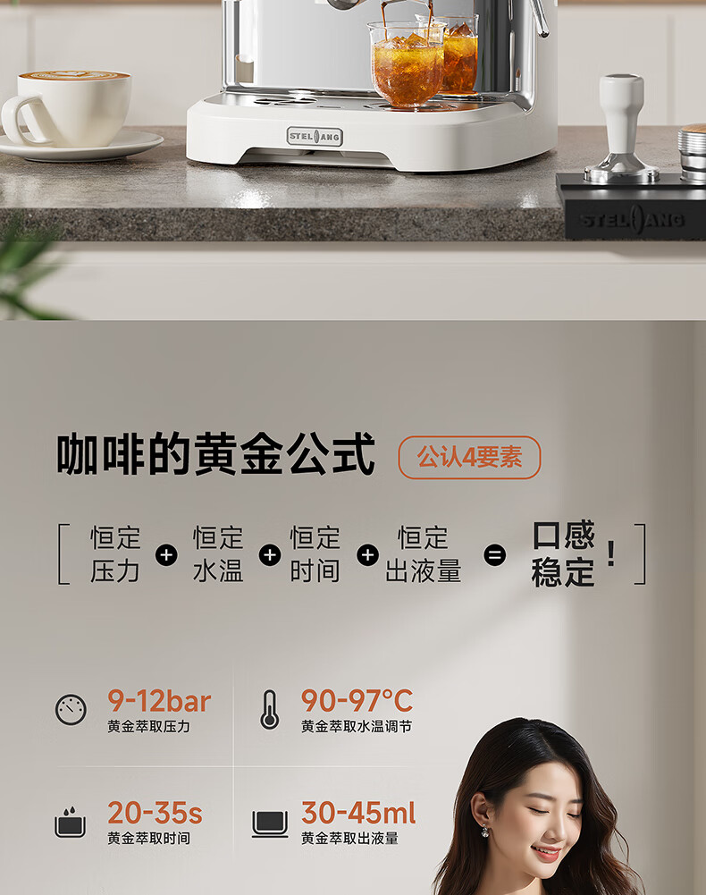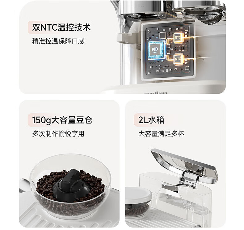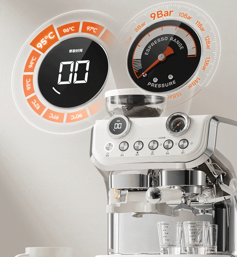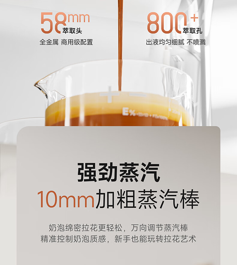雪特朗【国家补贴】517ED双锅炉系统半自动咖啡机家用研磨一体机意式美式咖啡机冷热双萃
