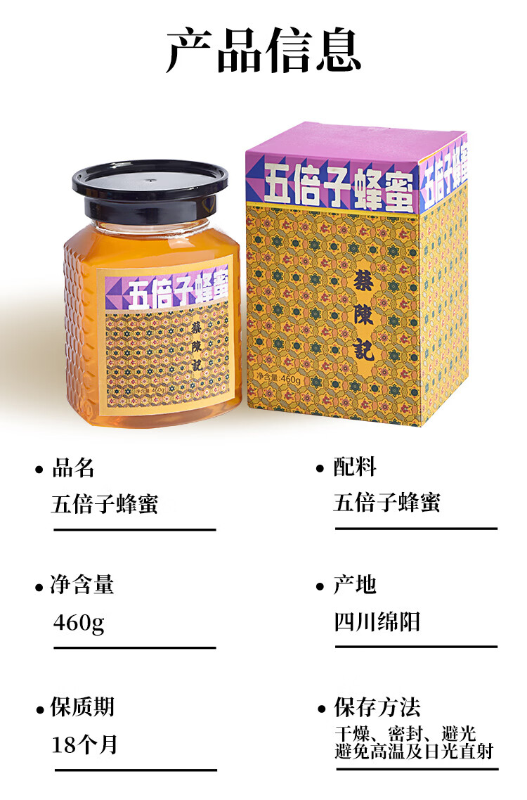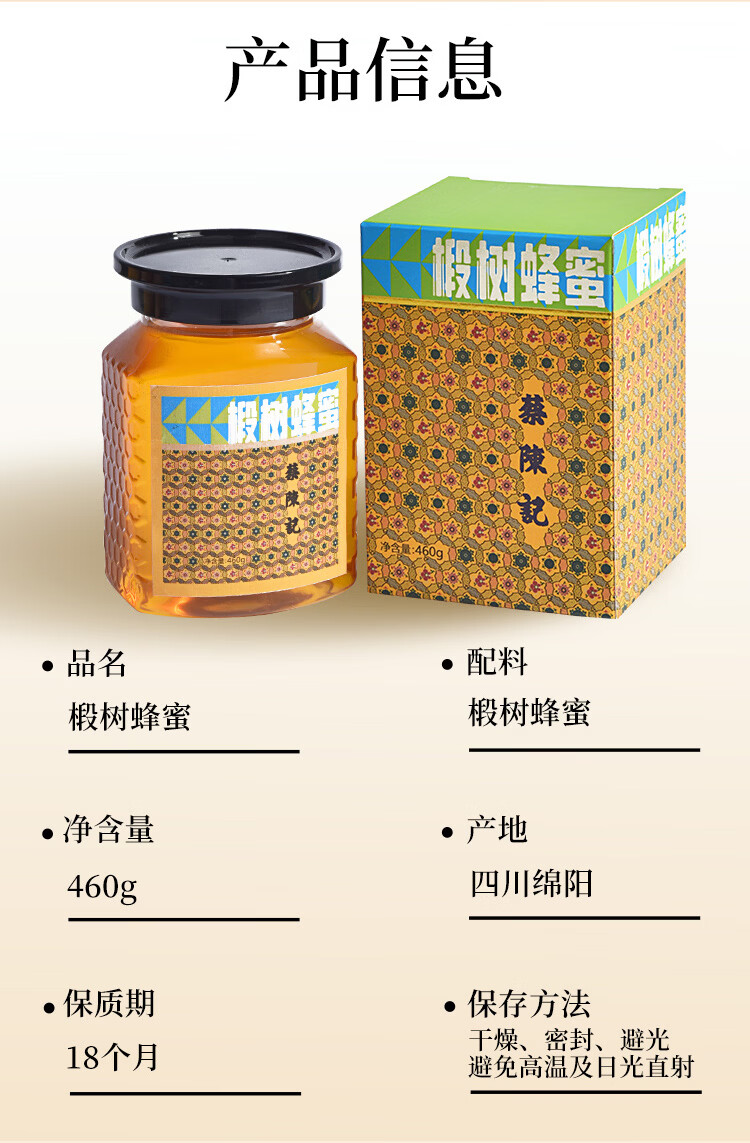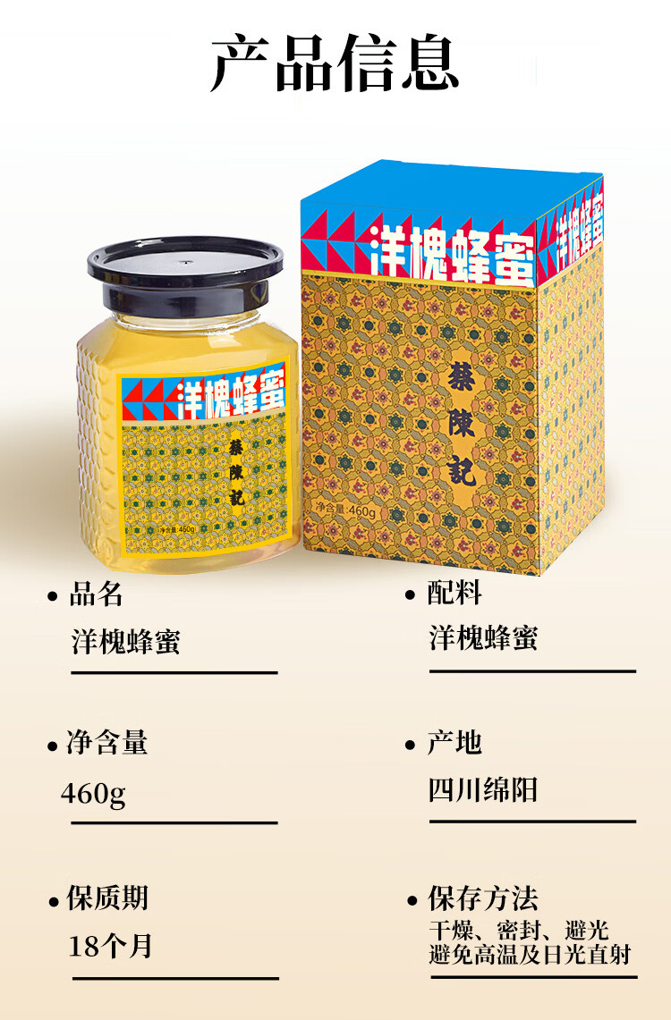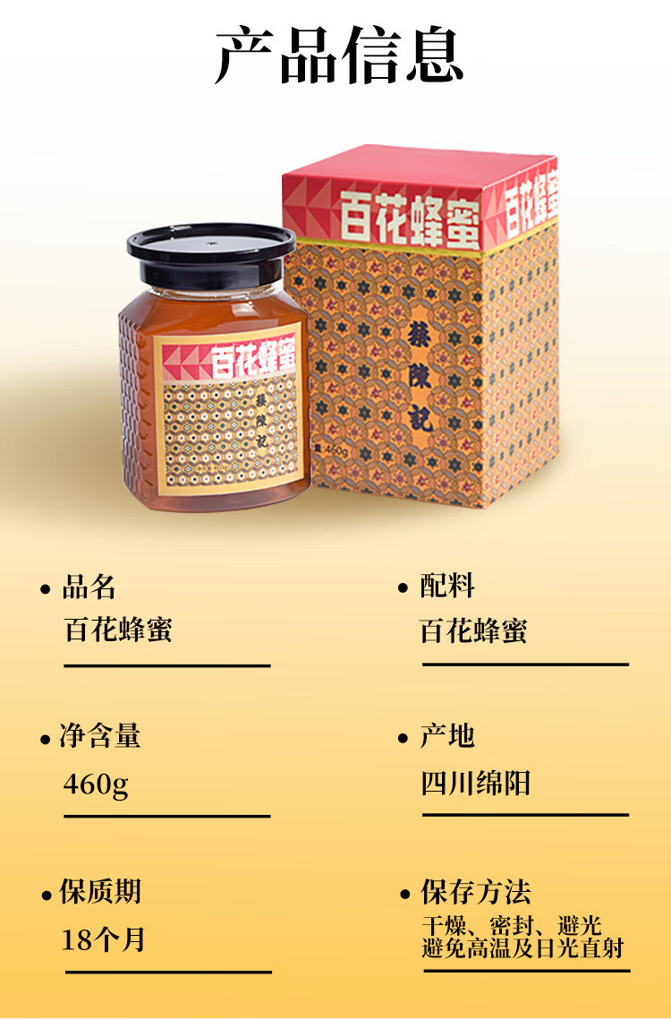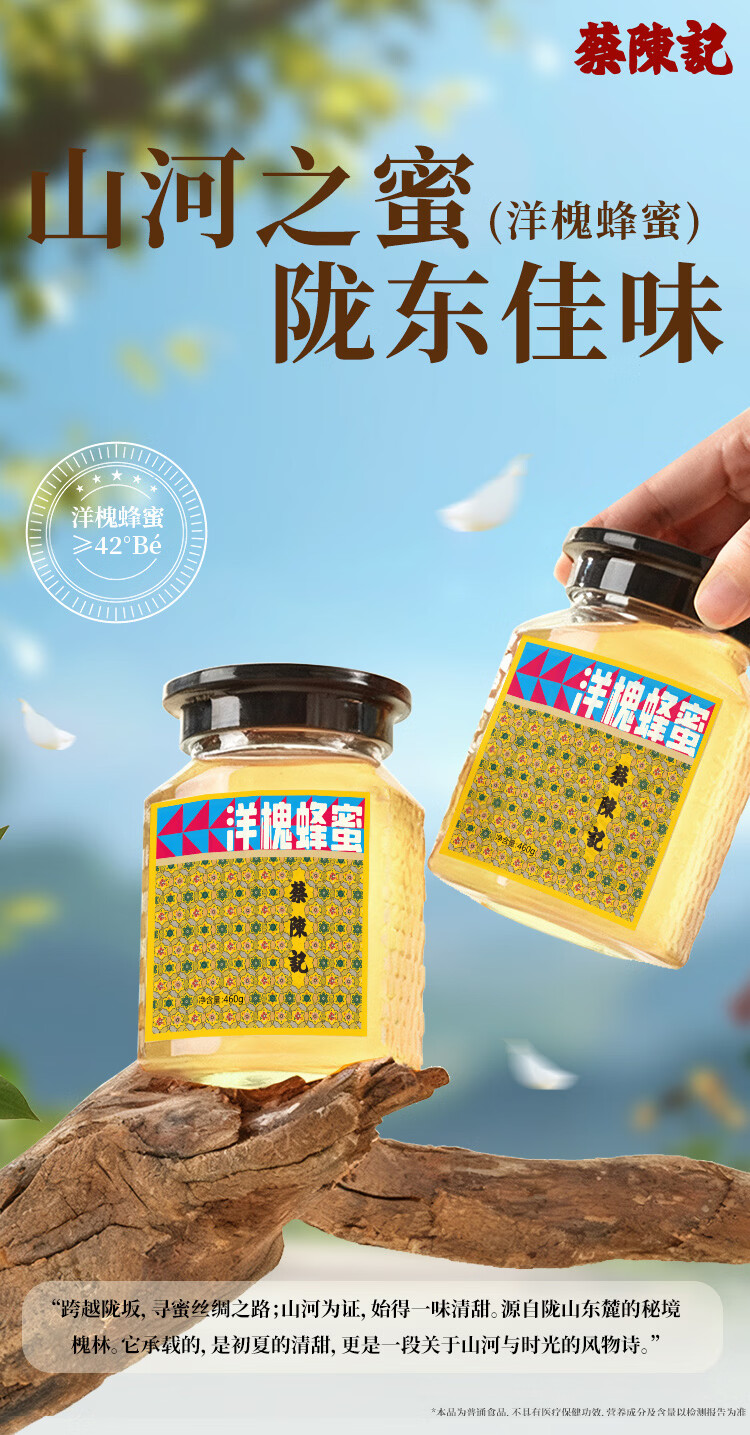 蔡陈记红参蜜自然成熟蜜中华平武蜂蜜保护区熬夜西梅通便柠檬便携拒喂糖 洋槐蜜 460g*1瓶