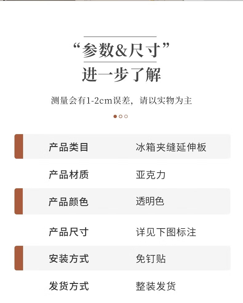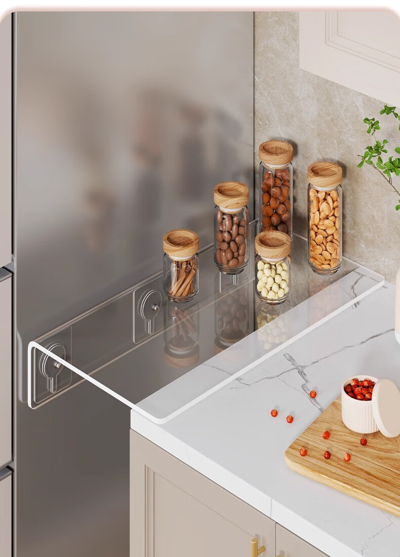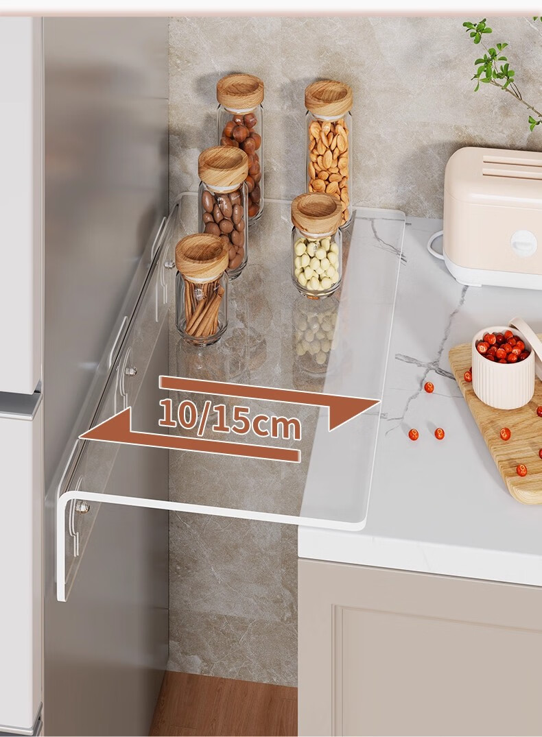 尔思家厨房夹缝延长板亚克力冰箱收纳台缝隙调料放置架家用多功能储物架 透明色15x60