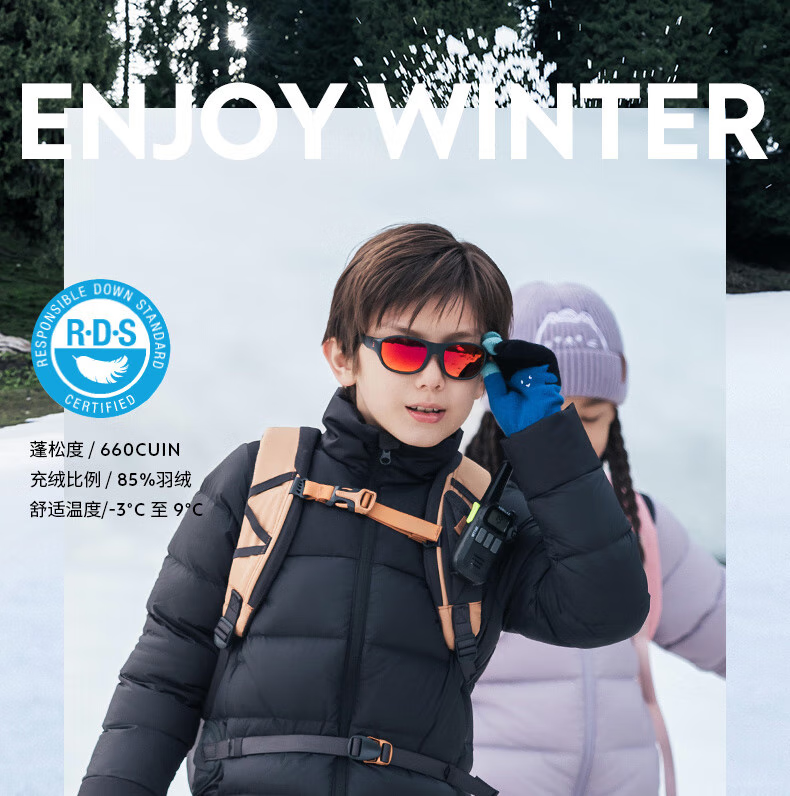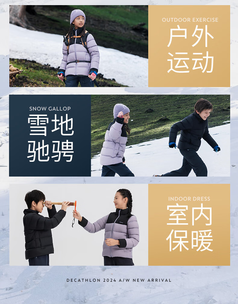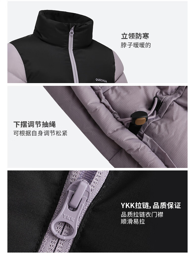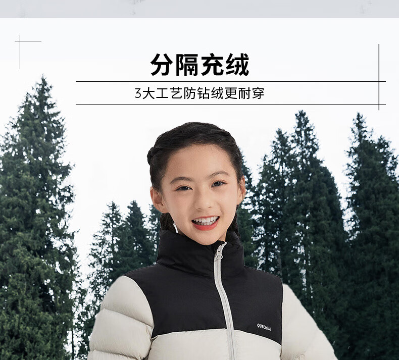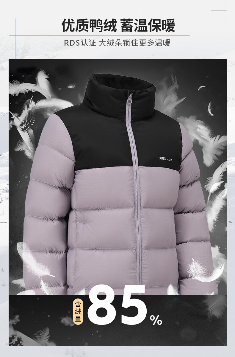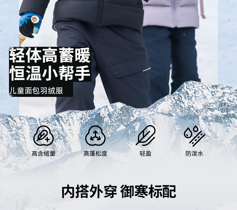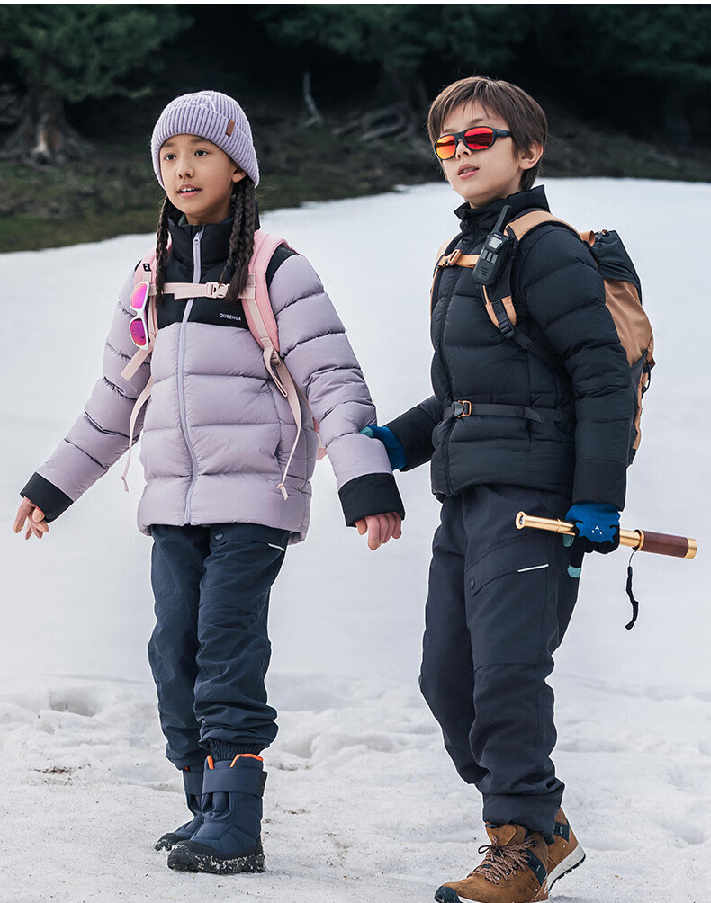迪卡侬儿童新款面包服羽绒服男女秋冬保暖户外防风外套日常休闲MH500 石墨黑 M 161-172c14-15岁