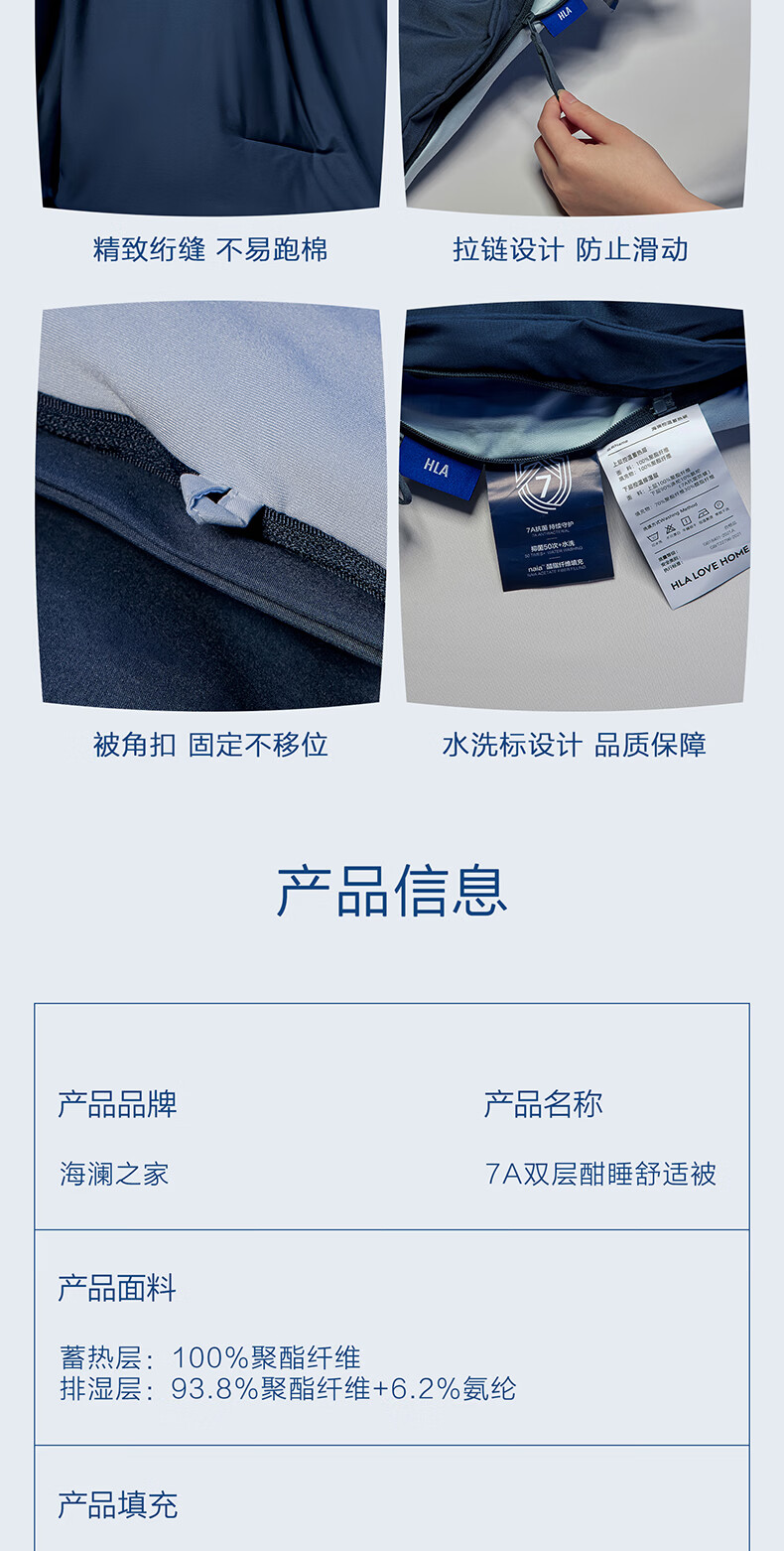 海澜之家(HLA)被子棉被7A抗菌防螨双层控温子母被冬被芯家用卧室高端礼盒包装 7A抗菌防螨双层控温被 150*200cm约5.5斤 【上层1.55kg+下层1.2kg】