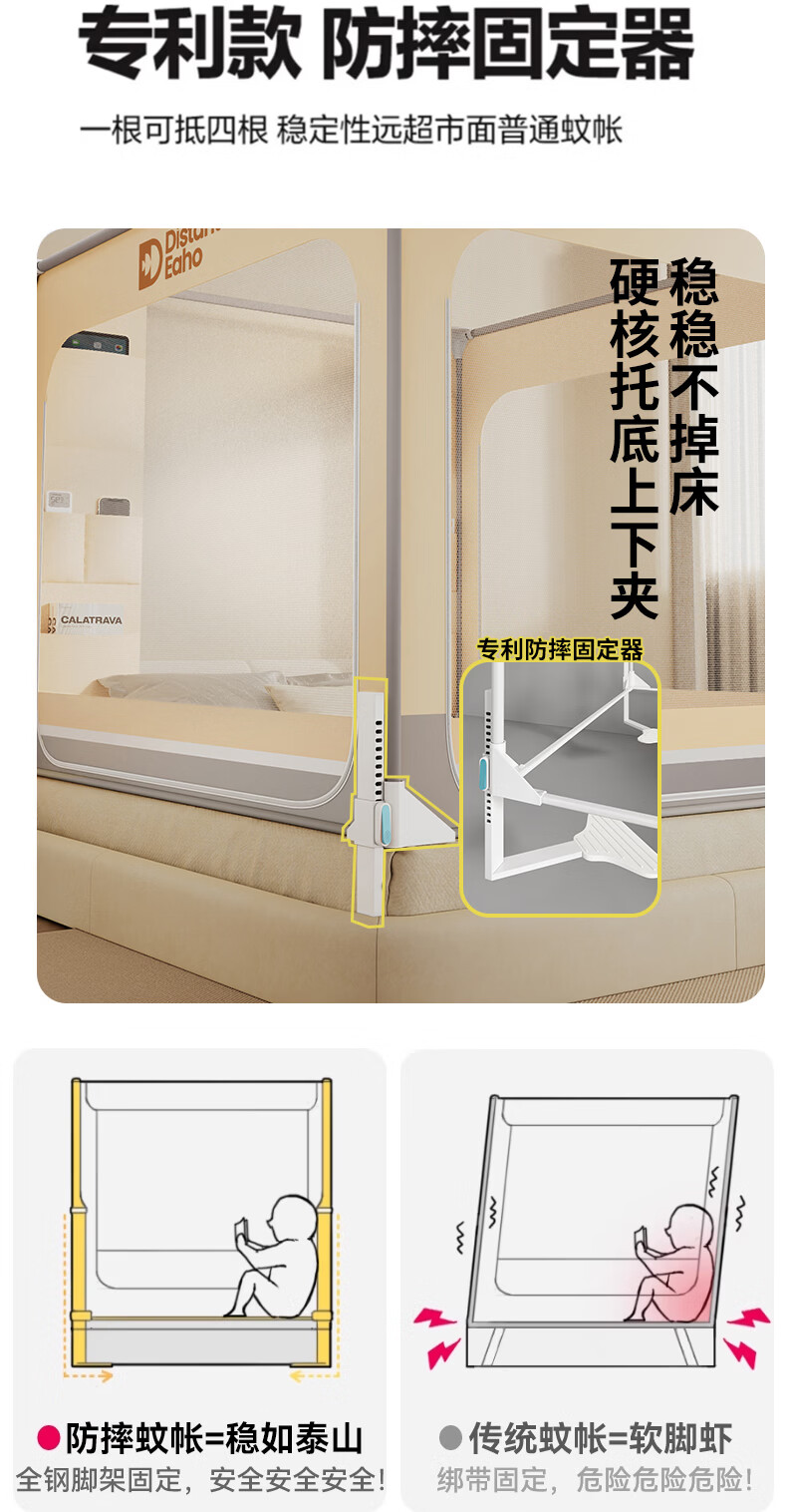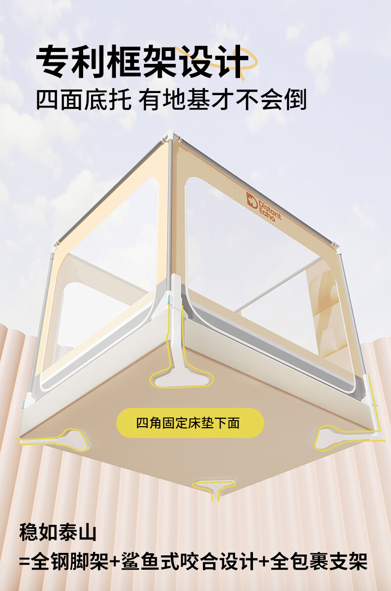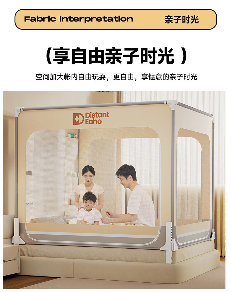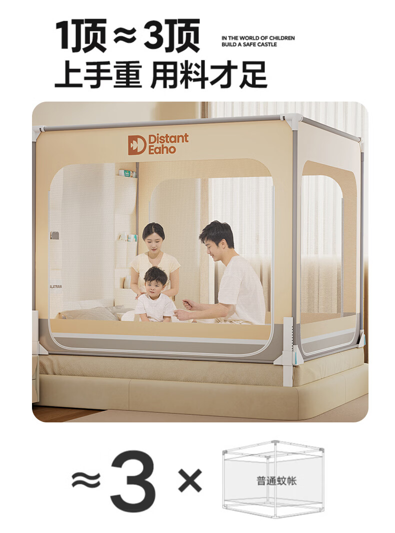 无印良品围栏式婴幼儿防摔蚊帐1.8x2米家用大床全包围一体式加密防蚊纹帐 夏末之城-可可米【A类防蚊帐纱 围栏级防摔】 180cm*200cm*170cm 【围栏支架】