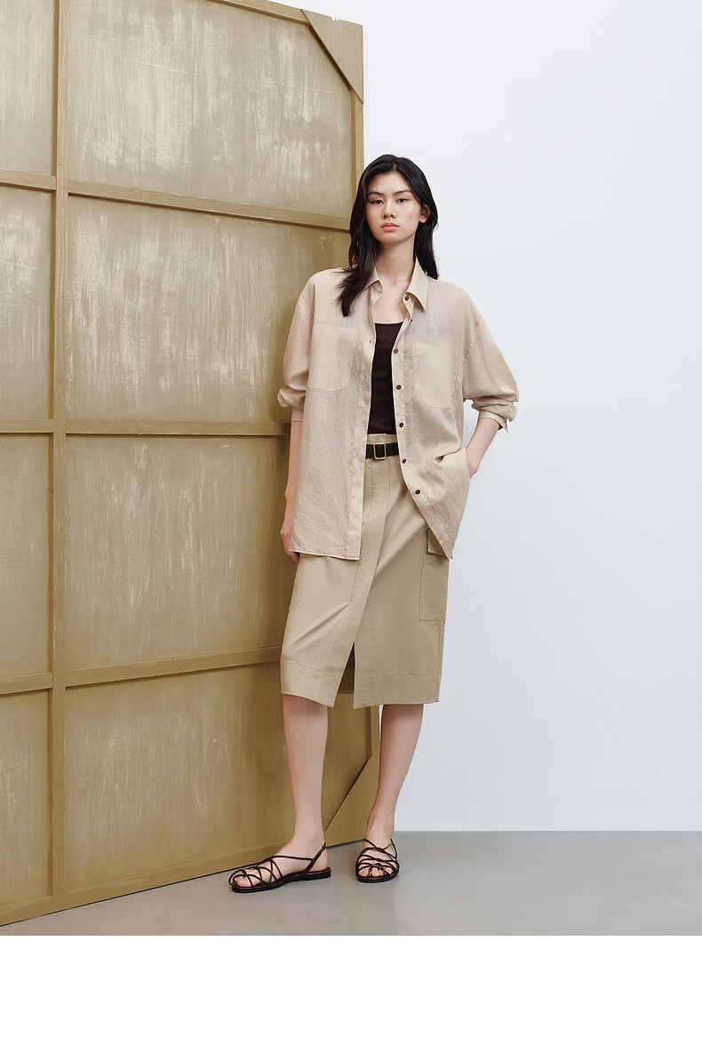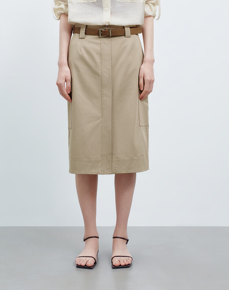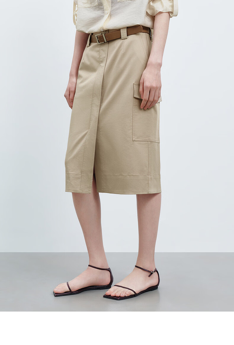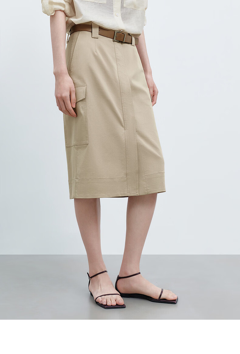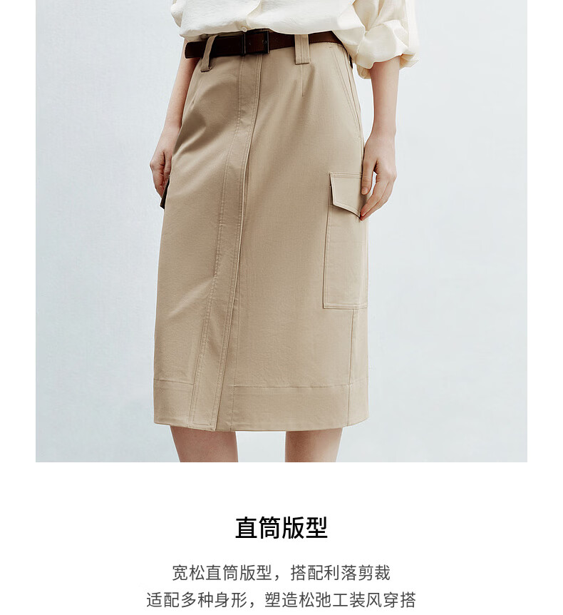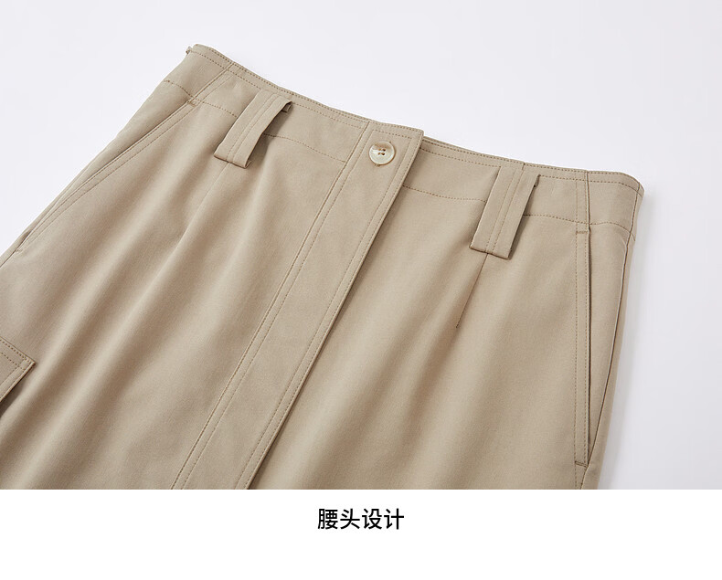 H's半身裙女26夏季新款高级设计感莱赛尔混纺中高腰宽松直筒腰裙 沙丘色 S