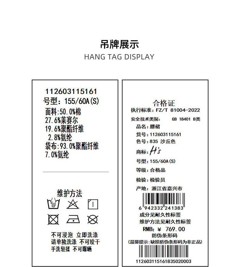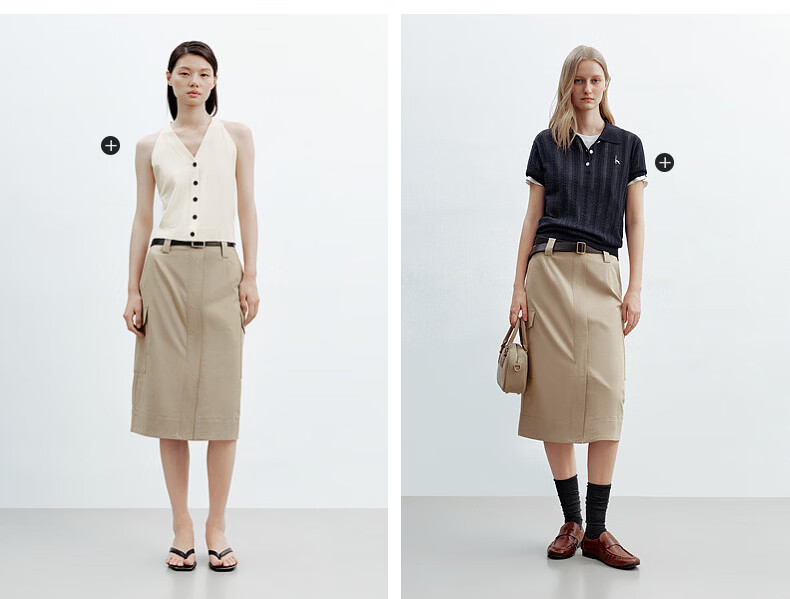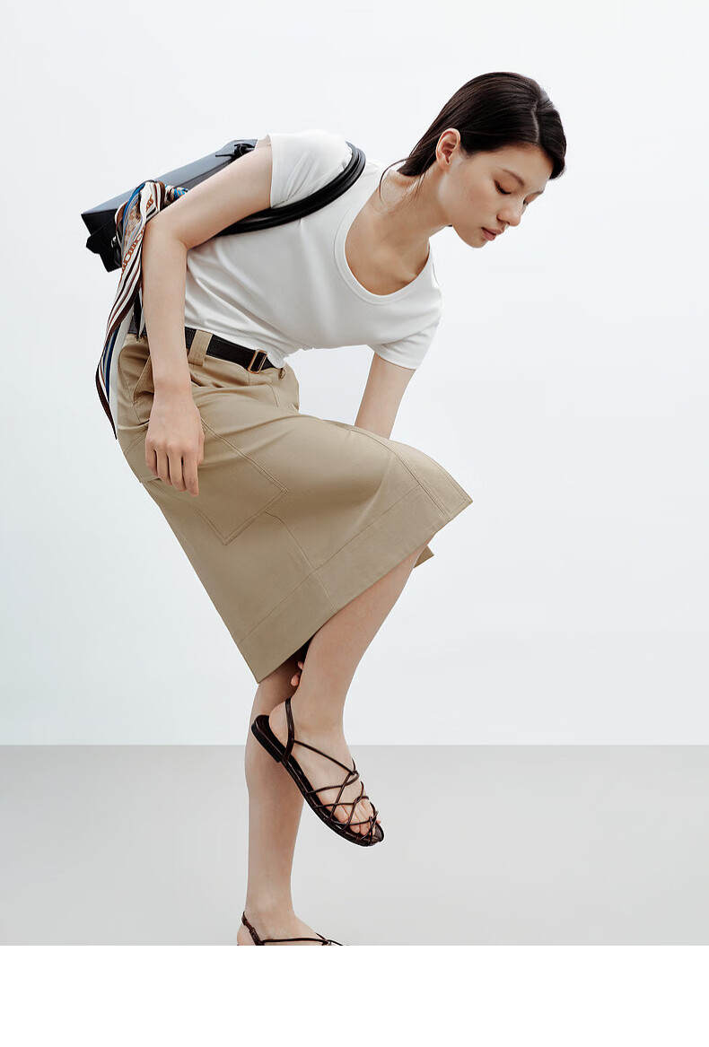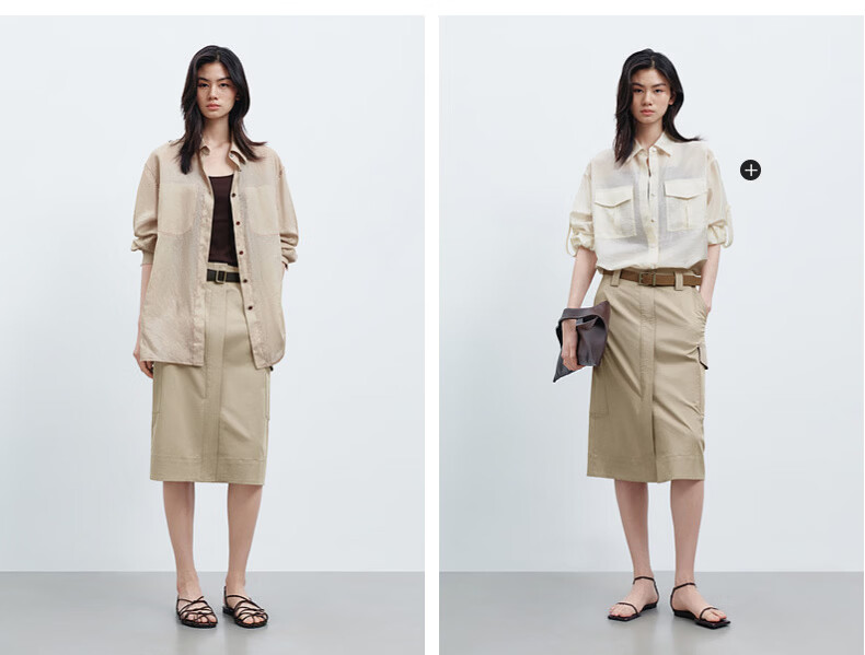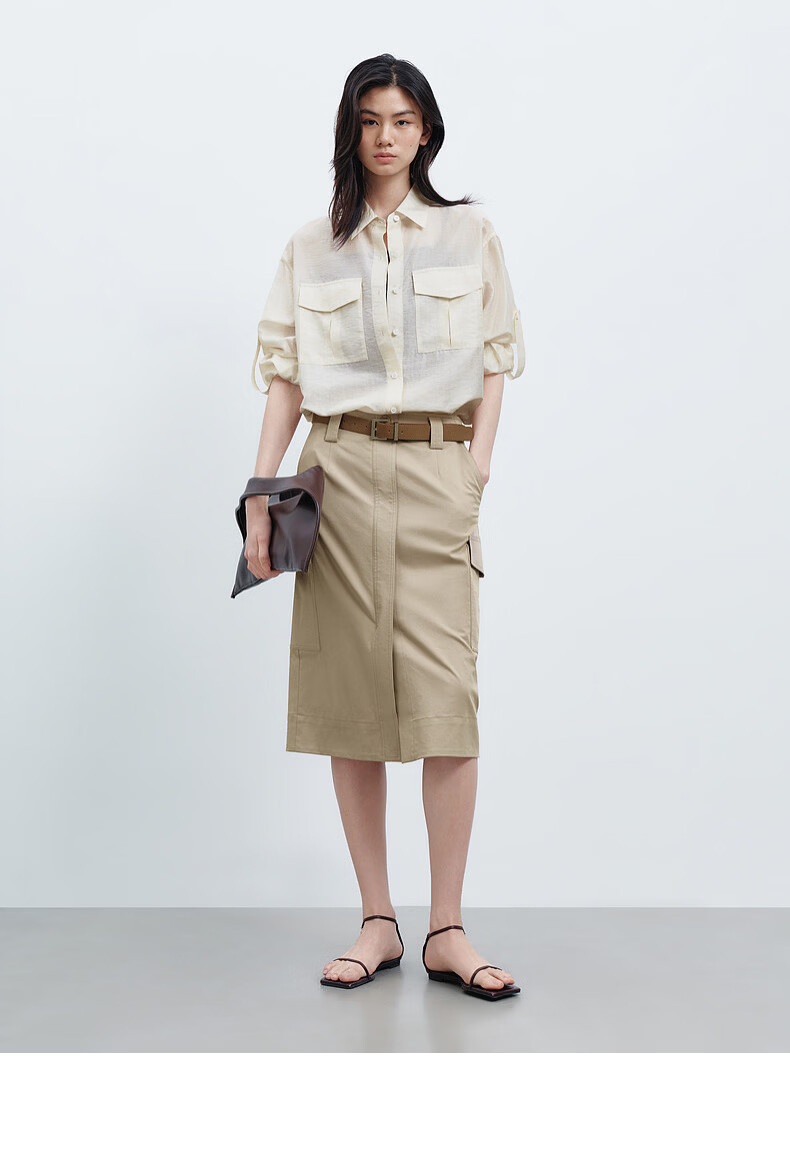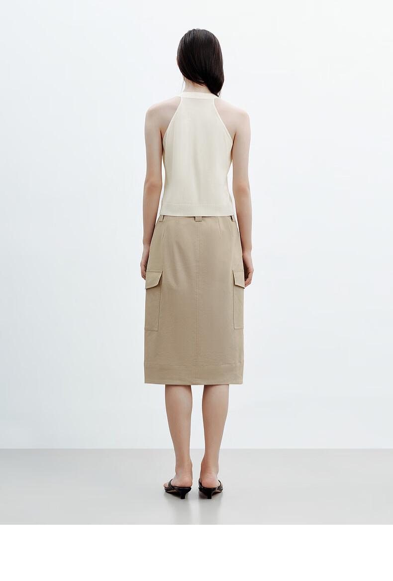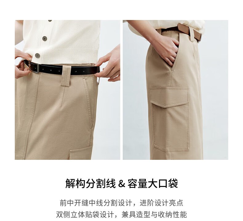 H's半身裙女26夏季新款高级设计感莱赛尔混纺中高腰宽松直筒腰裙 沙丘色 S