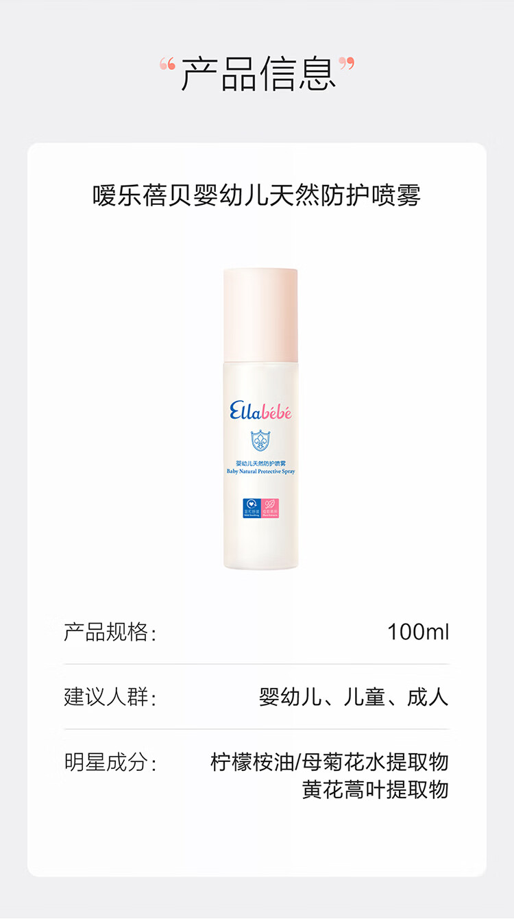 嗳乐蓓贝Ellabebe嗳乐蓓贝婴幼儿天然防护喷雾100ml夏日户外身体防护清爽 100ml
