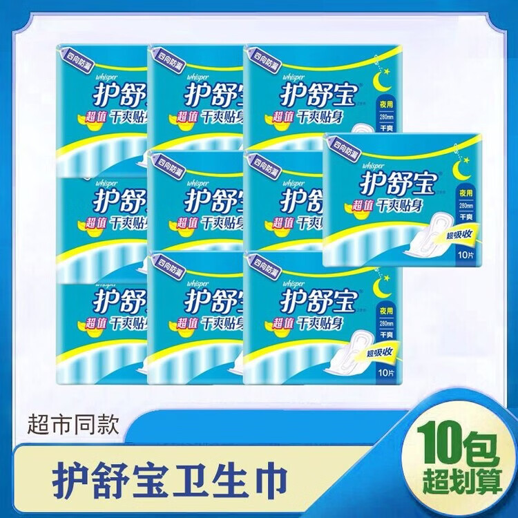 护舒宝[]卫生巾超值棉柔贴身干爽贴身夜用日用10片组合选 230/280MM 3包棉夜日+2包干夜日(100片) 1mm 1片