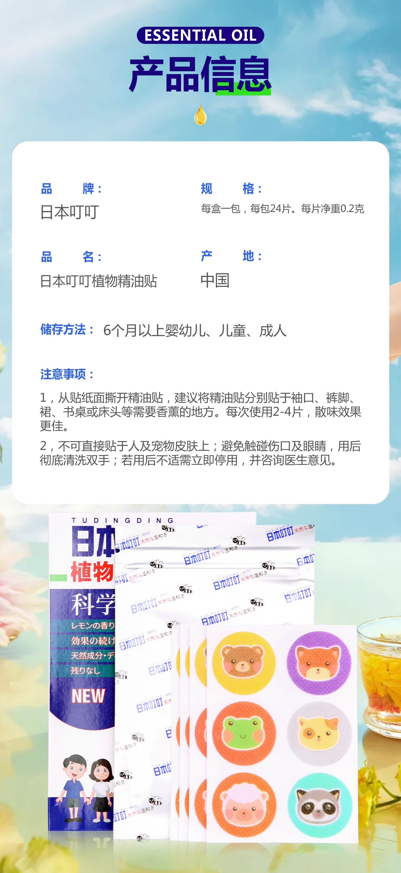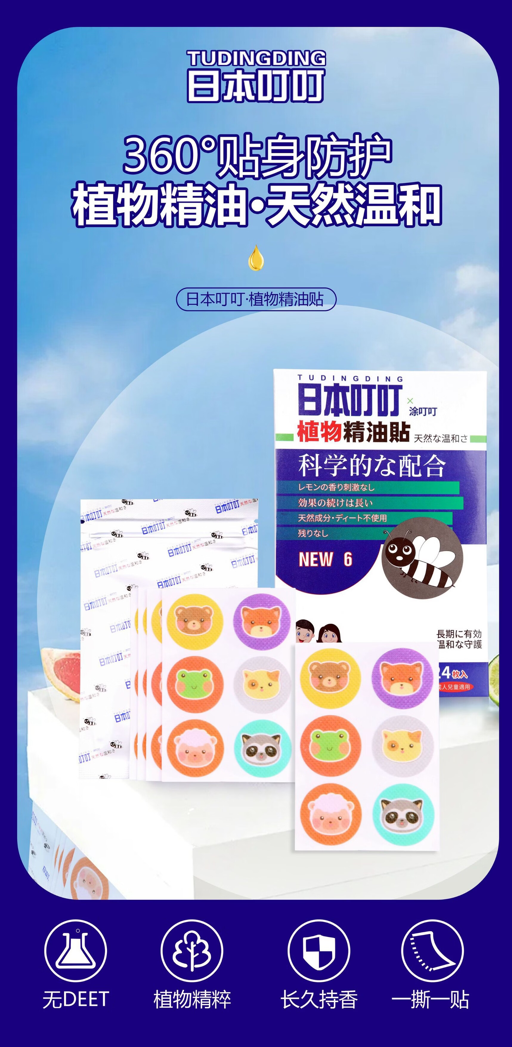 TUDINGDING日本叮叮驱蚊贴24枚一盒宝宝婴儿童成人学生植物精油长效防蚊贴 日本叮叮驱蚊贴【三盒共72贴】