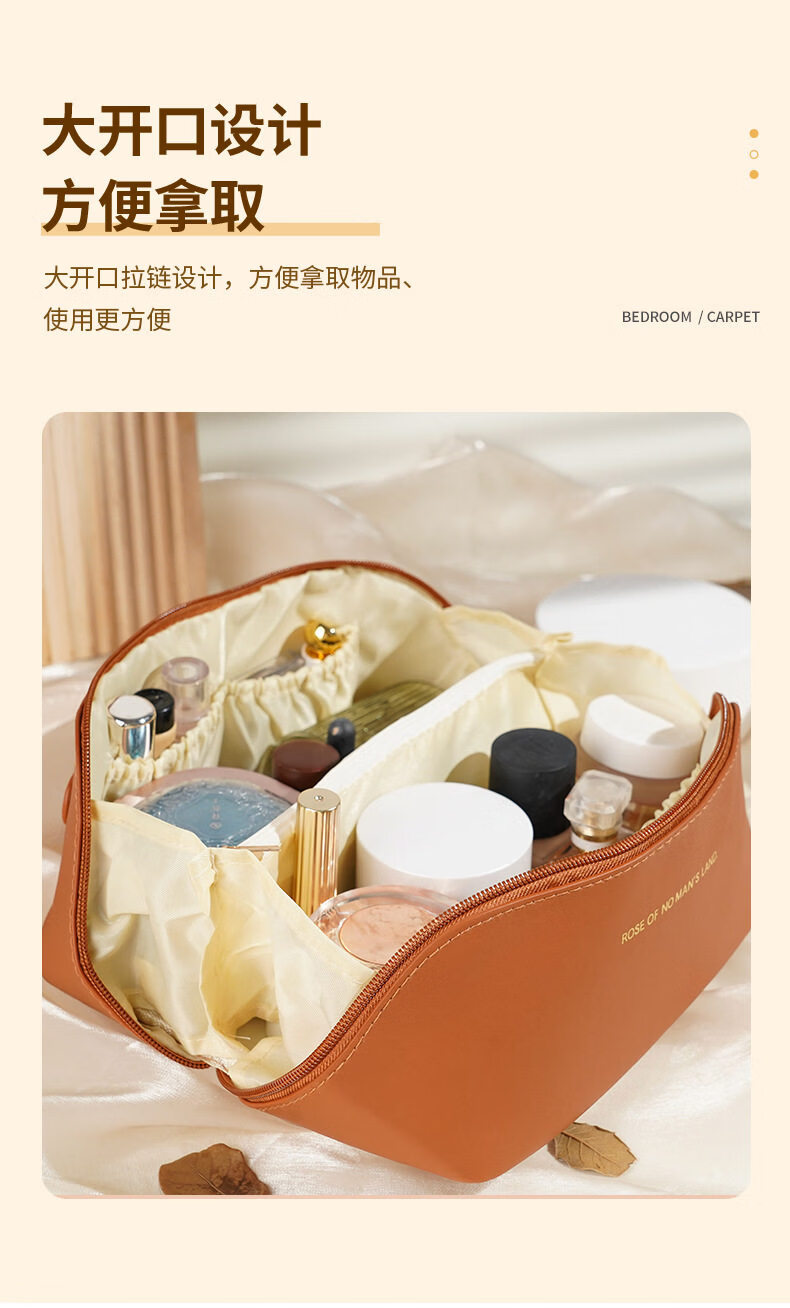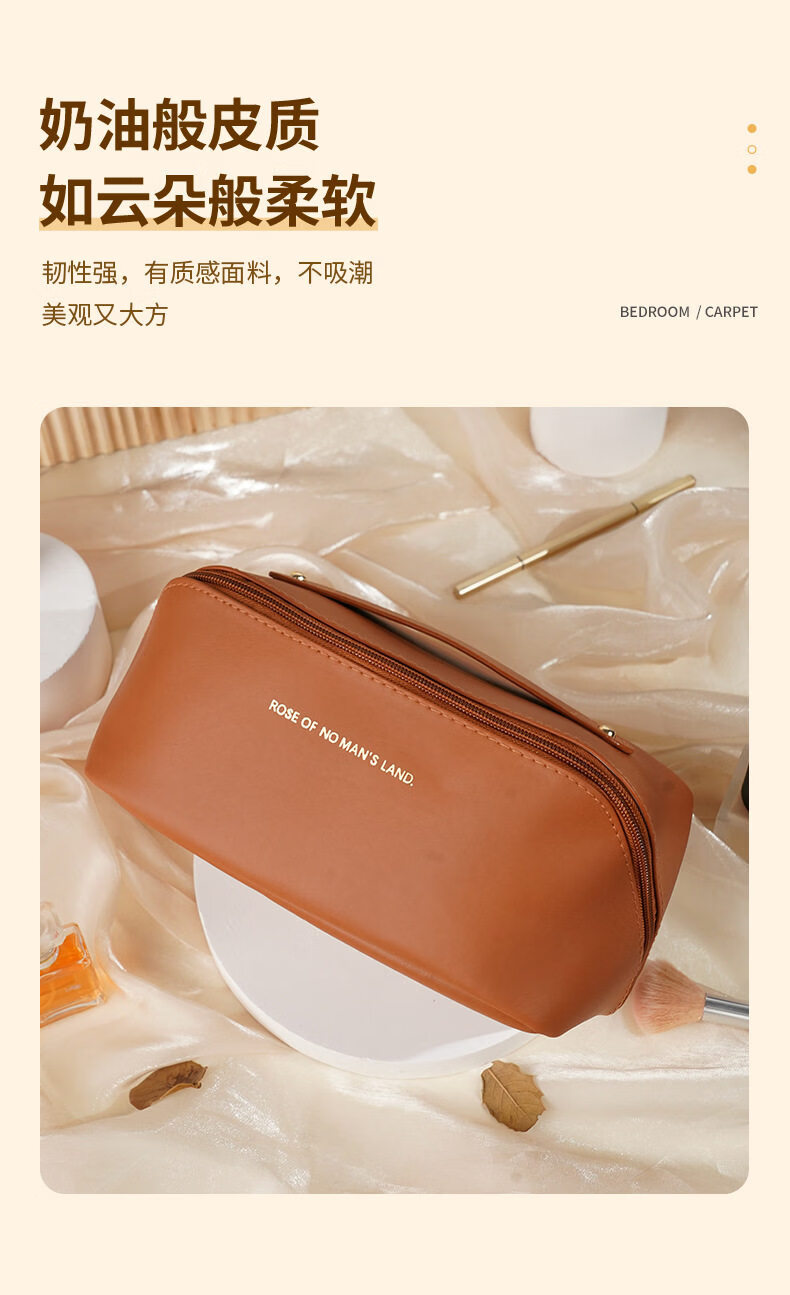 胖东来同款化妆包便携式女2026新款化妆品收纳包洗漱大 米白色大容量化妆洗漱包