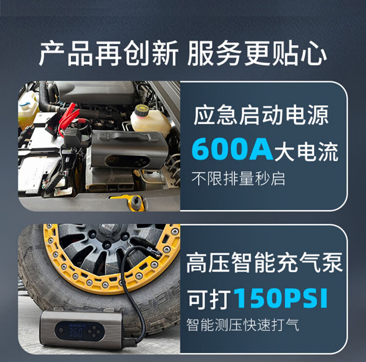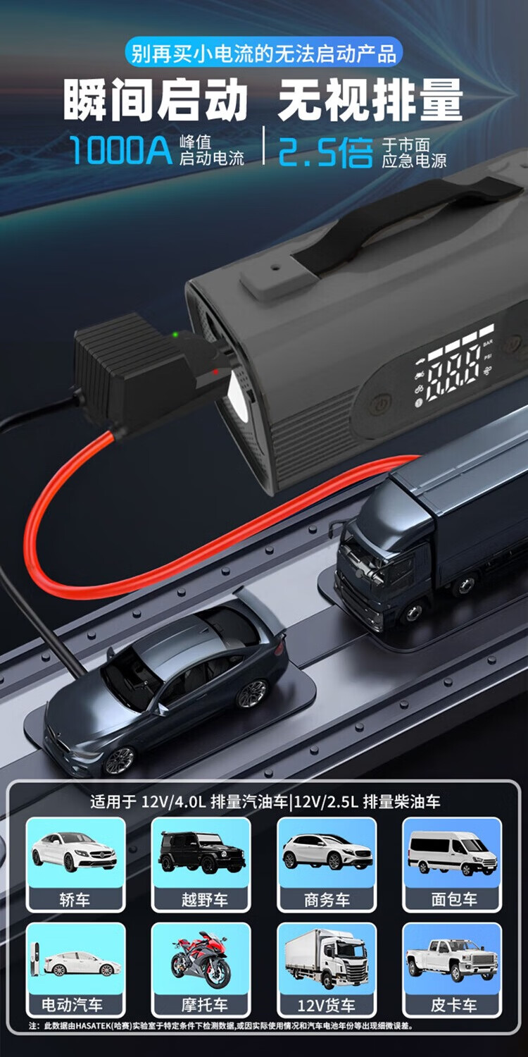 MOTOFEEL车载吸尘器便携式汽车应急启动电源车载打气机吸尘器一体机备用电瓶搭电宝打火充轮胎神器 多功能应急电源打气泵十二合一