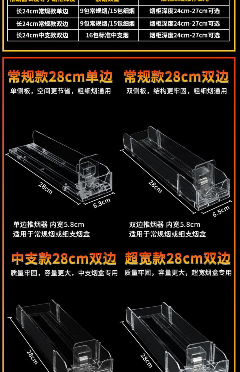 元良推烟器中支烟 自动弹出推拉单双边中支烟架推进器卷烟推送器 中支烟款24cm双边(10个)