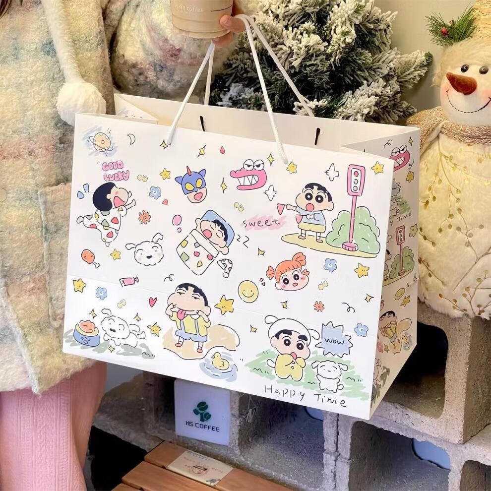 MPPMCK精致ins高颜值精美涂鸦蜡笔小新礼品袋手提袋硬卡纸大容量礼品袋 :大号 3个