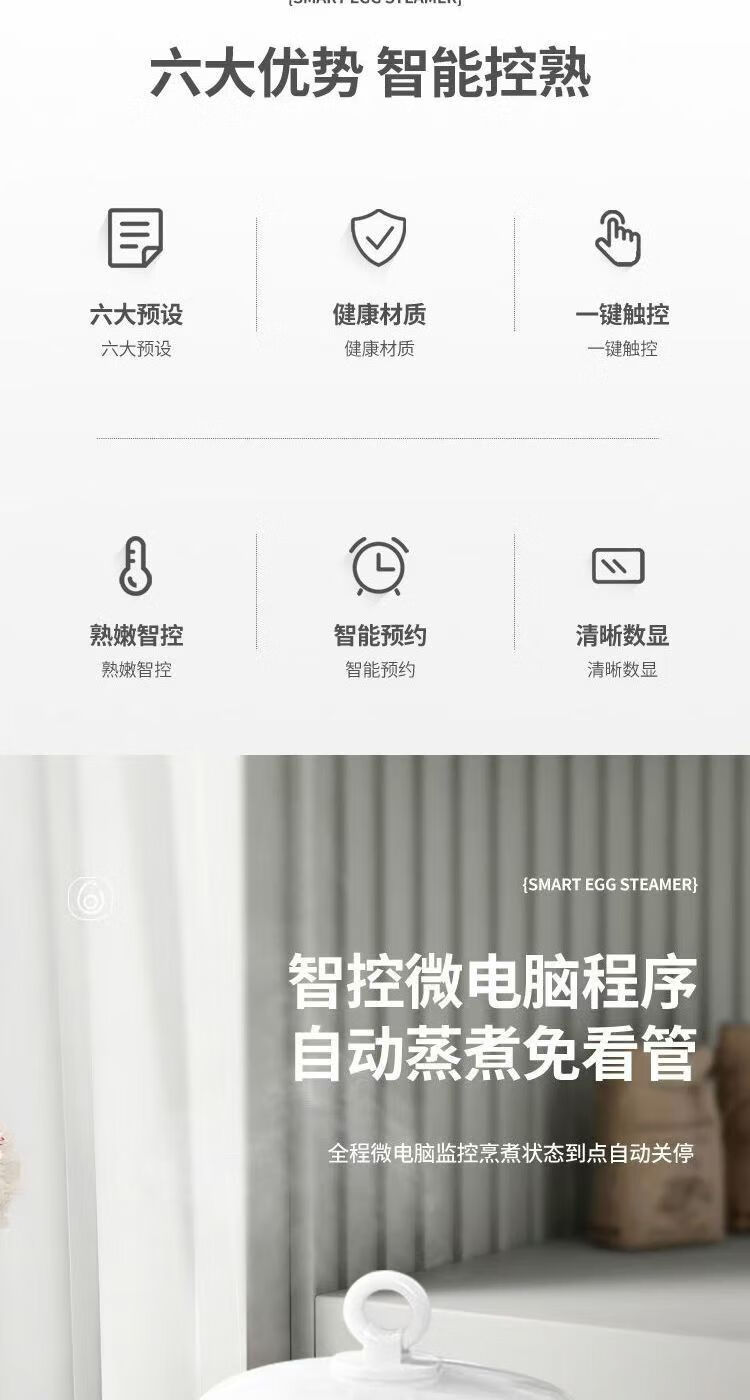 【甄选好物】智能预约煮蛋器多功能蒸蛋器自动断电家用小型蒸煮鸡蛋羹 三层