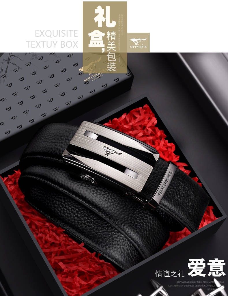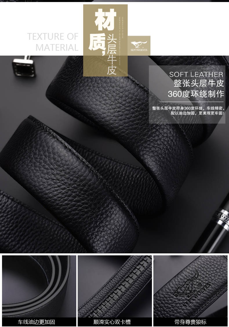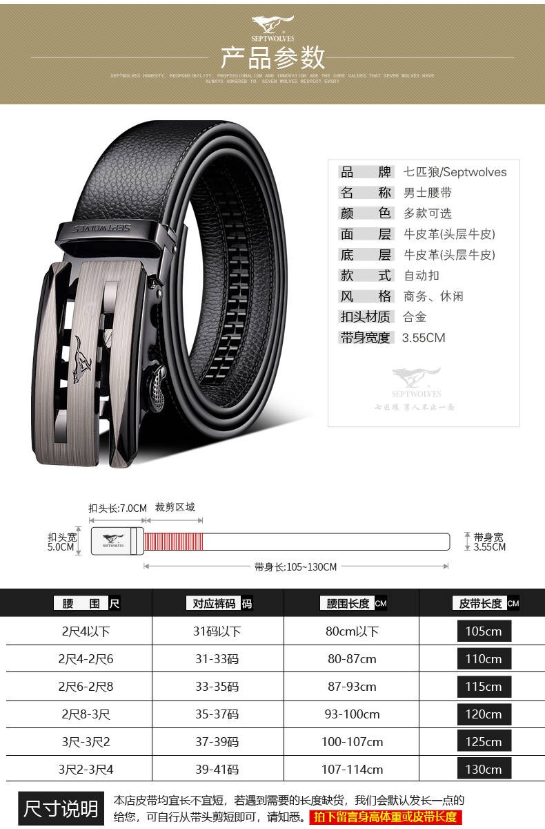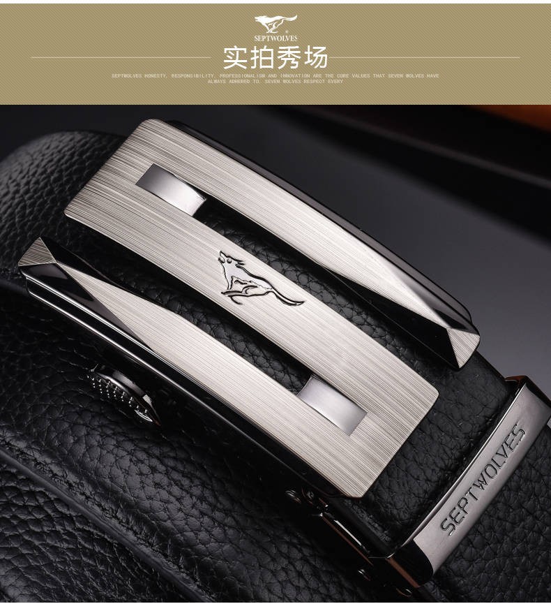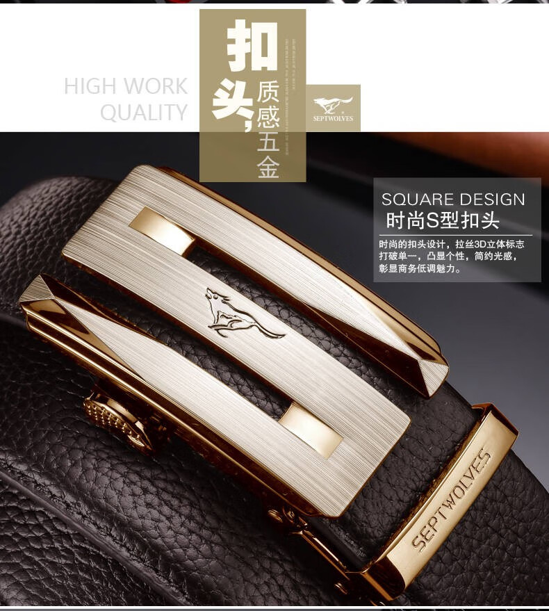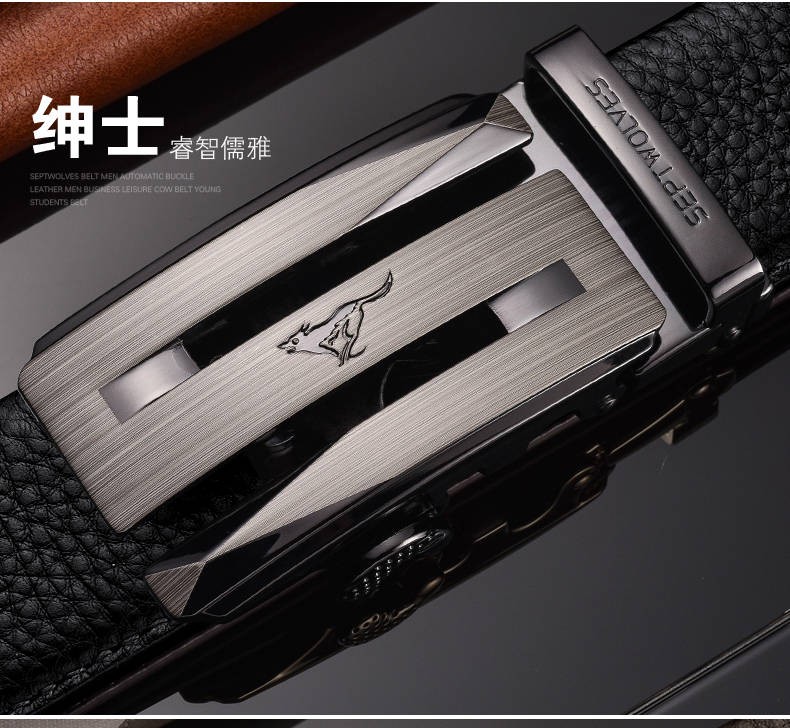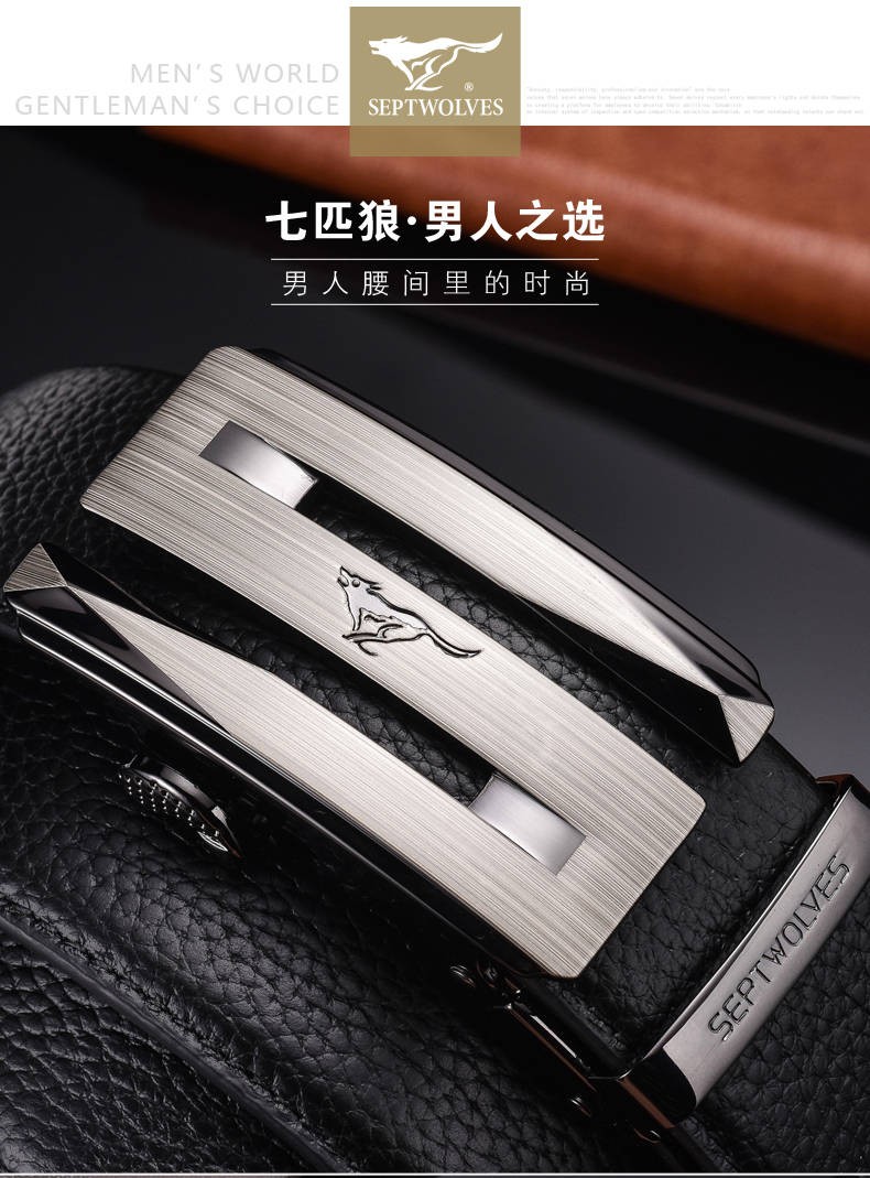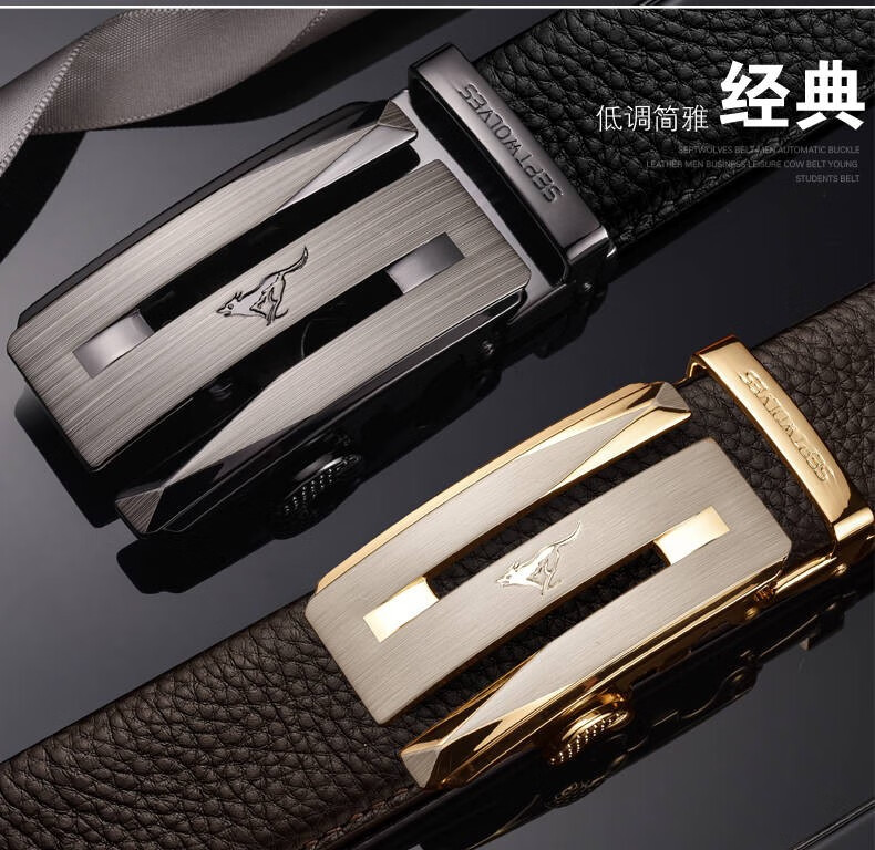 七匹狼七匹狼皮带男士自动扣2025新款腰带头层牛皮休闲真皮裤带男 简约咖色【头层牛皮 闪电发货】