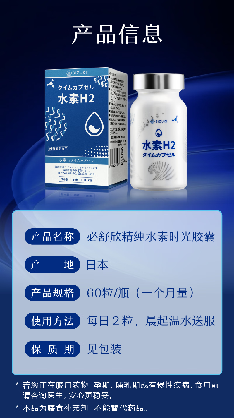 BIZUKI日本BIZUKI精纯水素 H2时光胶囊 60粒装 60粒*1瓶