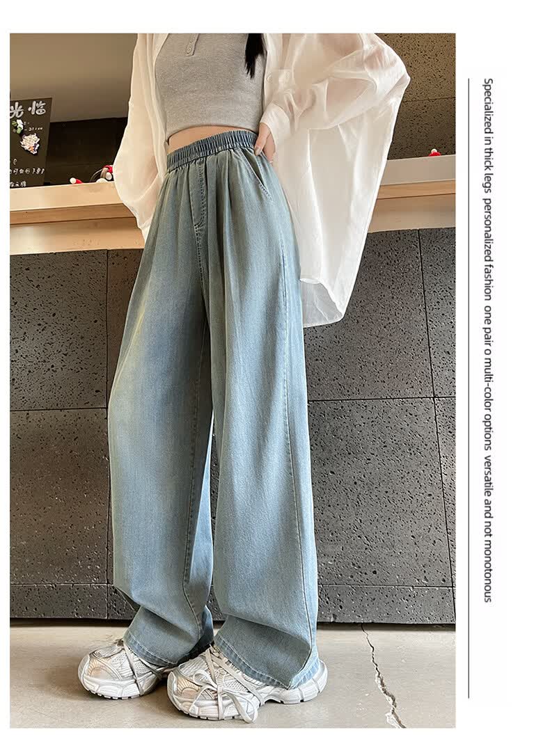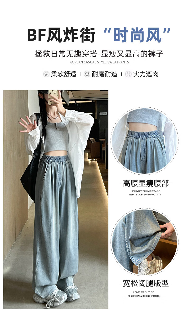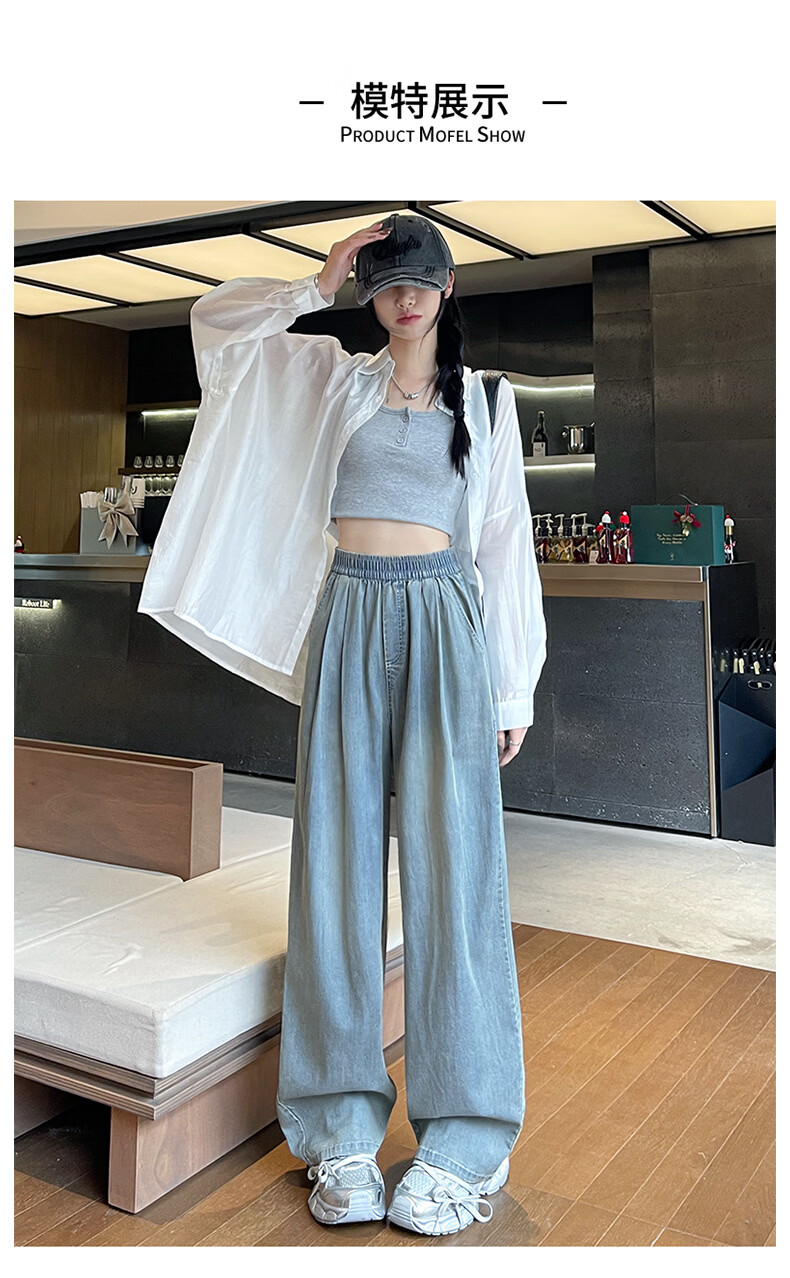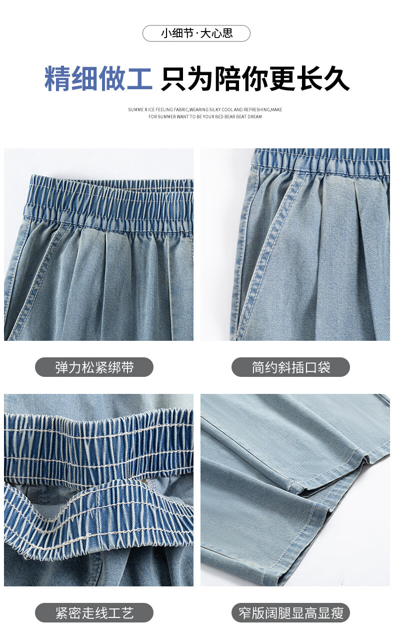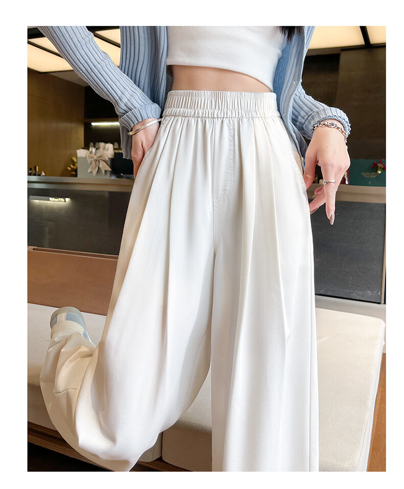 天丝牛仔裤女夏季薄款2026新款小个子垂感松紧腰宽松冰丝阔腿裤子 加绒-白色【小个子】 XL 【131-150斤】
