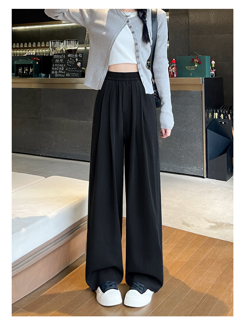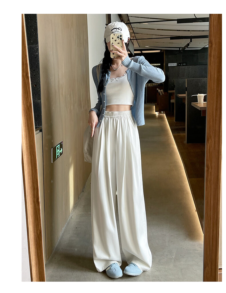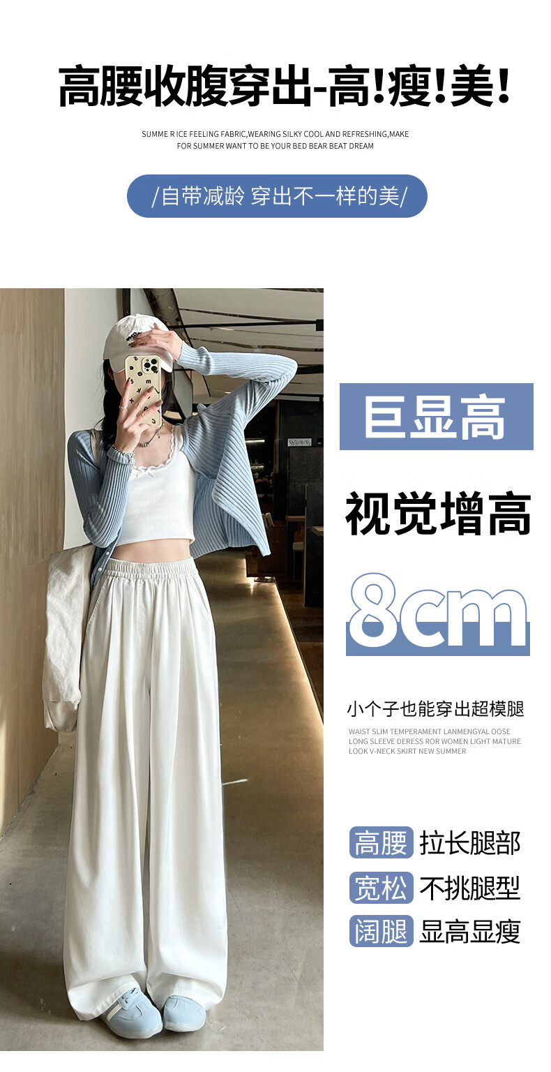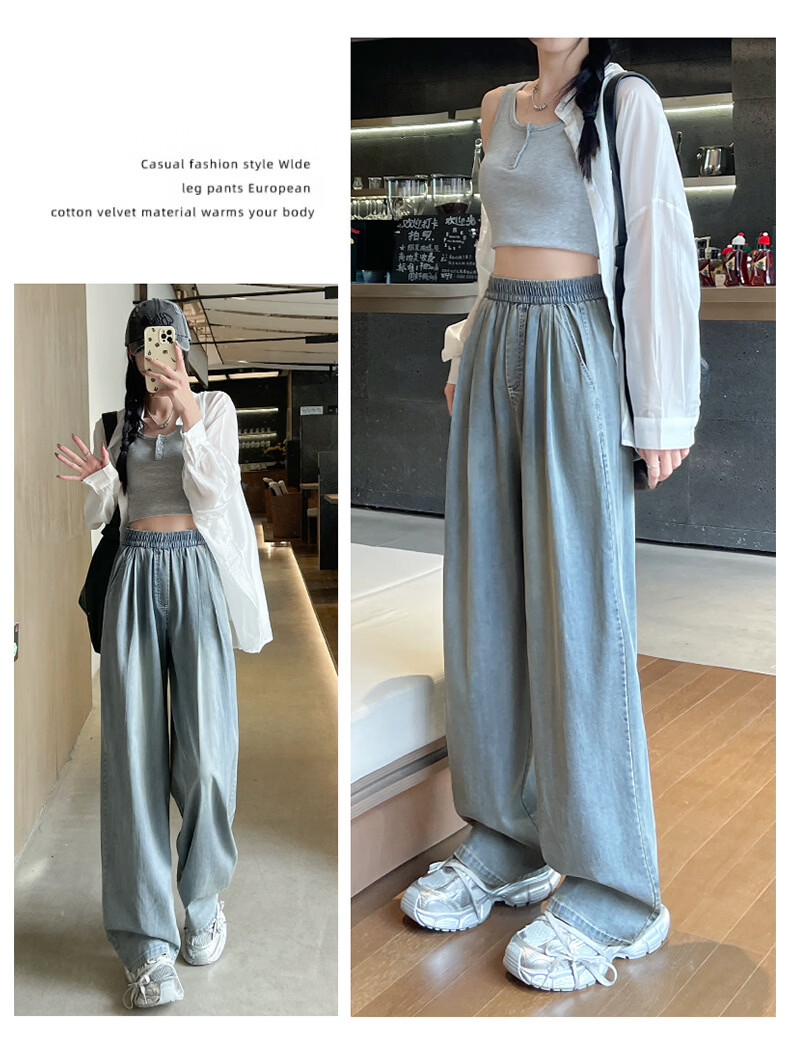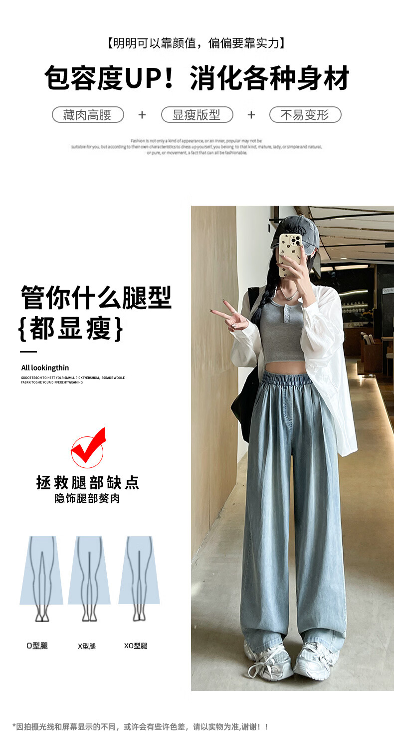 天丝牛仔裤女夏季薄款2026新款小个子垂感松紧腰宽松冰丝阔腿裤子 加绒-白色【小个子】 XL 【131-150斤】