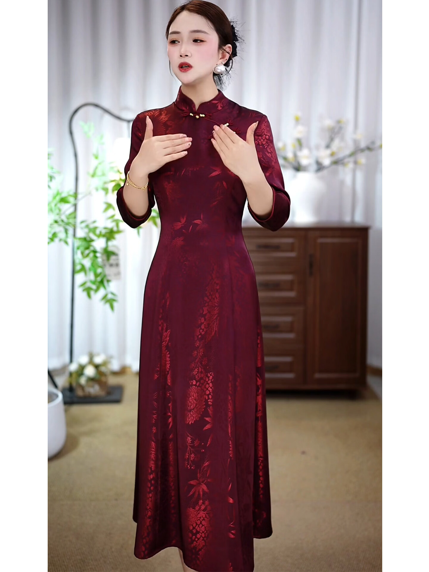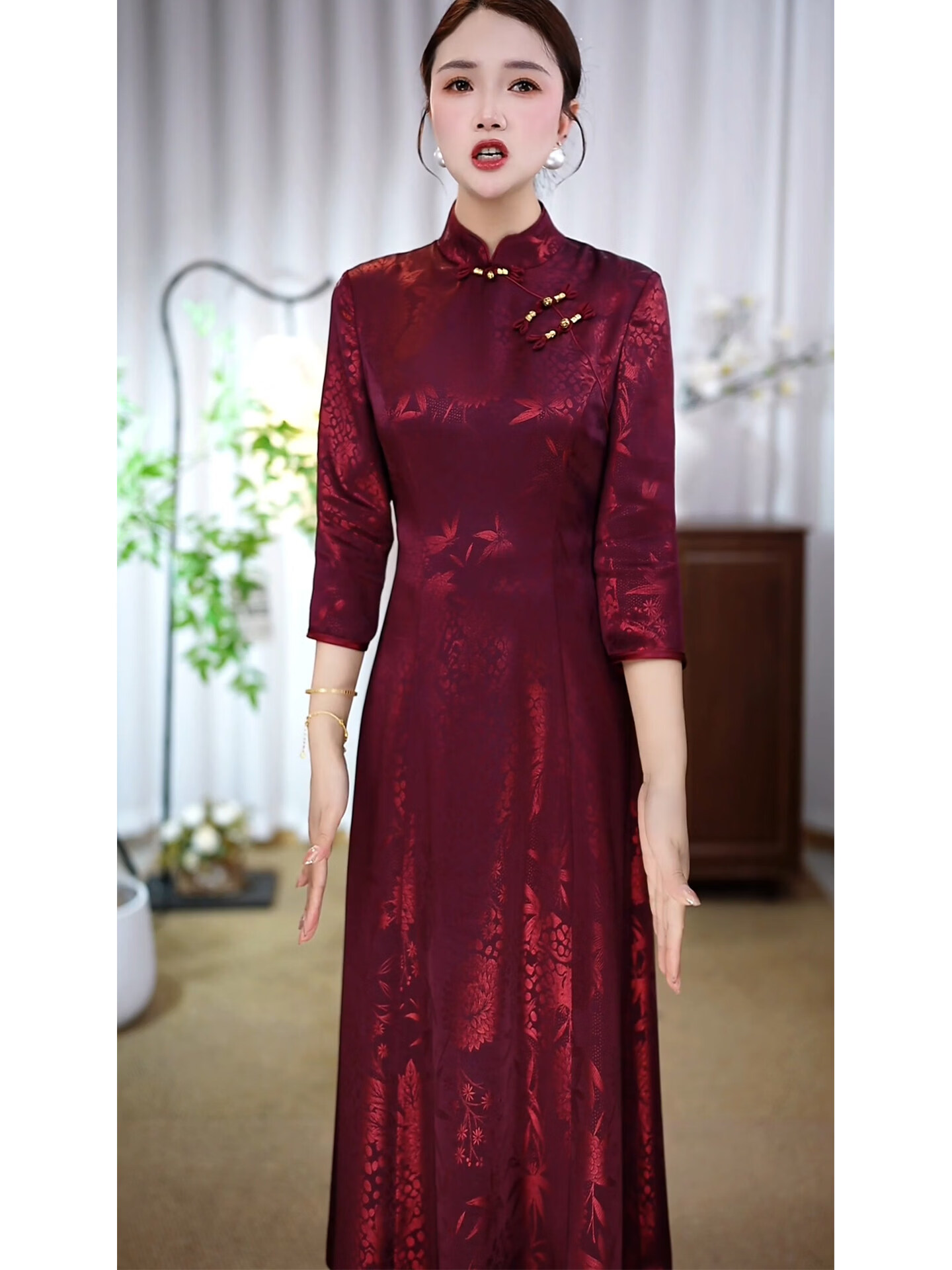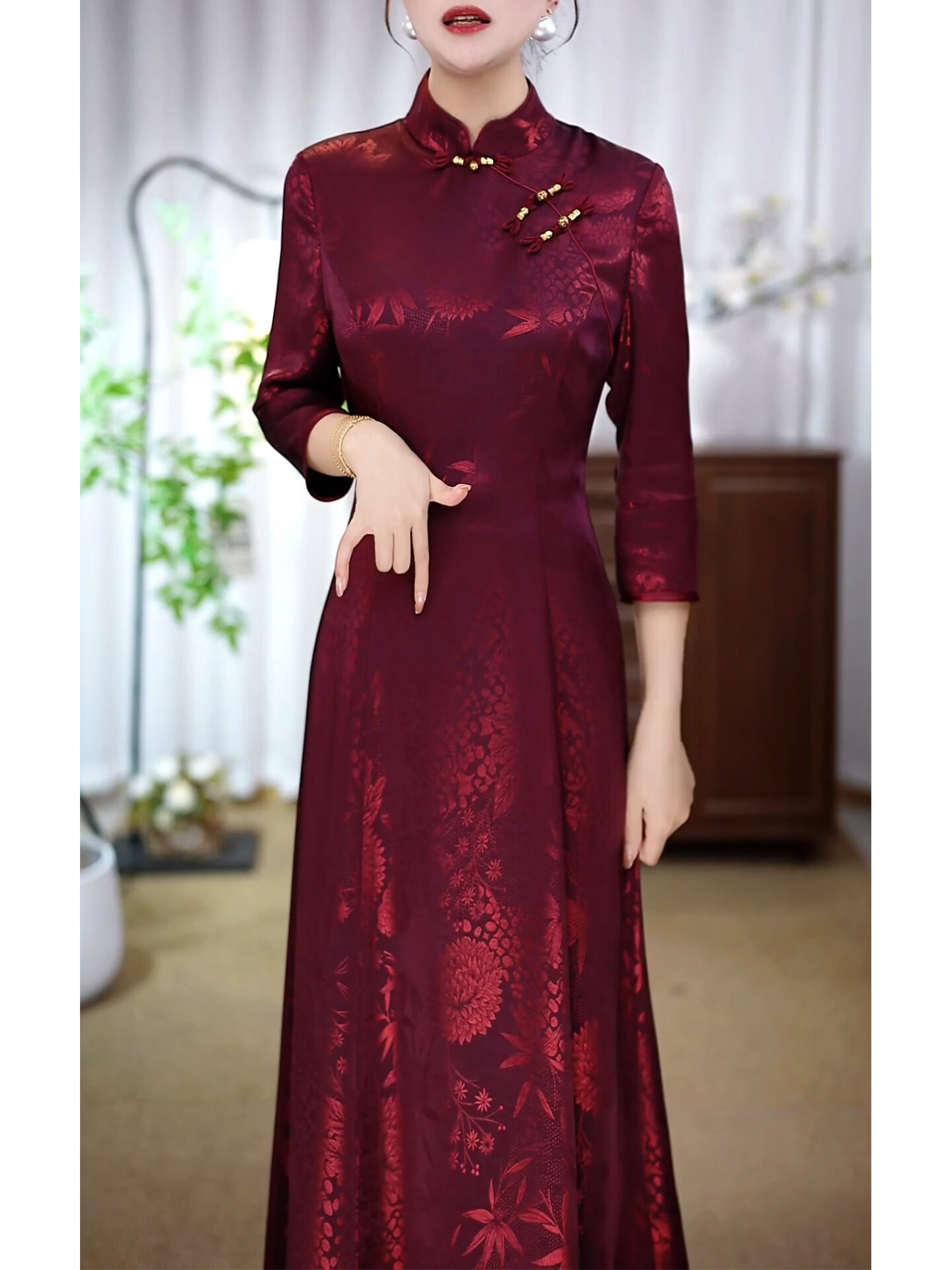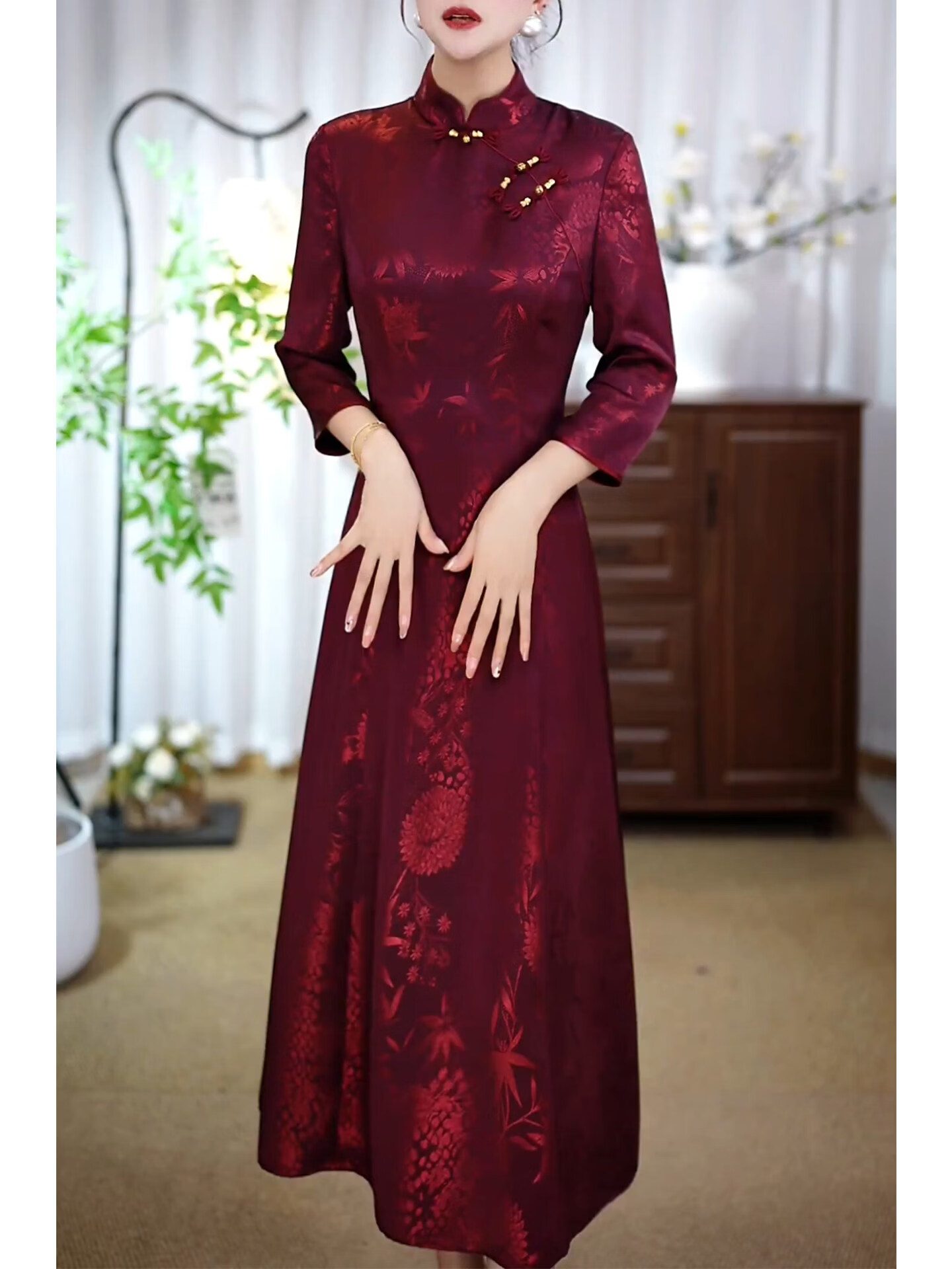 香影芬国风七分袖改良旗袍连衣裙女2026年春秋新款妈妈高端婚宴礼服裙子 图片色 M (建议85-100斤)