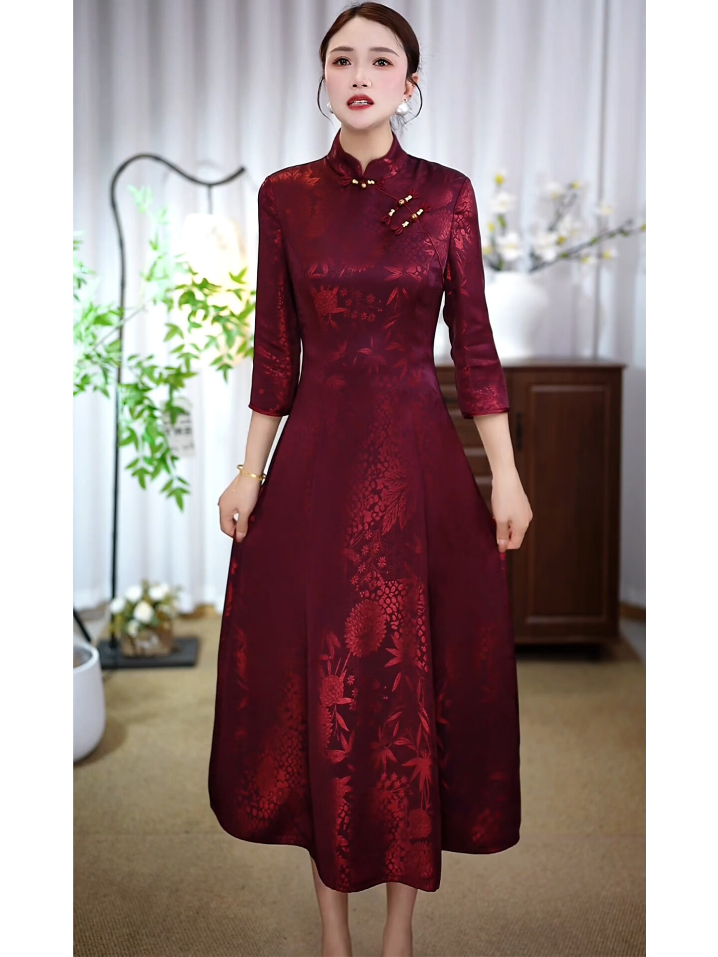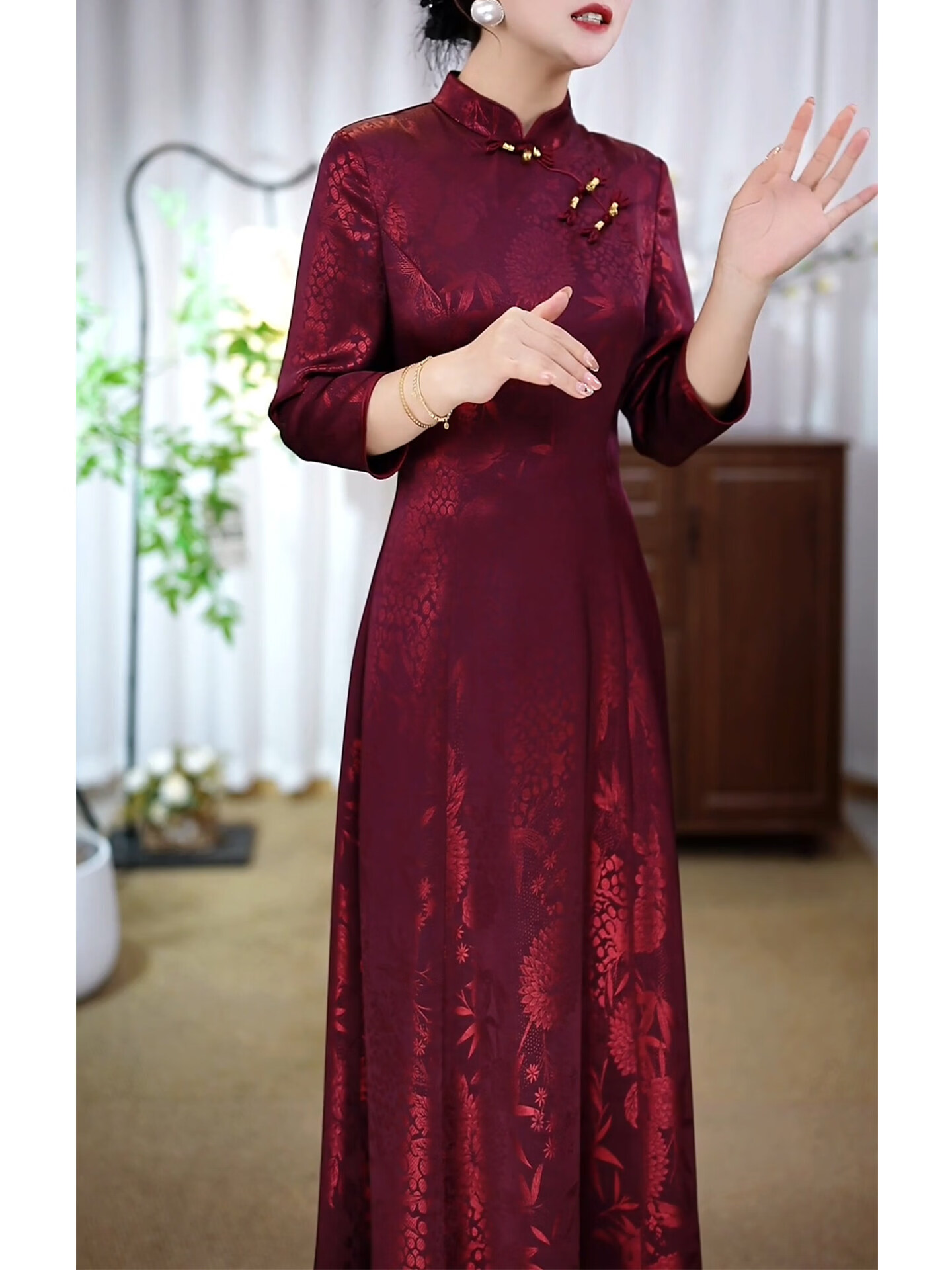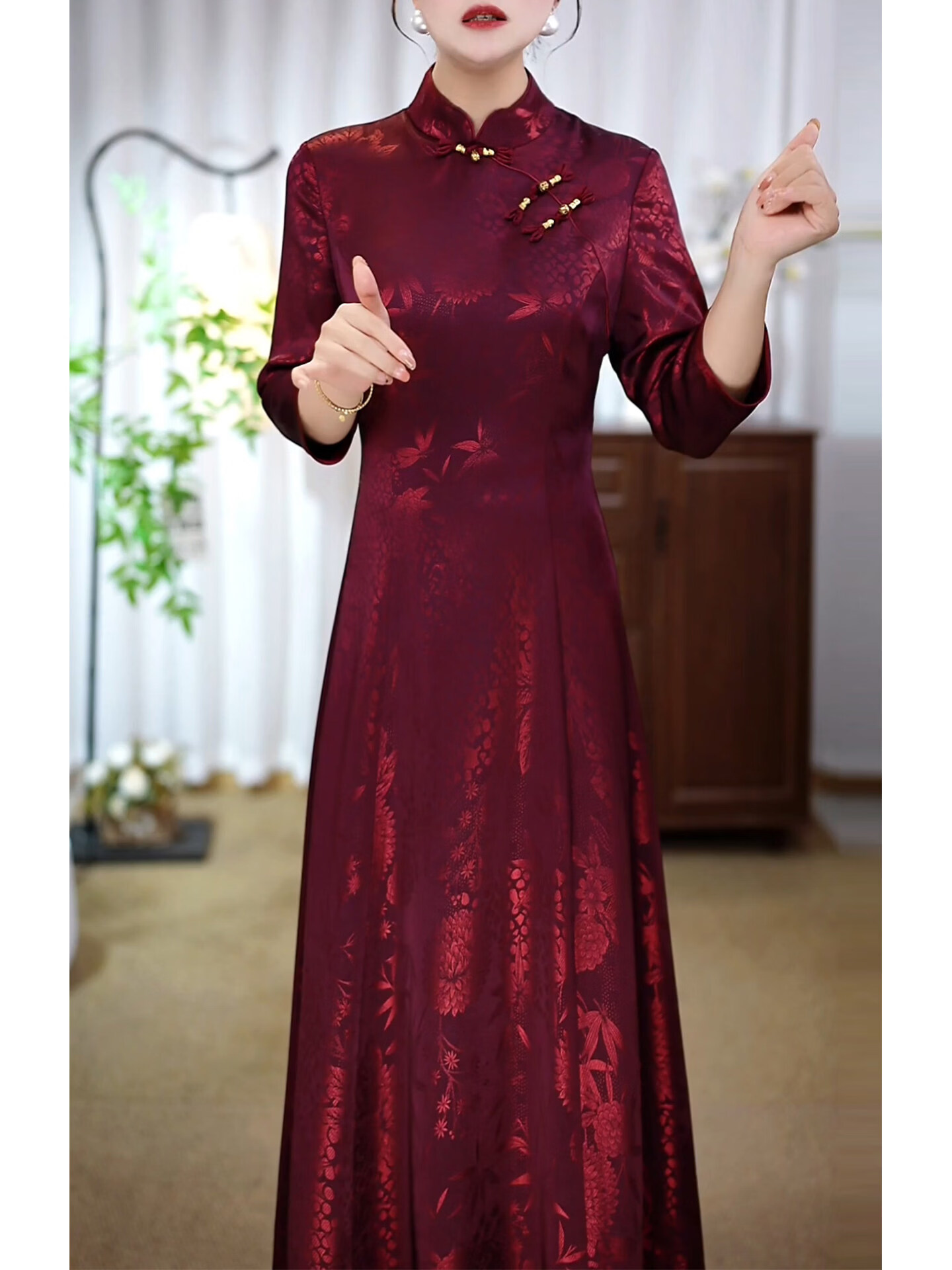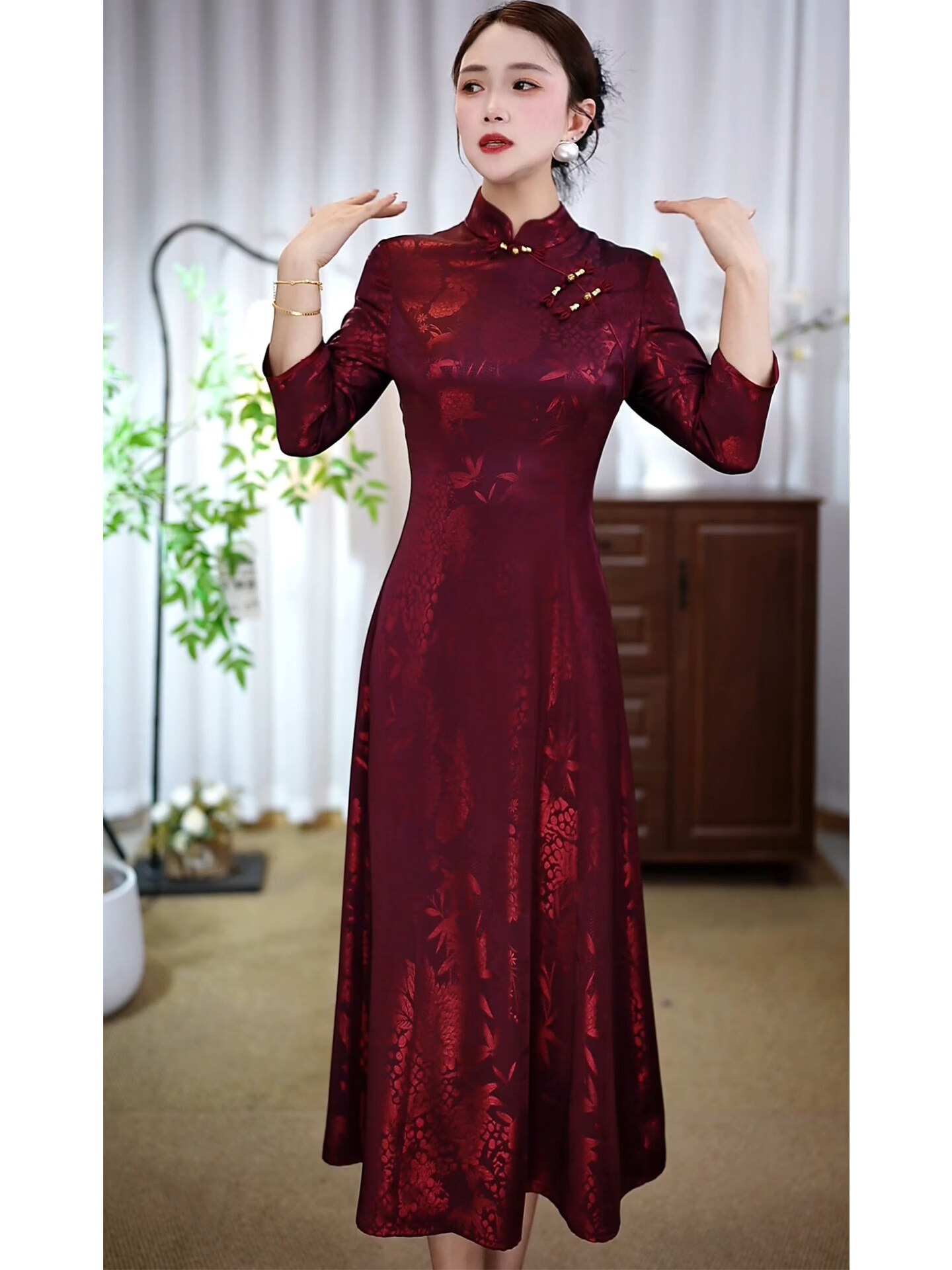 香影芬国风七分袖改良旗袍连衣裙女2026年春秋新款妈妈高端婚宴礼服裙子 图片色 M (建议85-100斤)