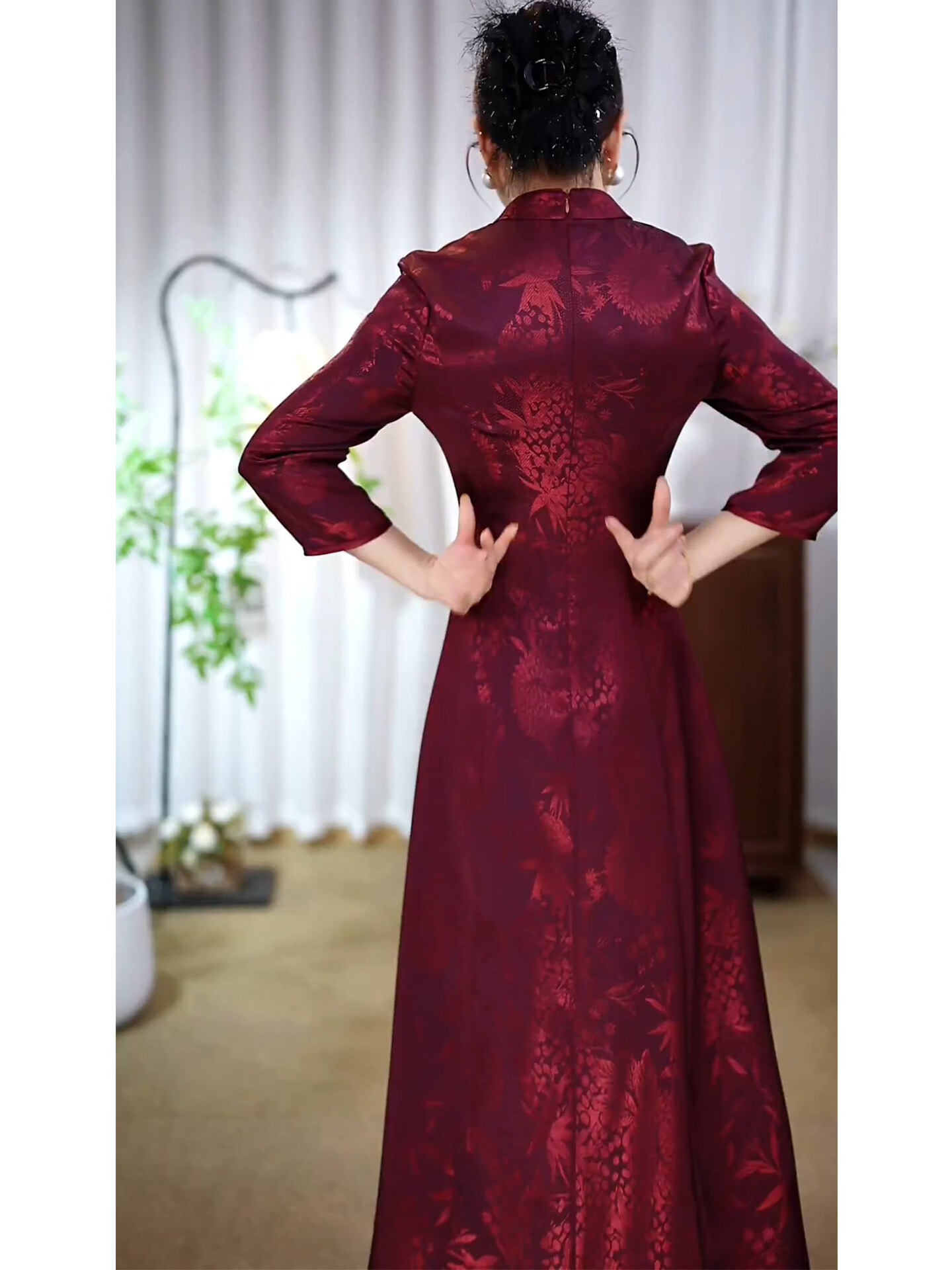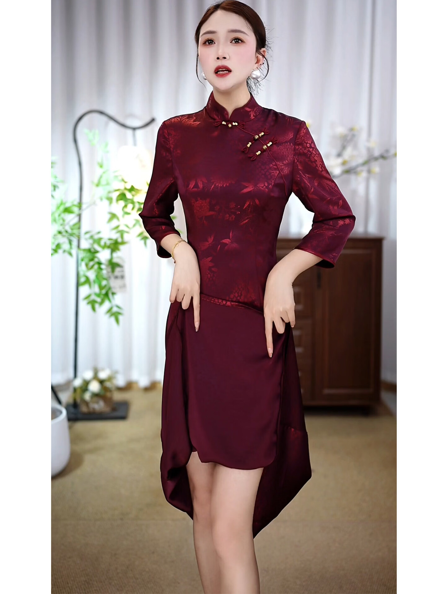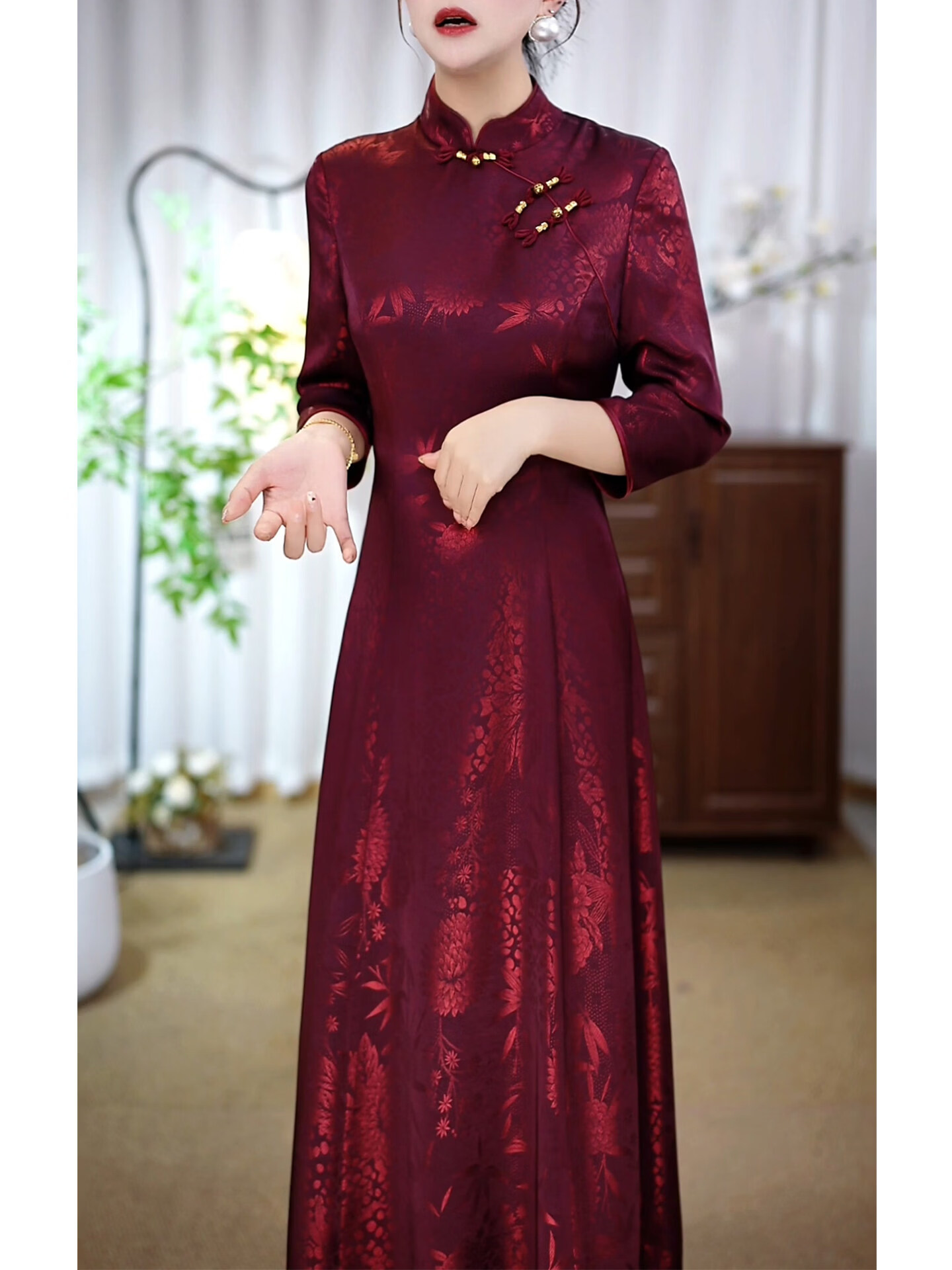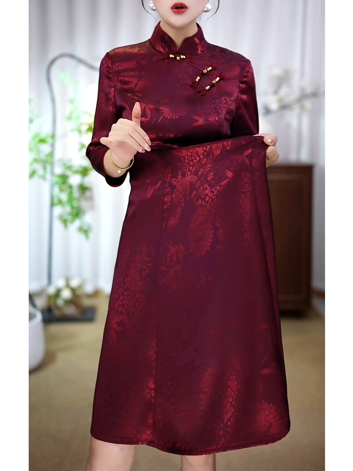 香影芬国风七分袖改良旗袍连衣裙女2026年春秋新款妈妈高端婚宴礼服裙子 图片色 M (建议85-100斤)