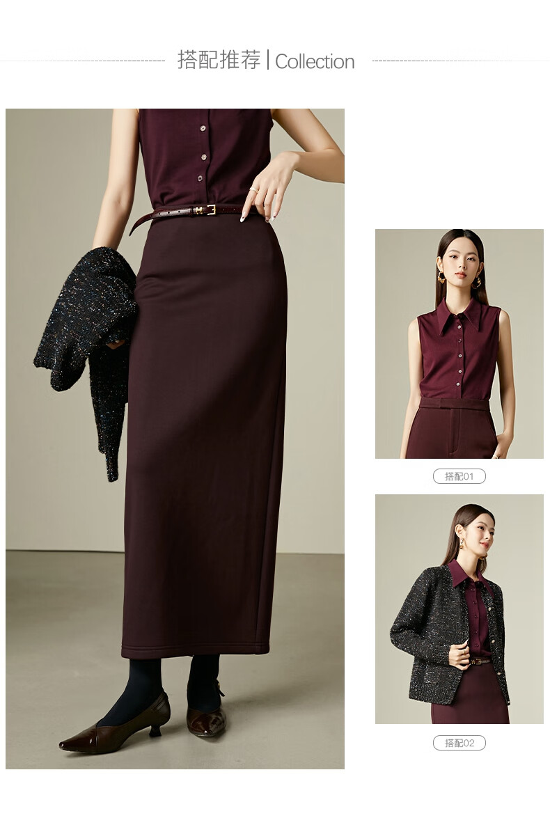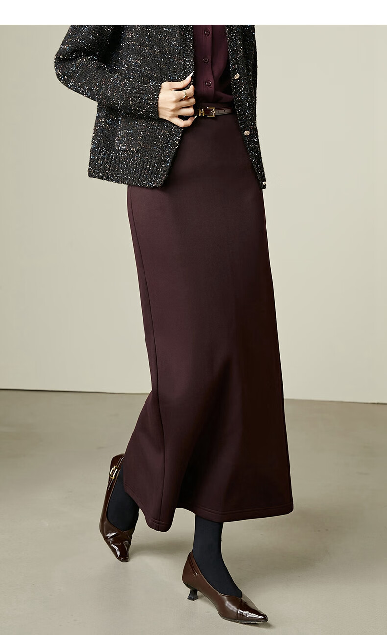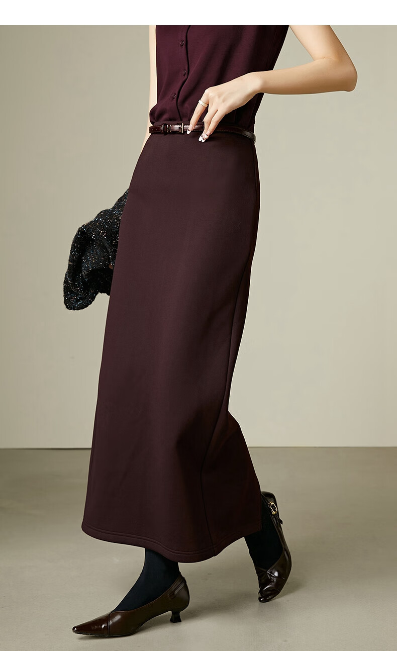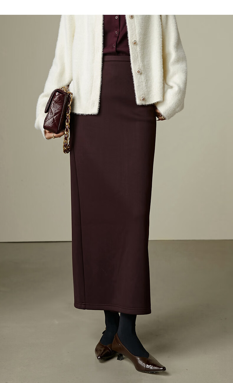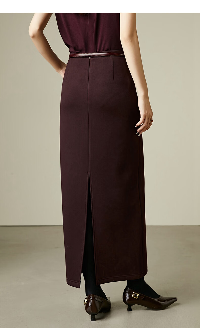 晚白【新品】冬款高腰开叉加绒保暖厚毛呢直筒裙【不含腰带】 安可拉红 S