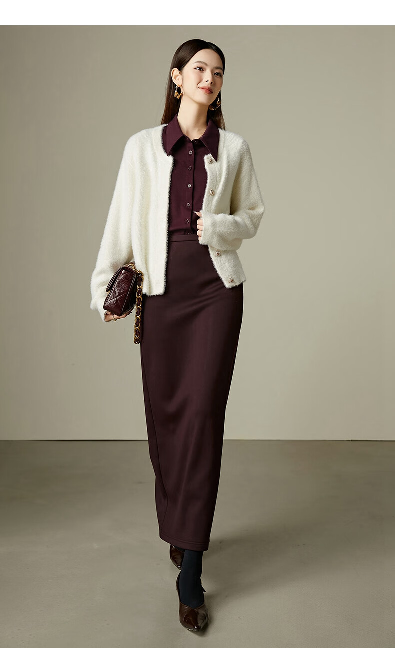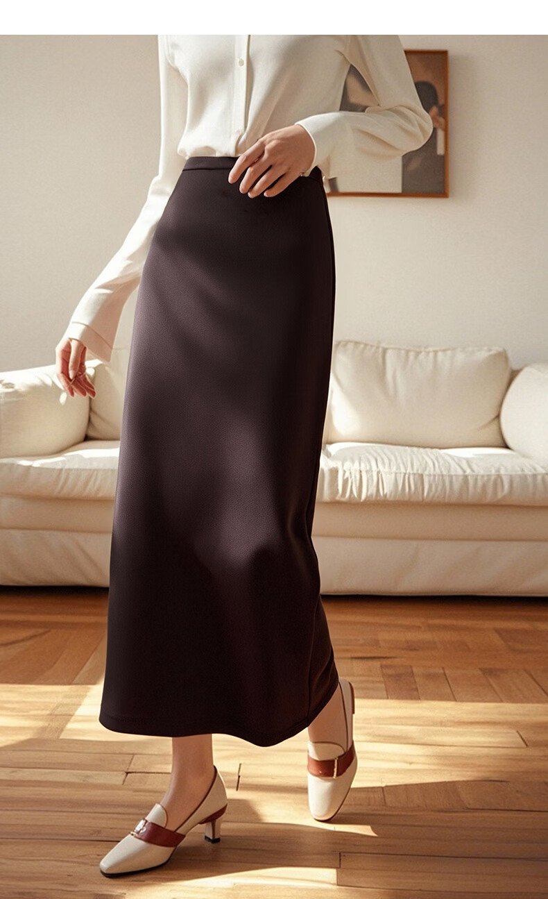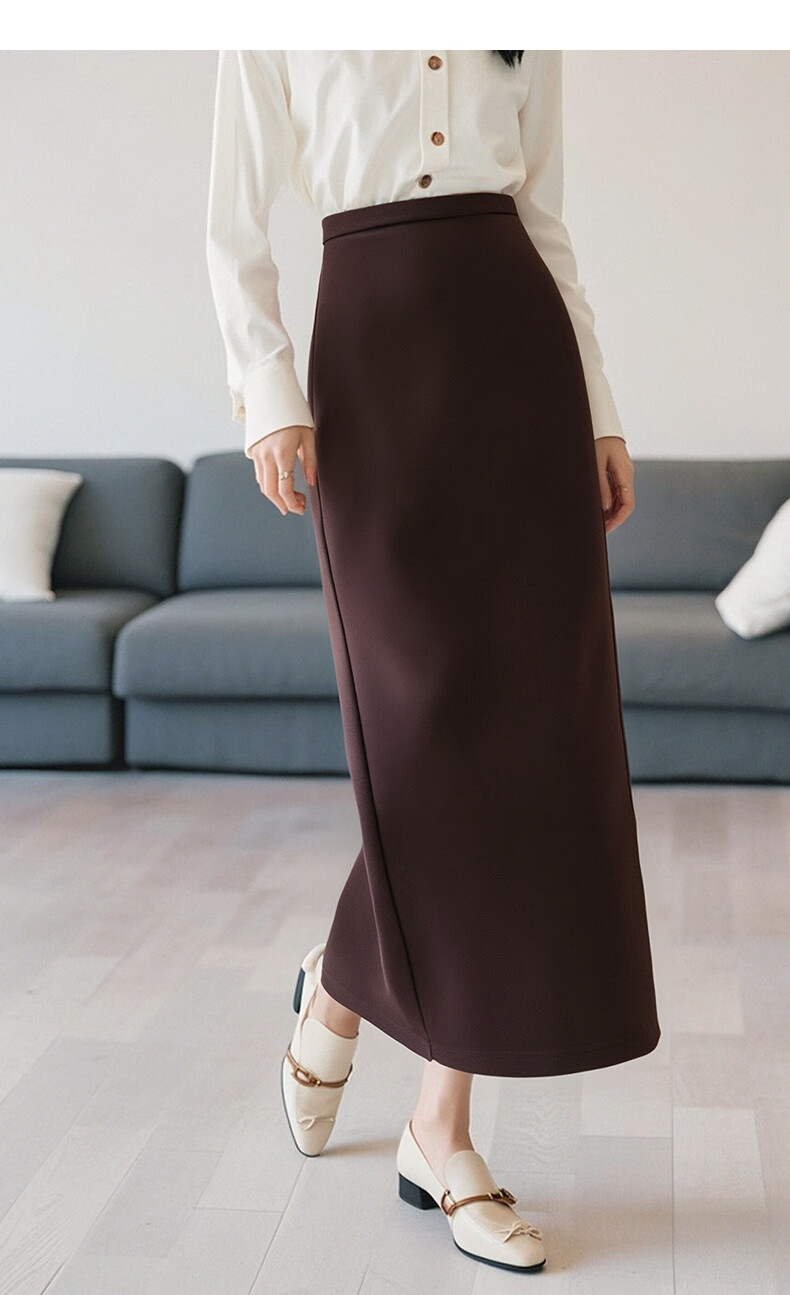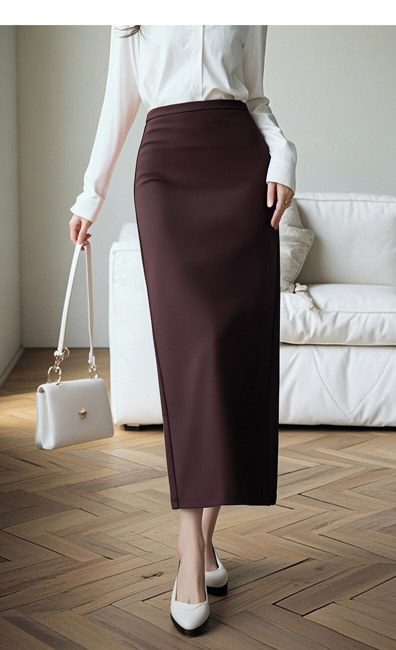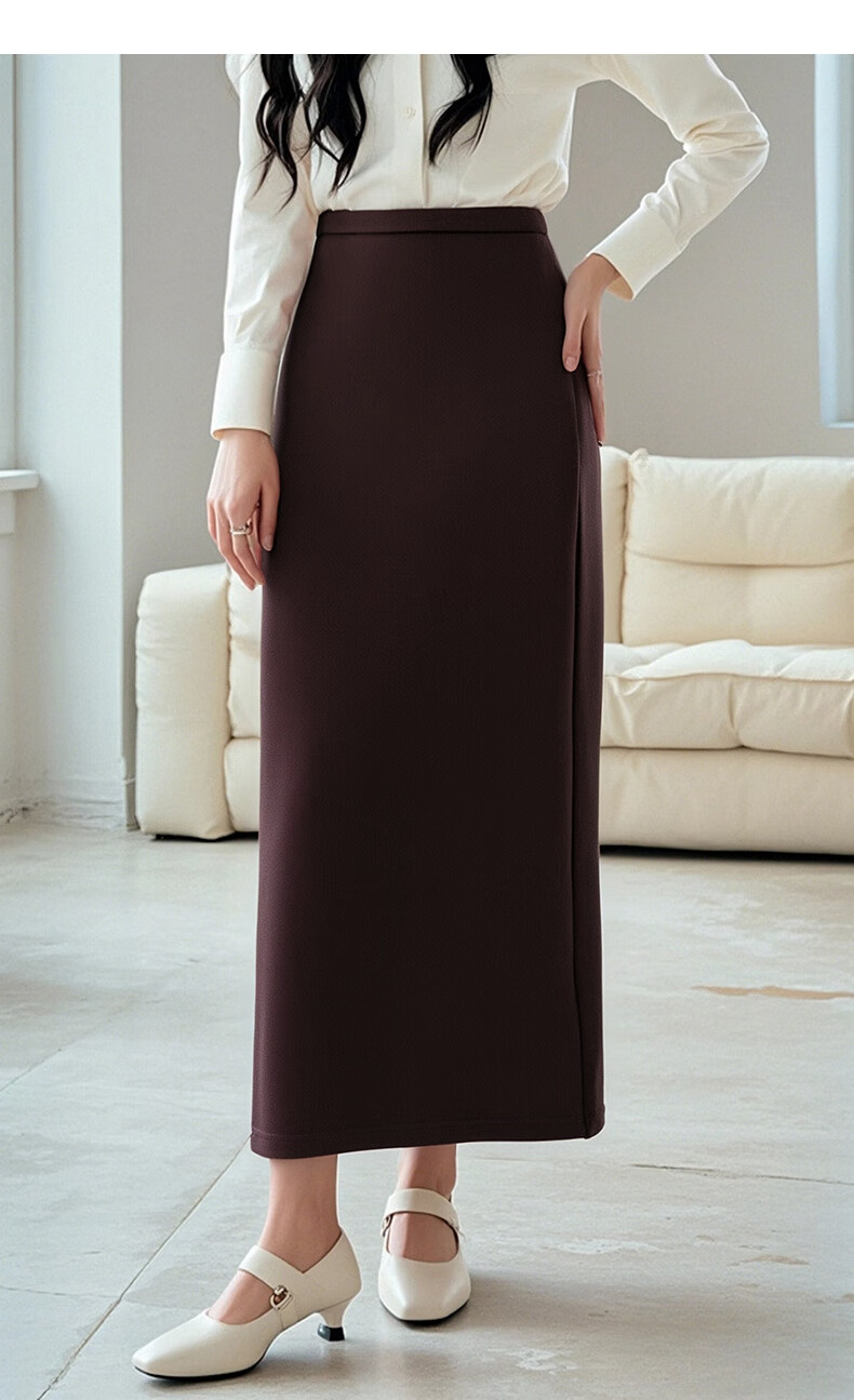 晚白【新品】冬款高腰开叉加绒保暖厚毛呢直筒裙【不含腰带】 安可拉红 S