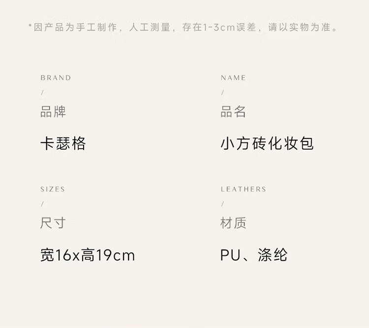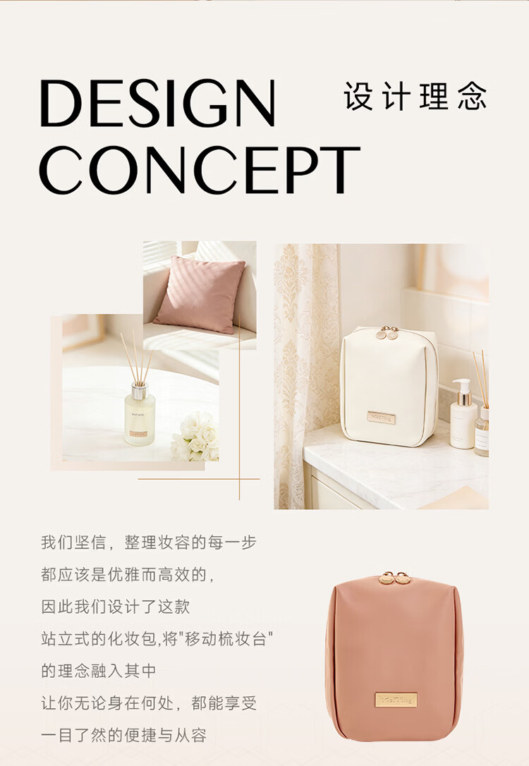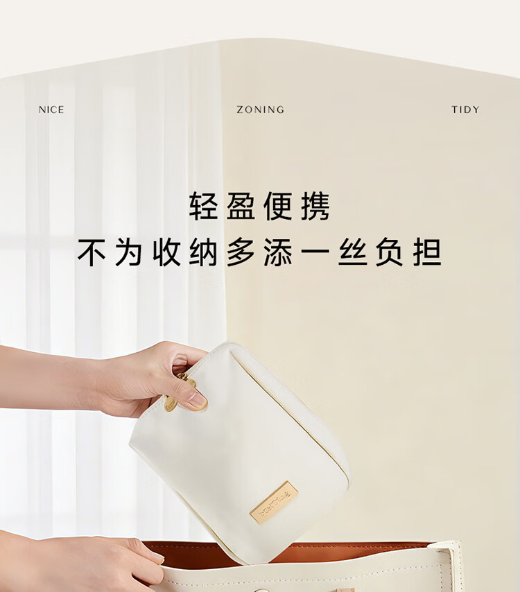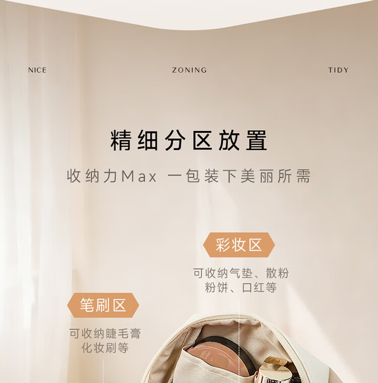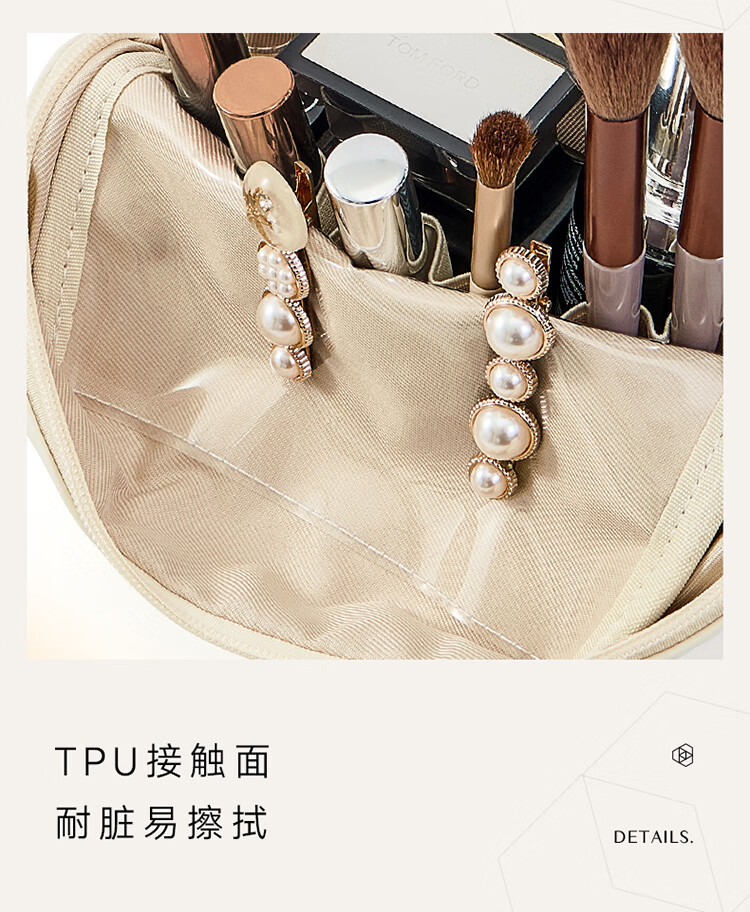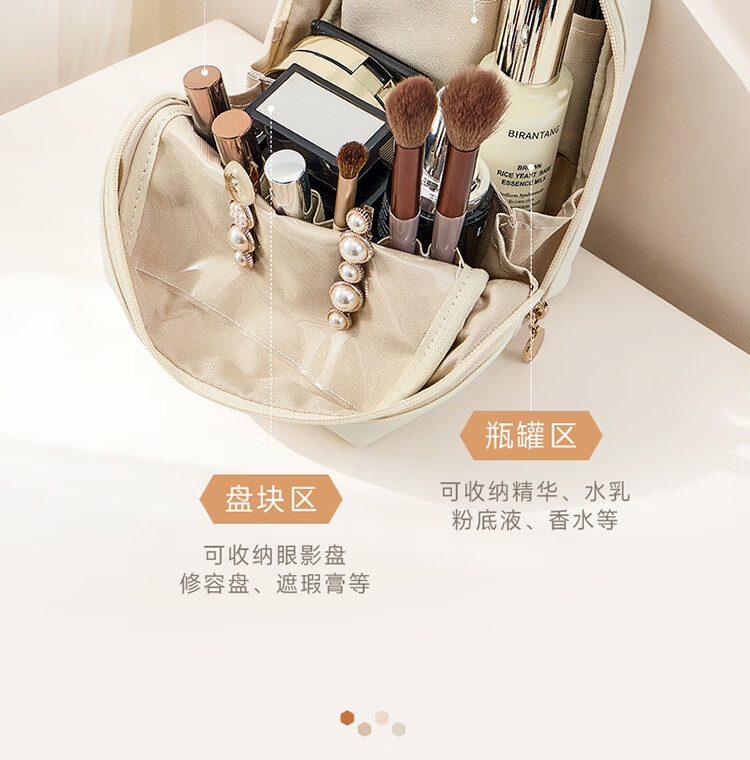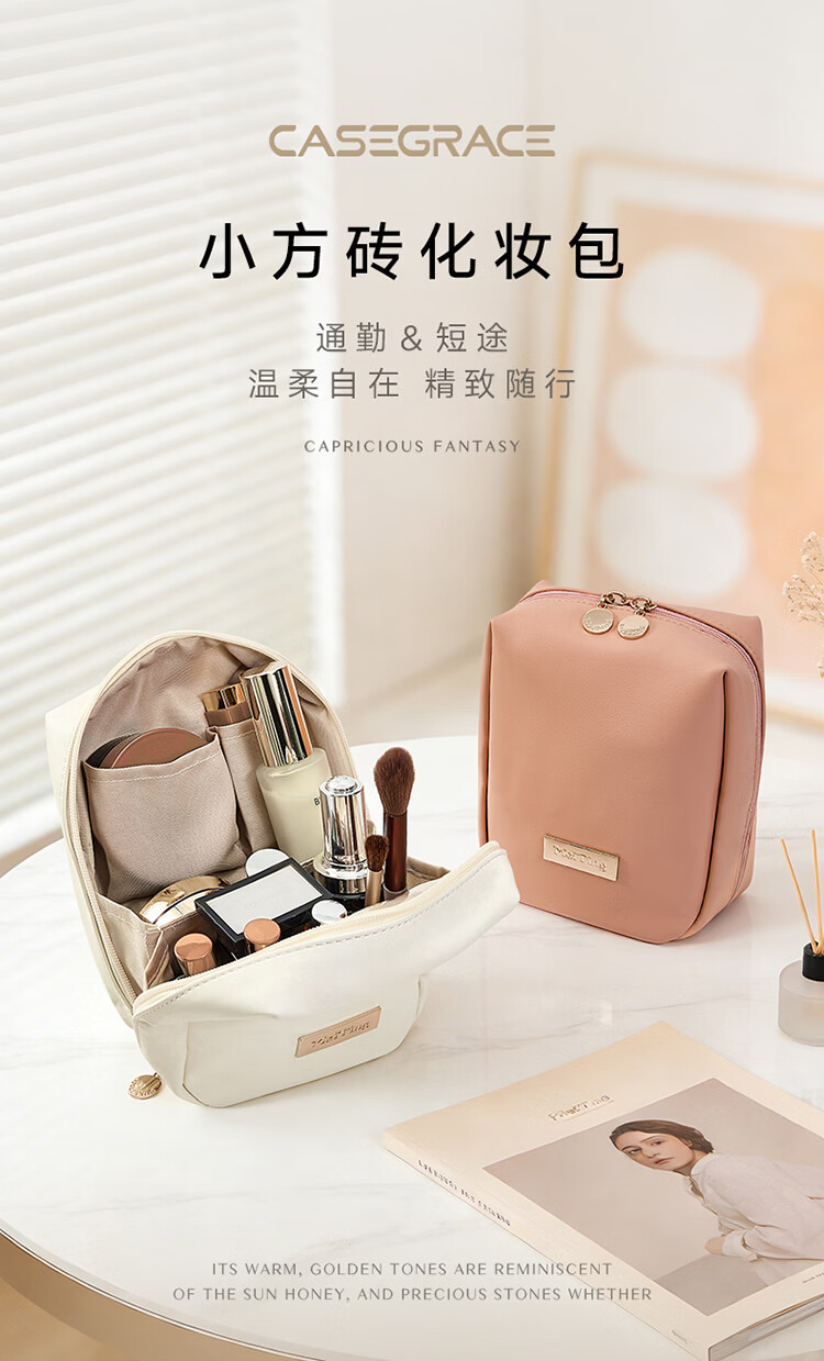 卡瑟格防水化妆包旅行立式收纳女外出便携大容量分区收纳轻奢高级 小方砖立式化妆包-奶油杏【防水耐脏】