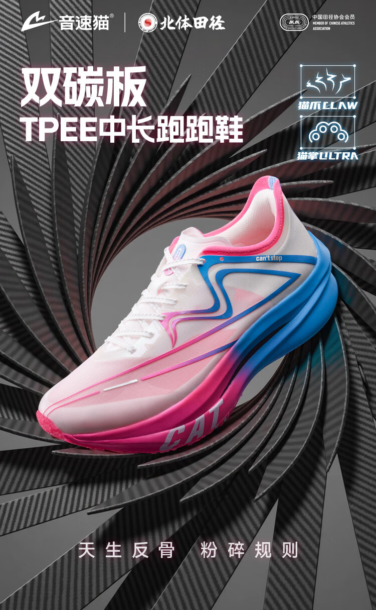音速猫 x 北京体育大学丨上瘾跑鞋马拉松跑步鞋双碳板体考体测中长跑鞋 新纪元银【三周年限定】 42