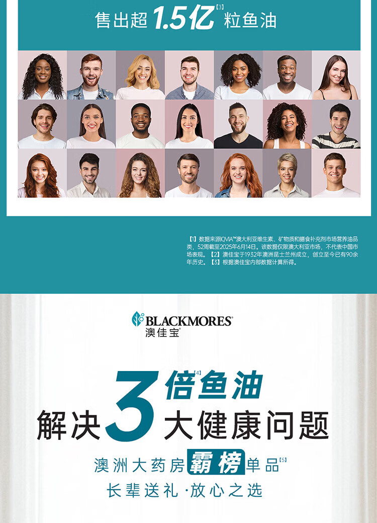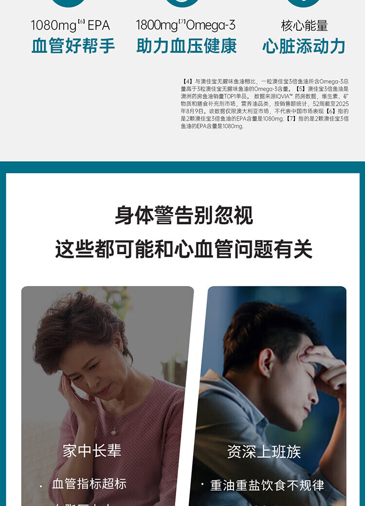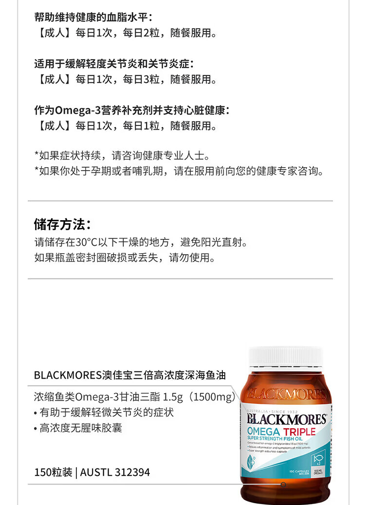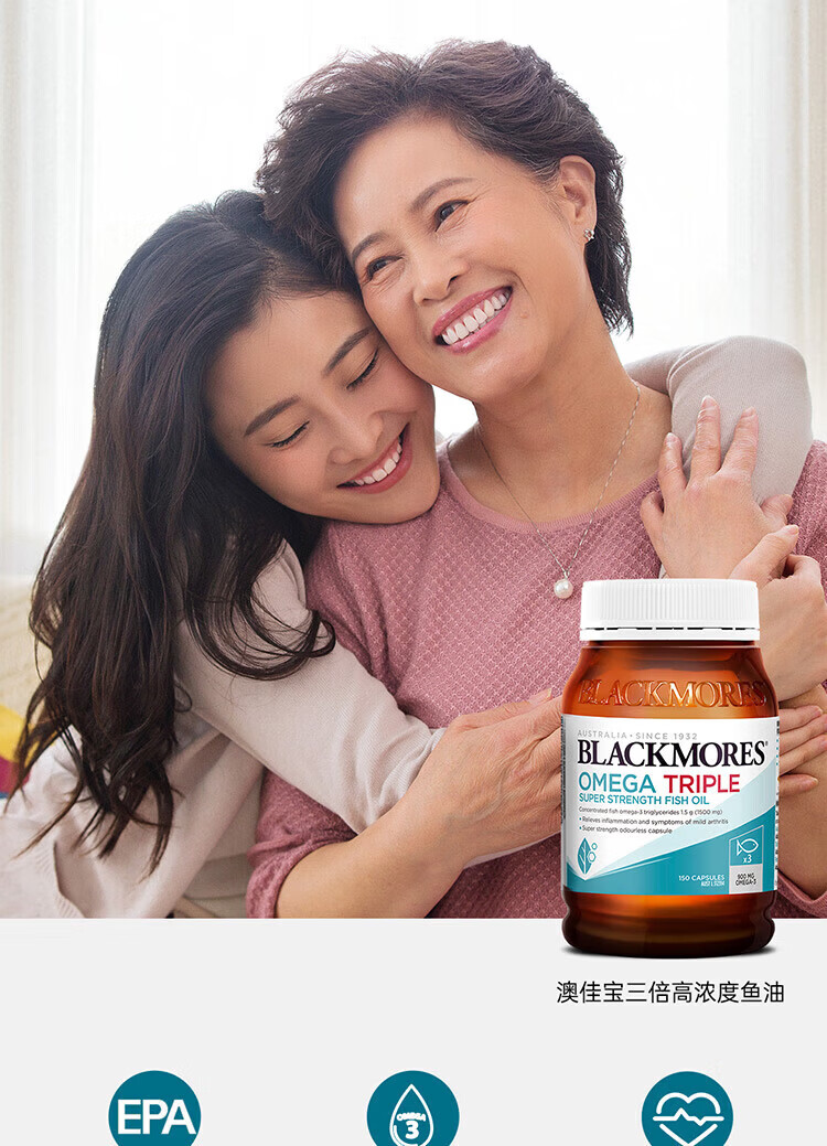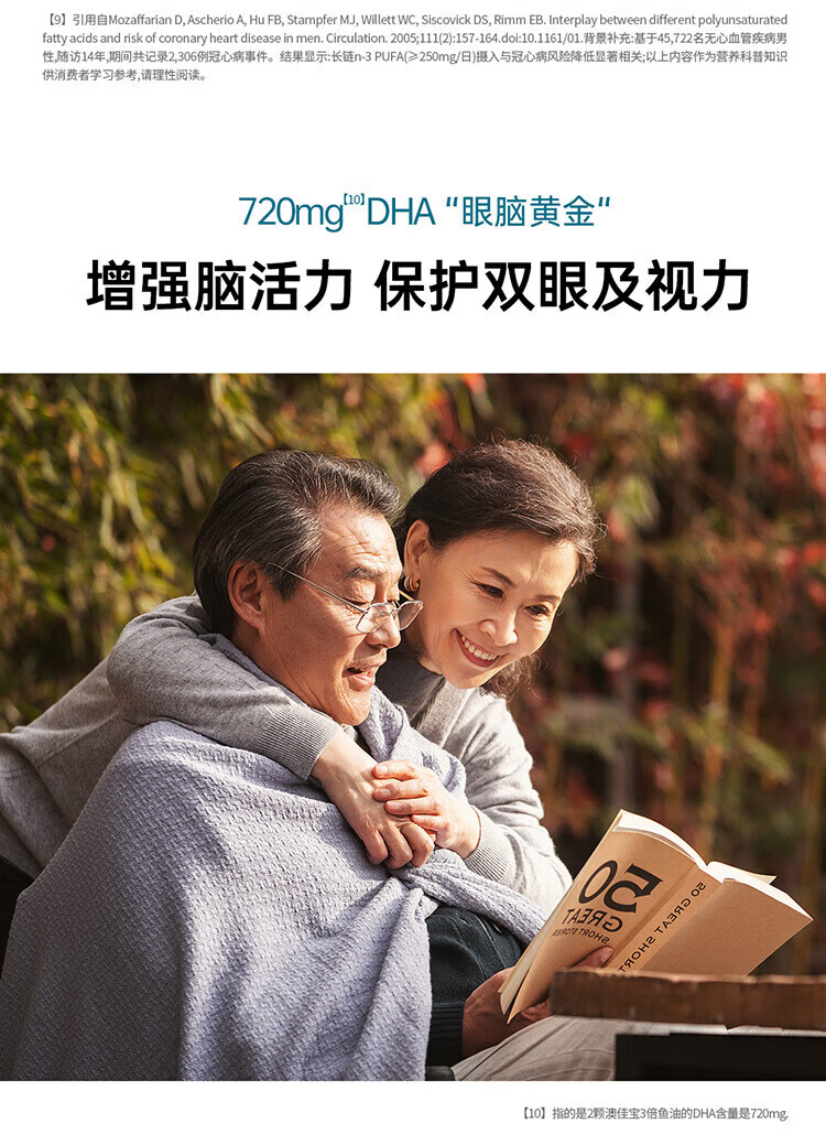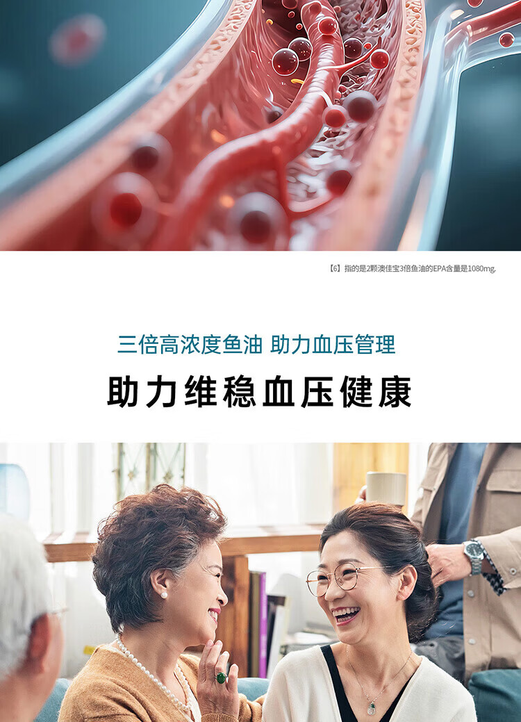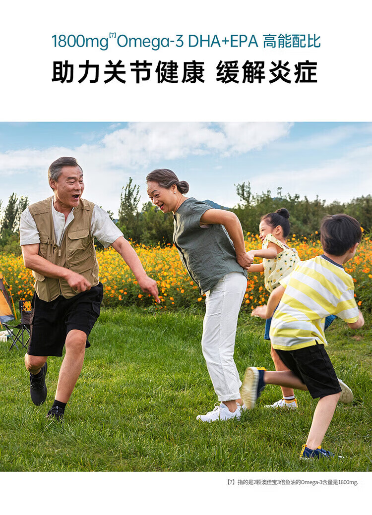 澳佳宝深海鱼油软胶囊3倍高浓度omega-3 dha+epa通血管降血脂进口 【优惠2瓶装】1粒顶3粒三倍浓缩鱼油 150粒*2瓶