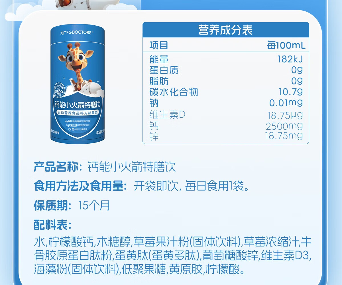 方广钙能小火箭特膳饮儿童果汁饮品草莓味320ml 钙能小火箭 320ml*1盒