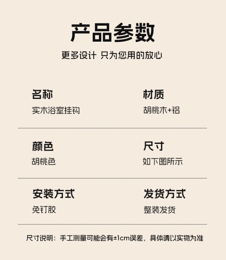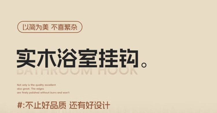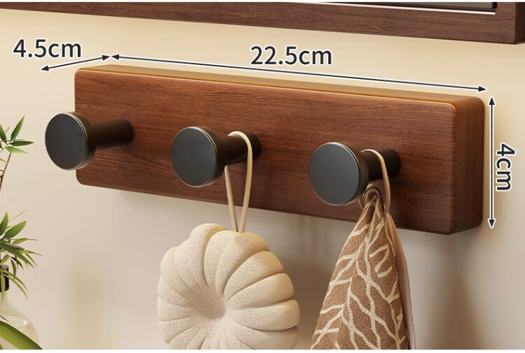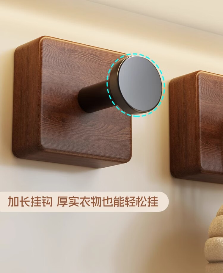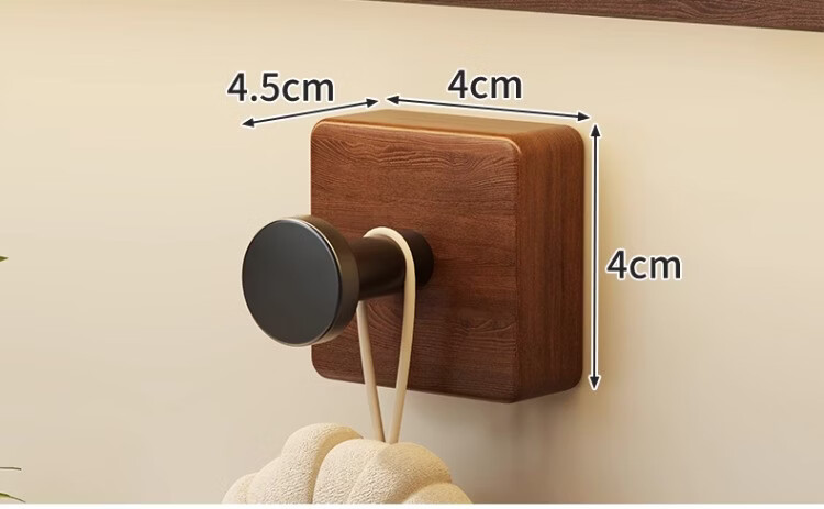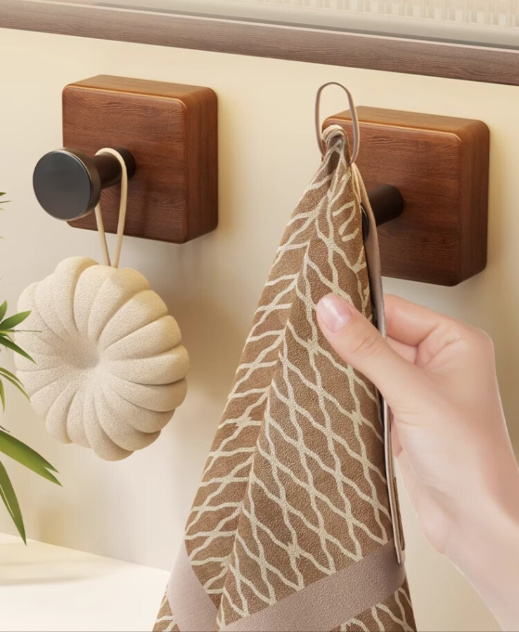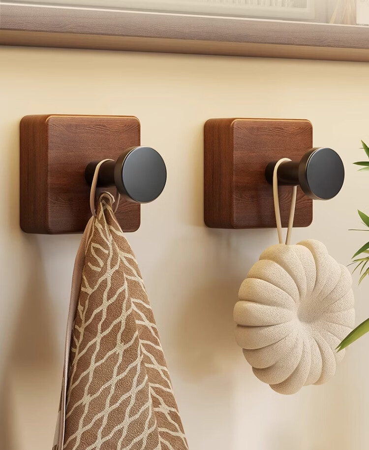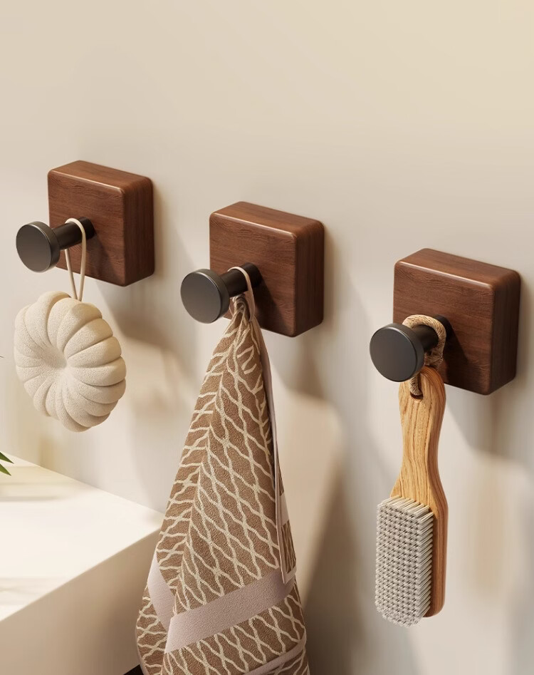 尔思家实木浴室挂钩粘胶强力承重免打孔浴室卫生间粘钩墙壁门后无痕毛巾 【胡桃木】单钩