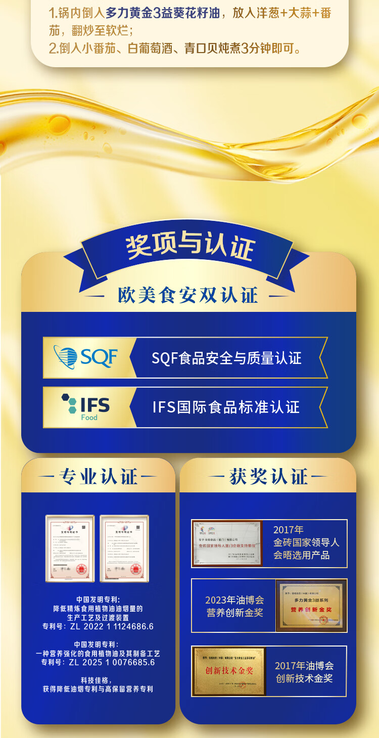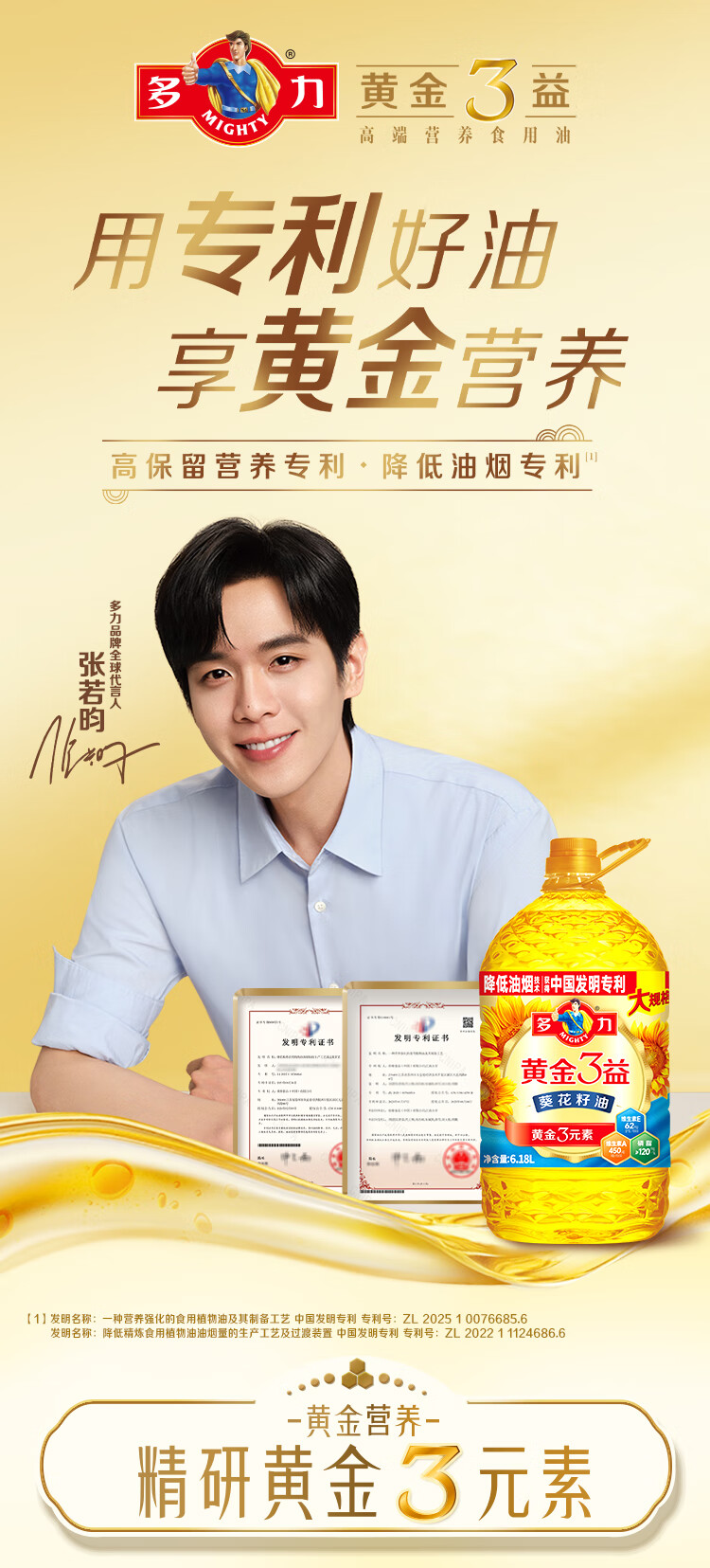 多力黄金3益葵花籽油6.18L家宴大规格食用油