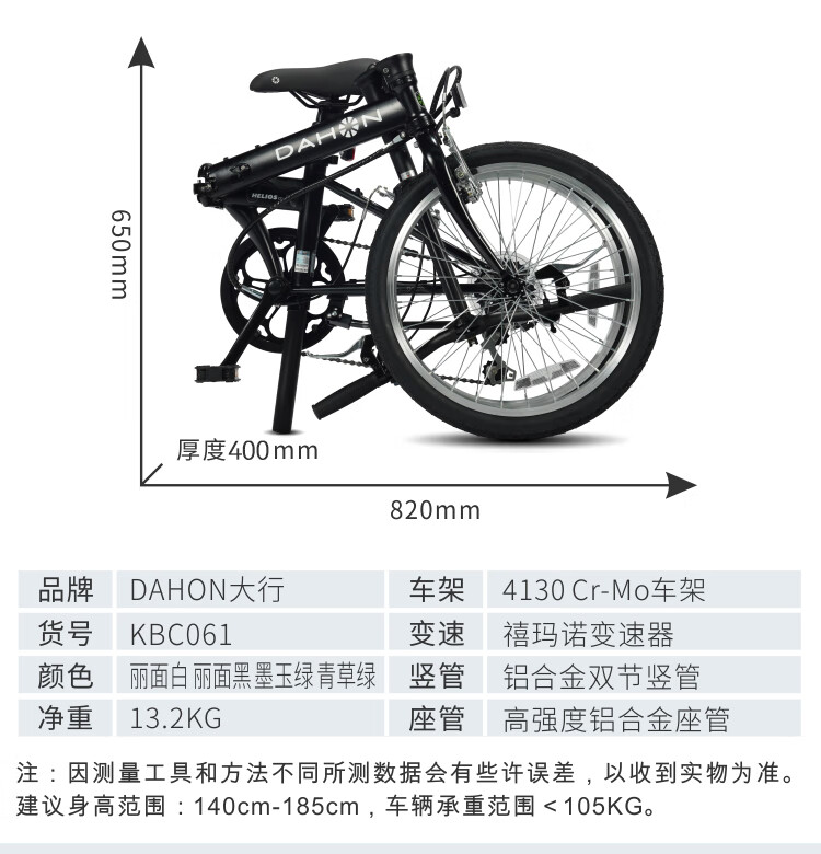 大行(DAHON)经典D6折叠自行车20英寸6速成人休闲单车 KBC061 墨绿色 20英寸