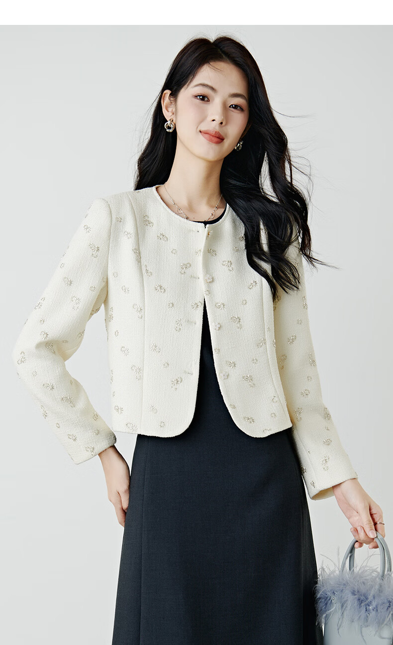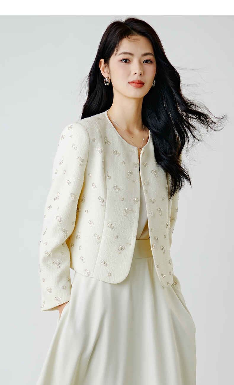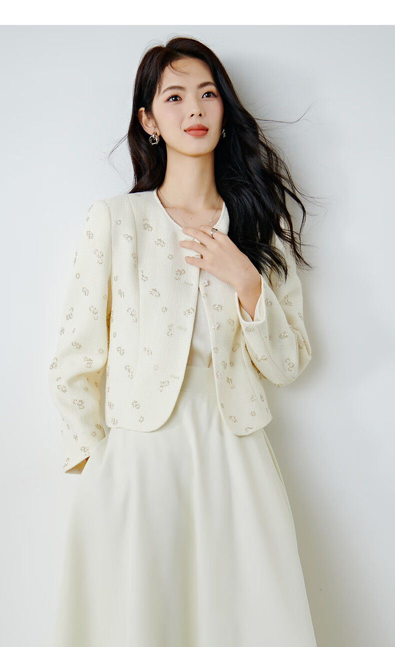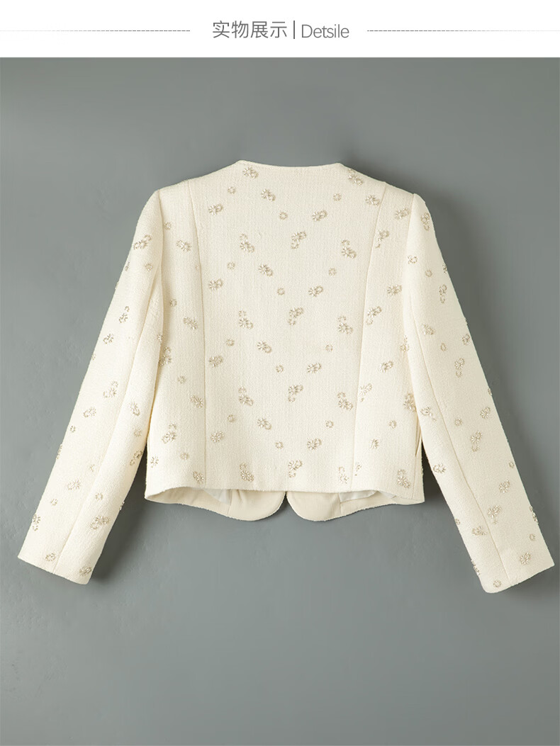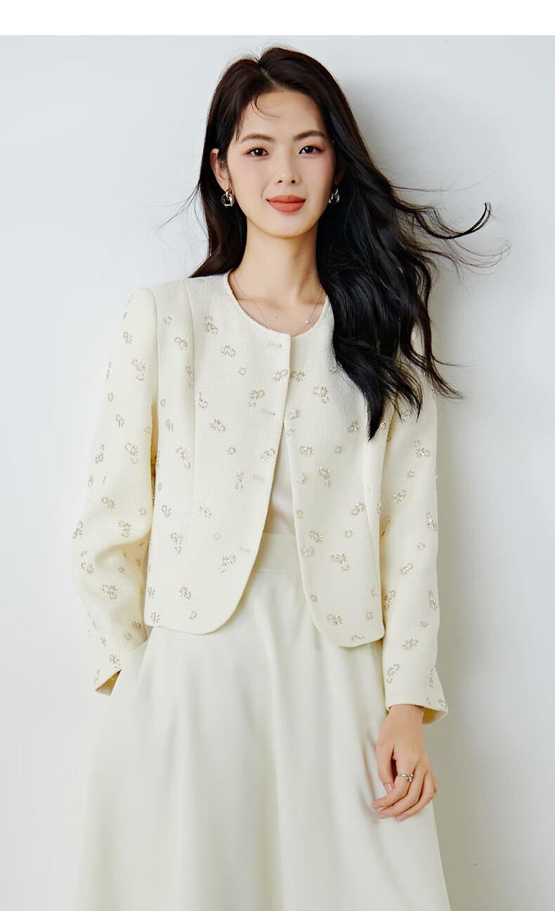 晚白【重工臻品系列】2026春款重要场合时尚圆领上衣廓形挺括短外套女 米杏色 M