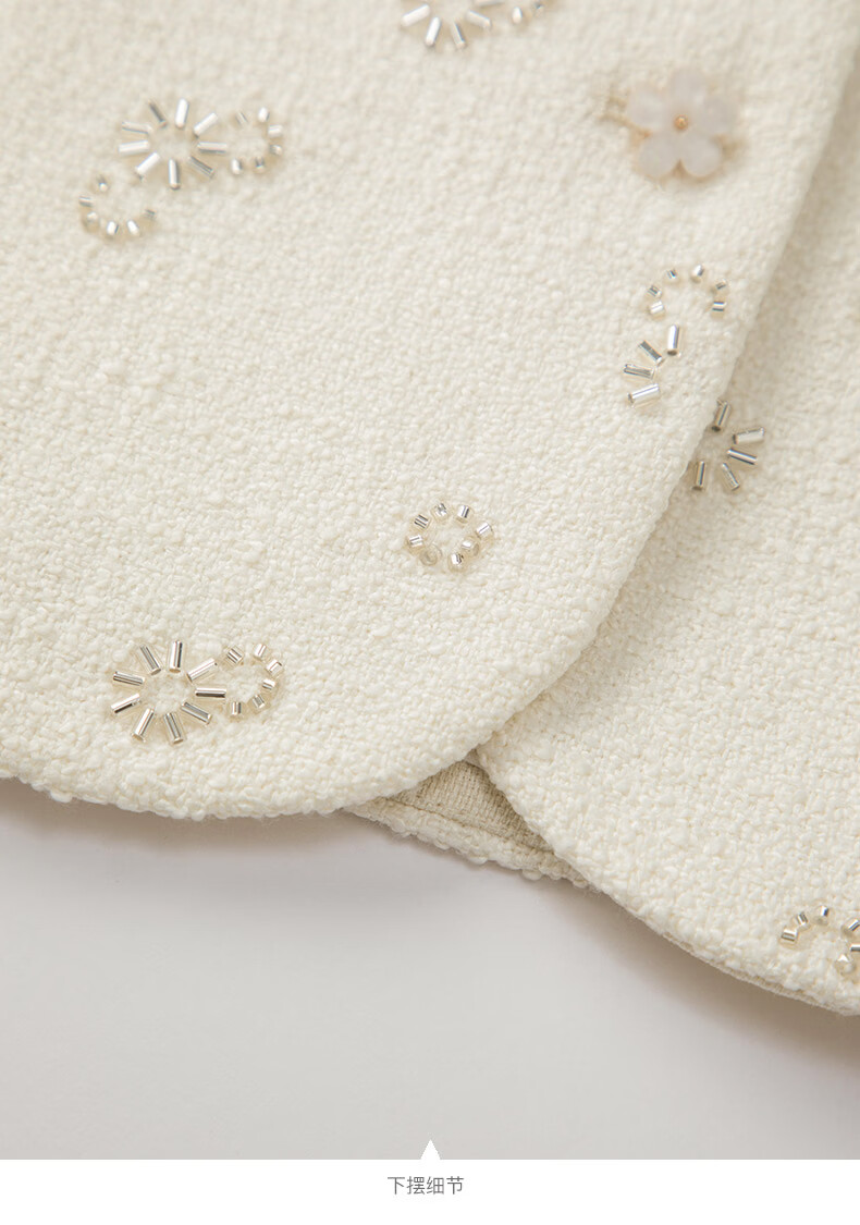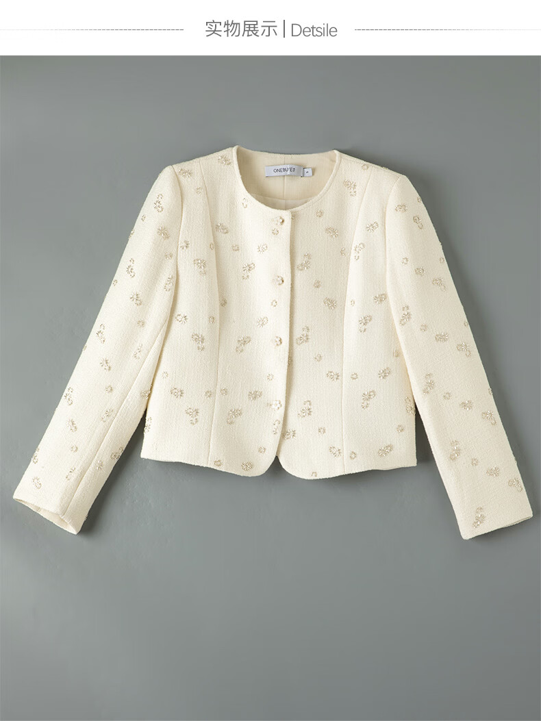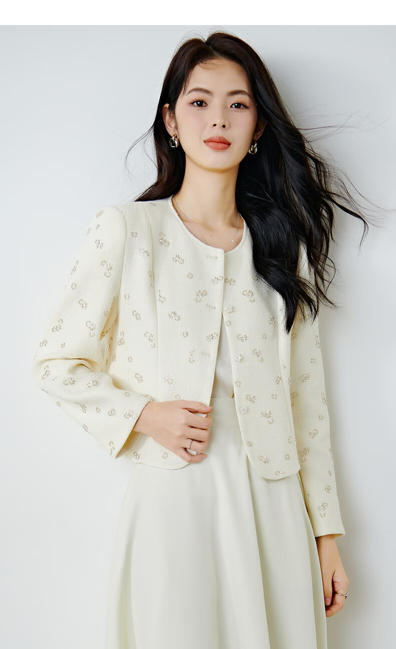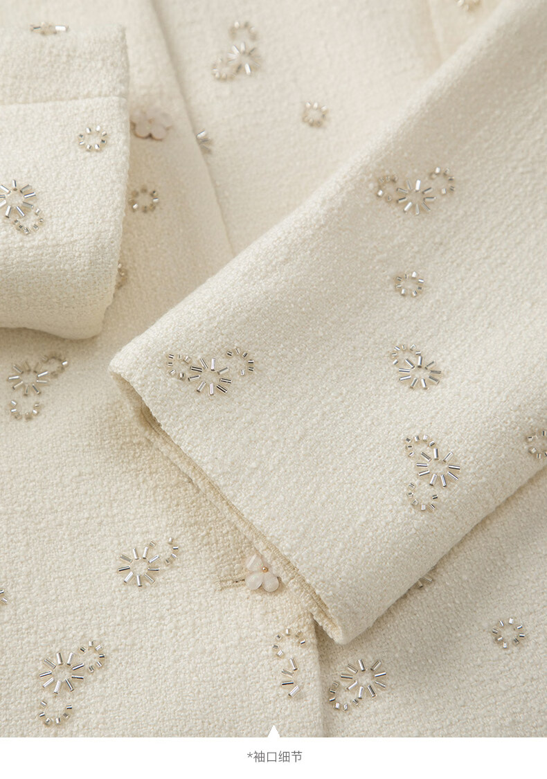 晚白【重工臻品系列】2026春款重要场合时尚圆领上衣廓形挺括短外套女 米杏色 M
