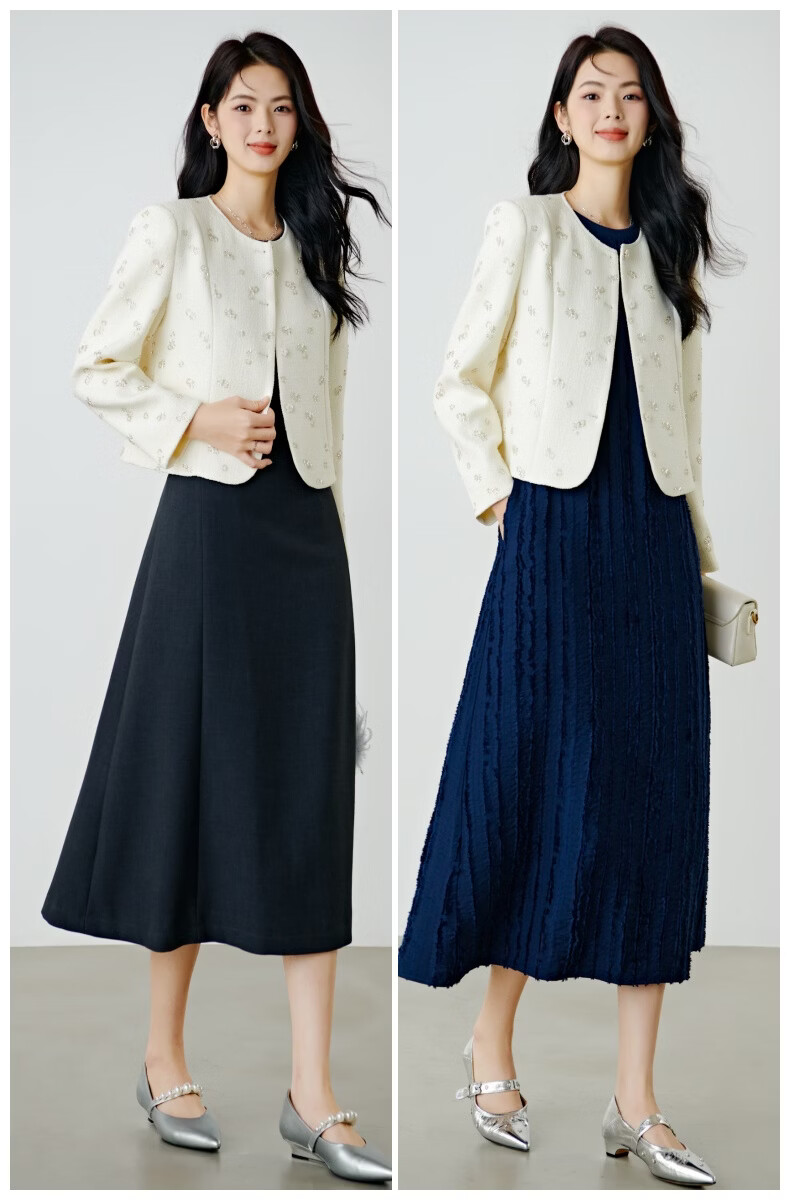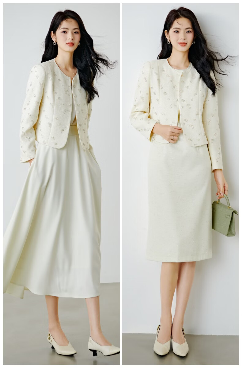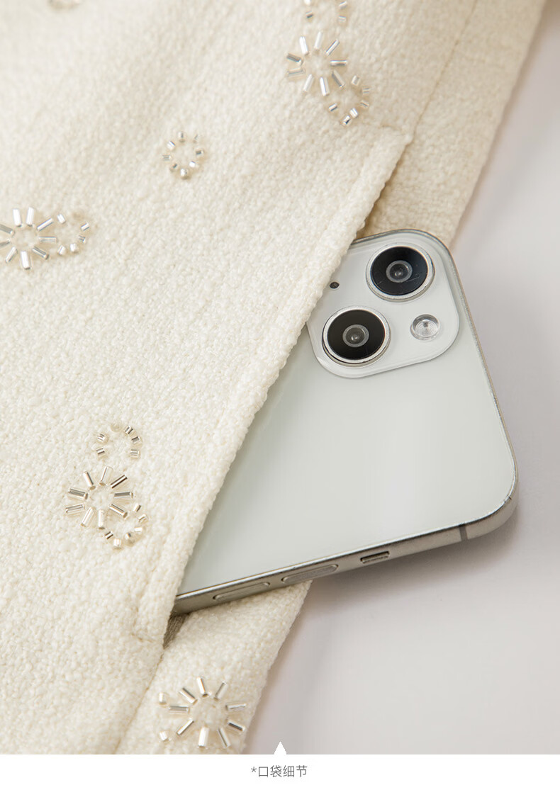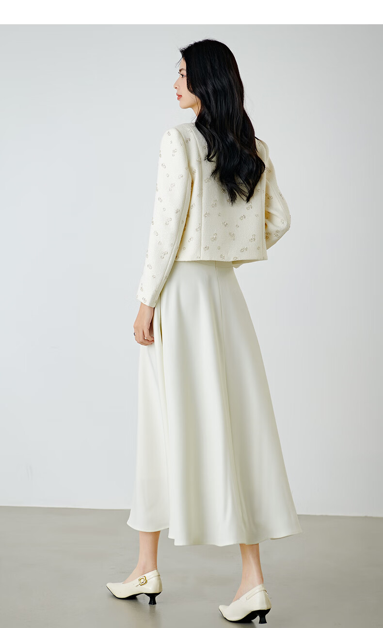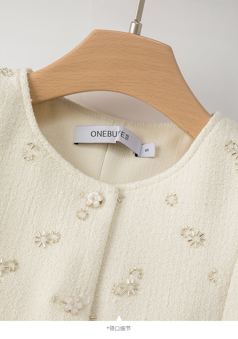 晚白【重工臻品系列】2026春款重要场合时尚圆领上衣廓形挺括短外套女 米杏色 M