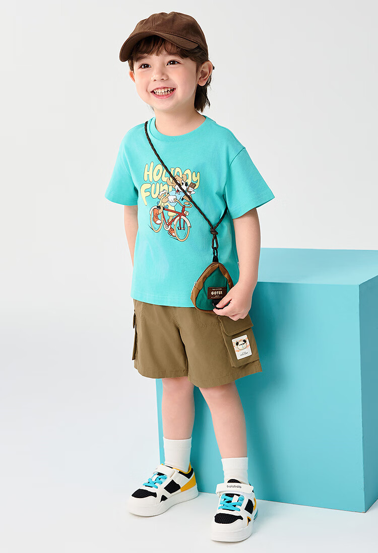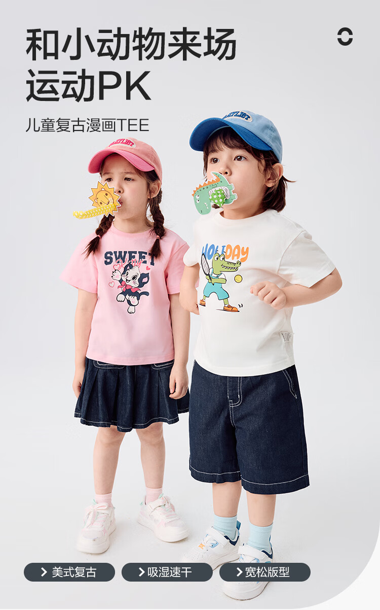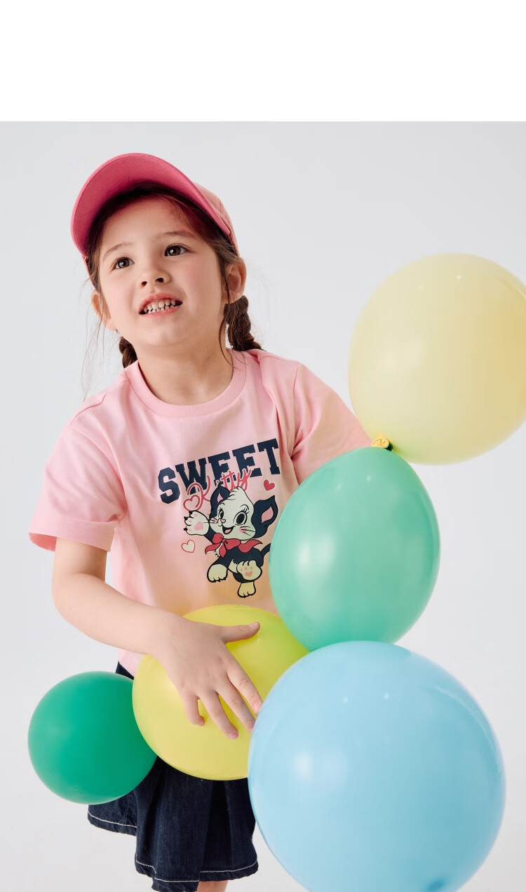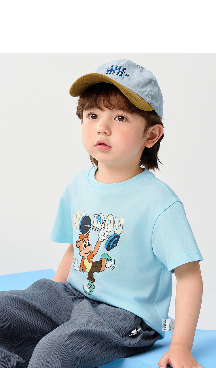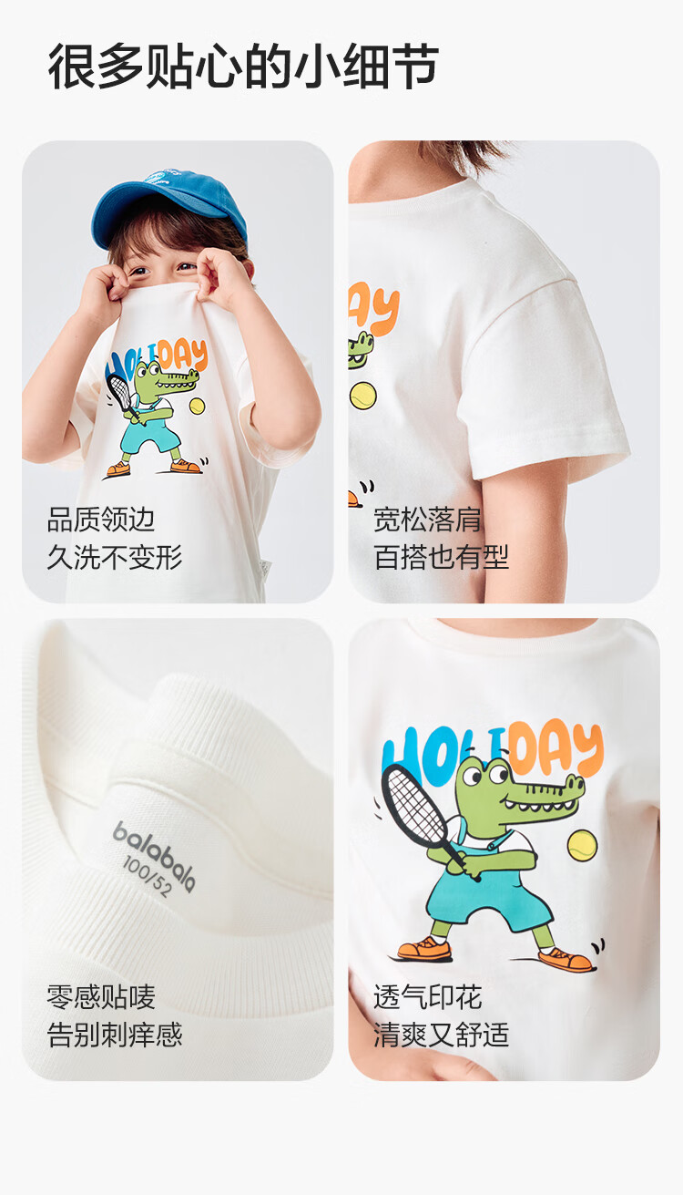 巴拉巴拉童装儿童t恤纯棉短袖上衣女童男童夏装吸湿速干 粉蓝80072 120