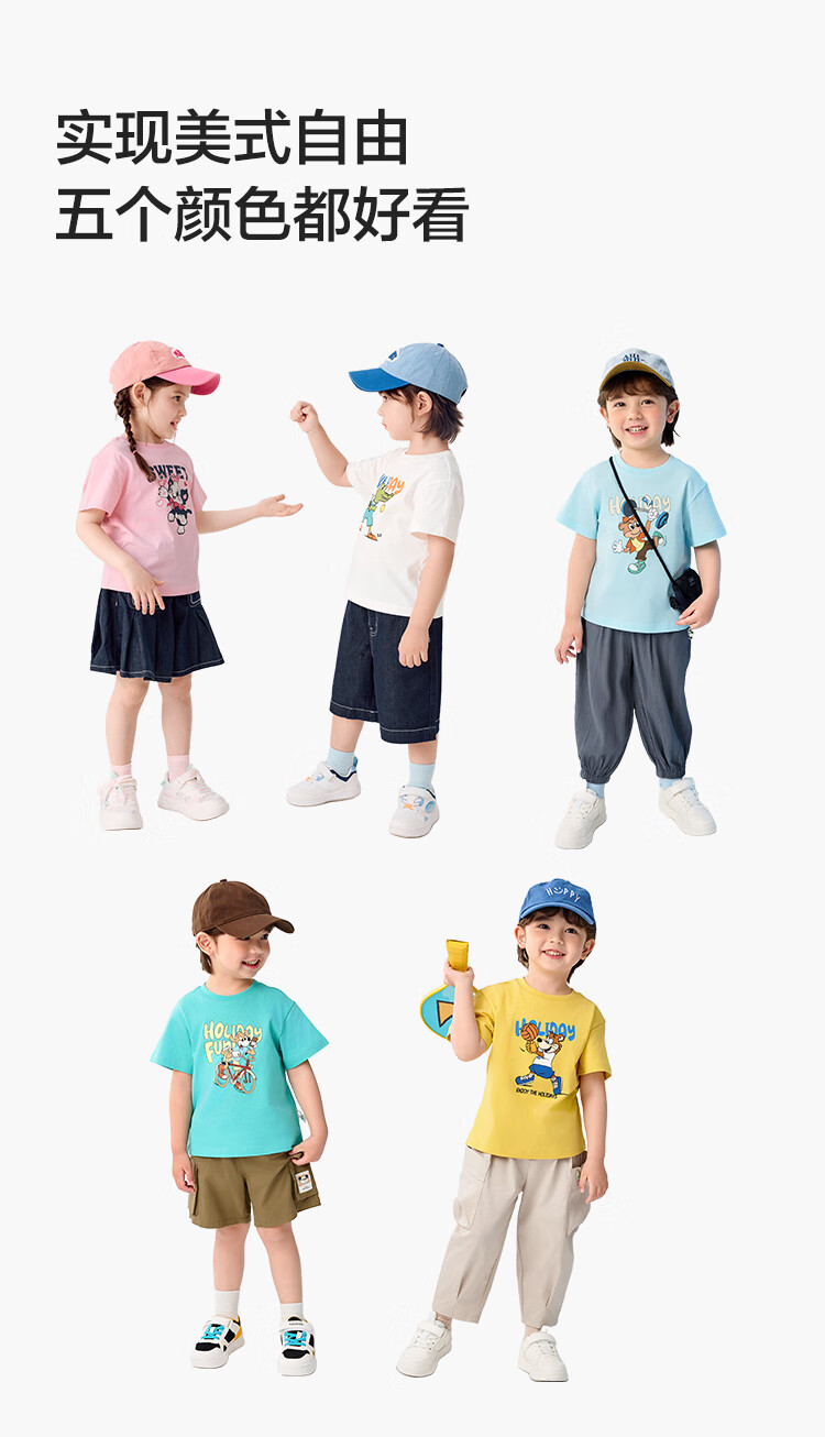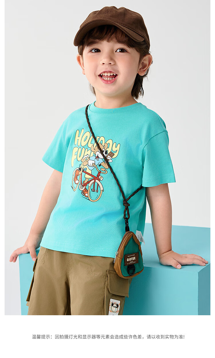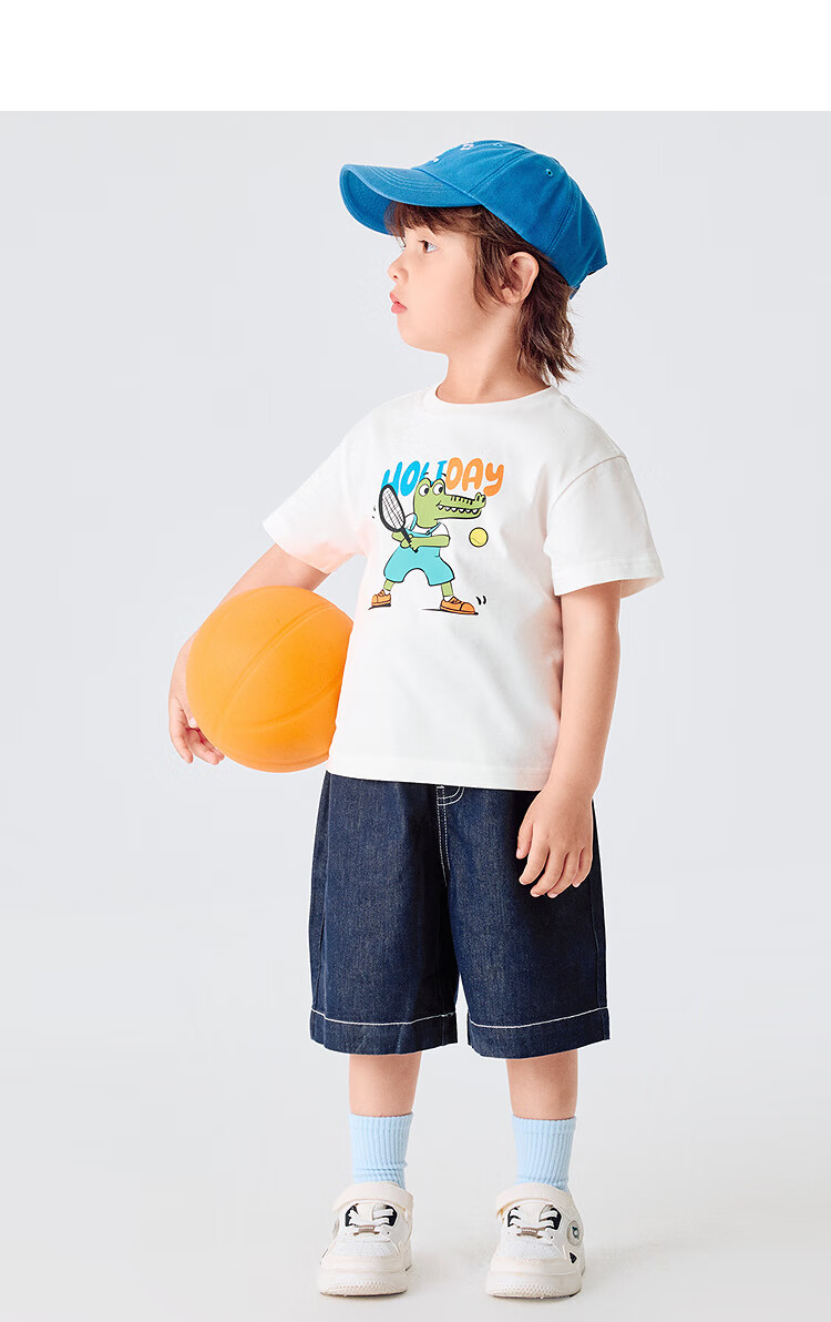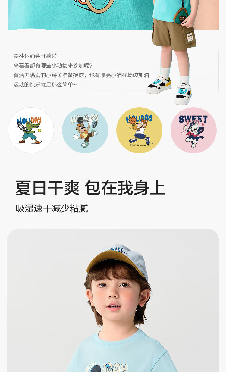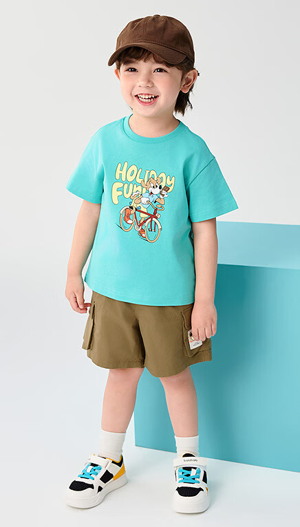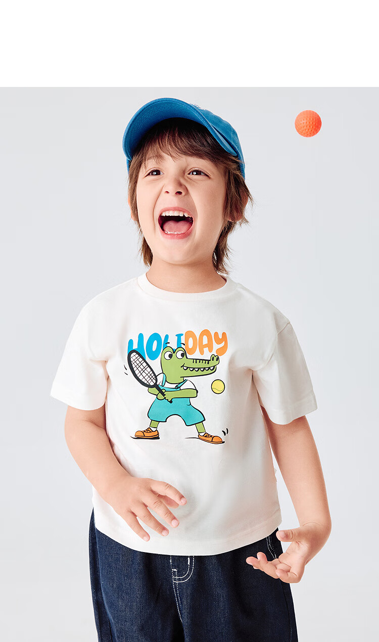 巴拉巴拉童装儿童t恤纯棉短袖上衣女童男童夏装吸湿速干 粉蓝80072 120