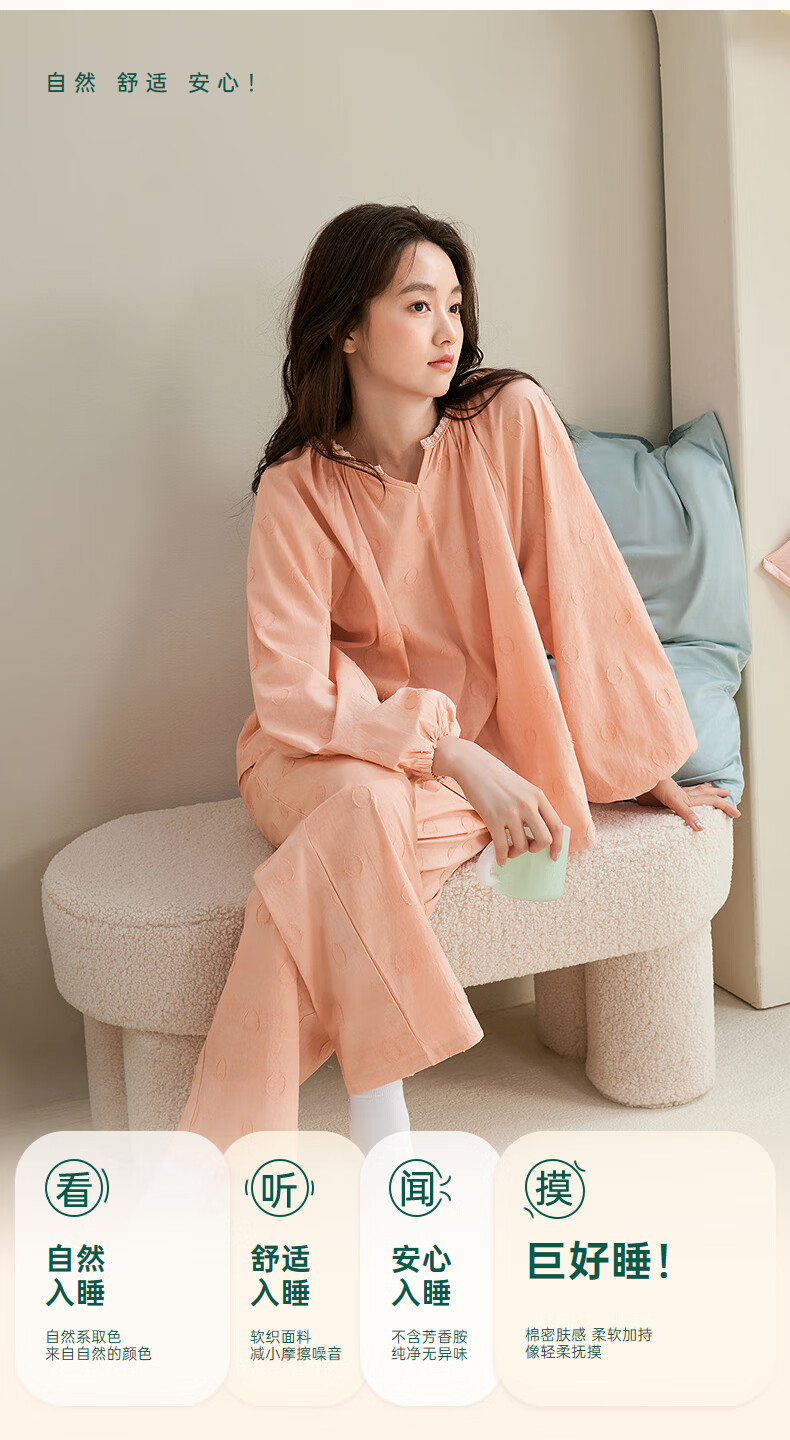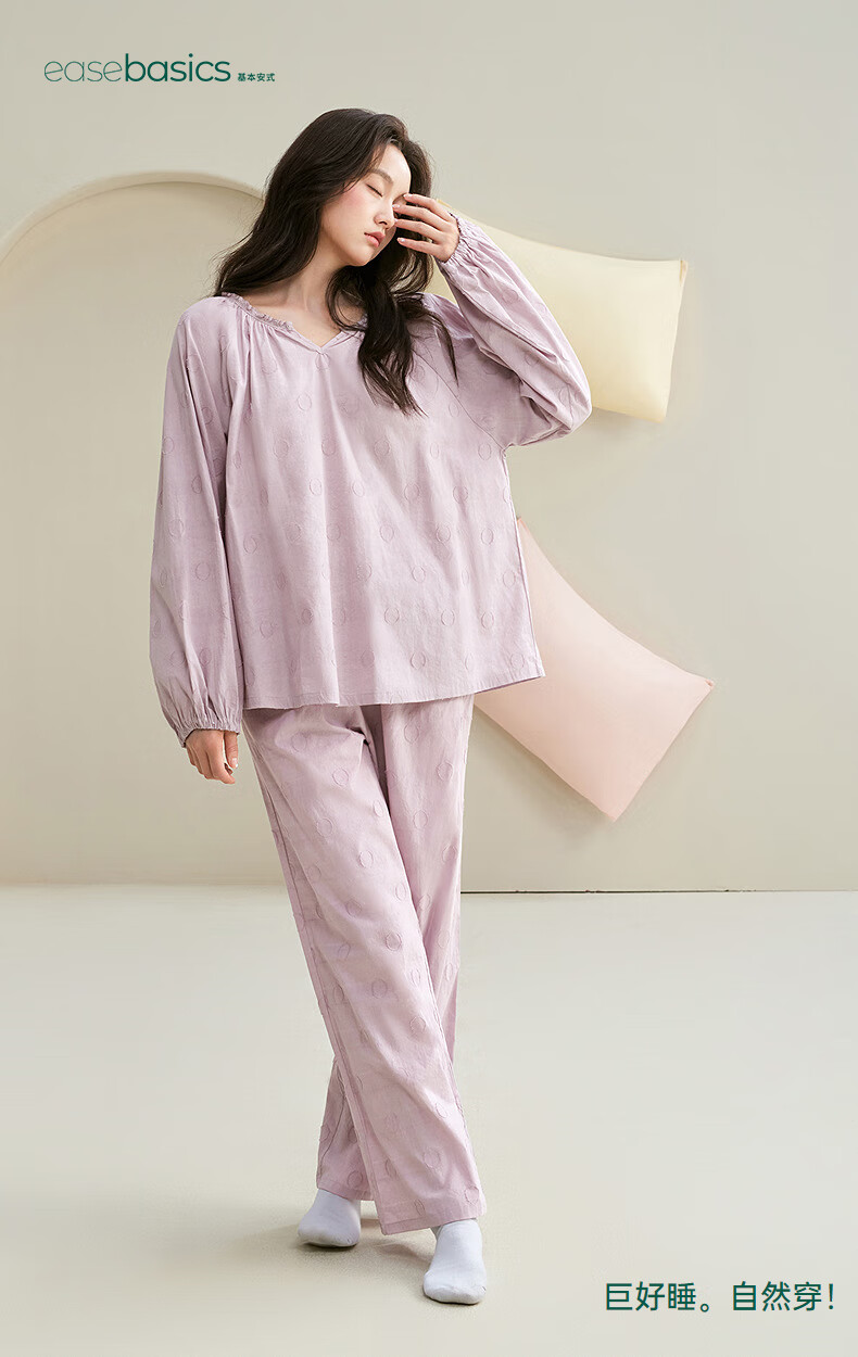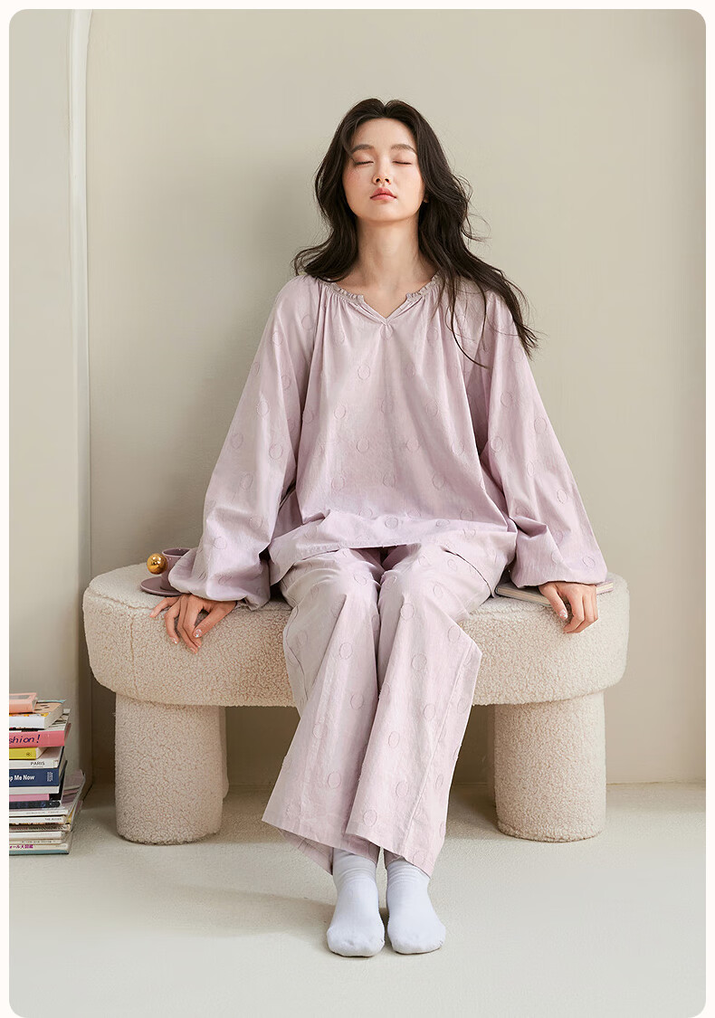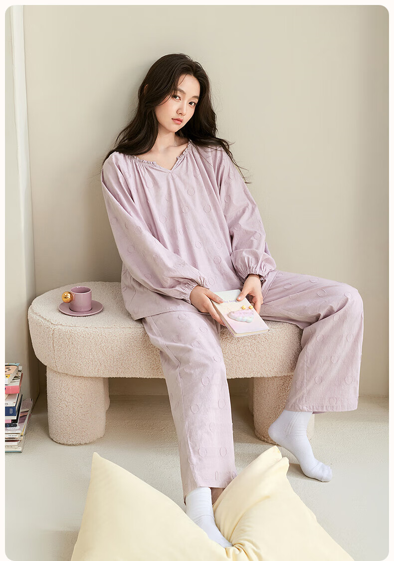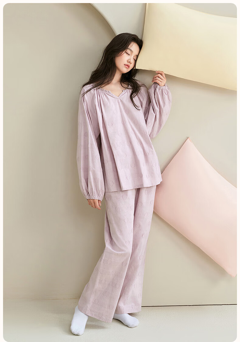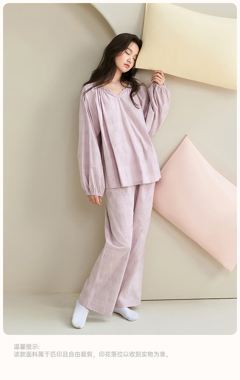 安之伴【巨柔软】睡衣女春秋梭织棉宽松休闲可外穿女士家居服 雾紫 L