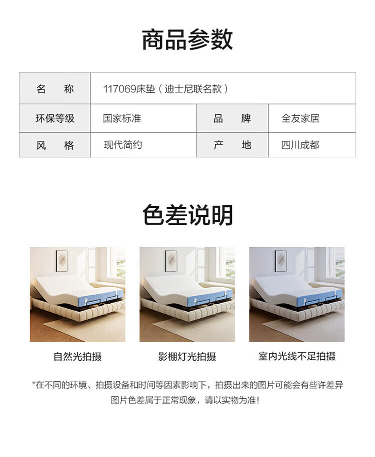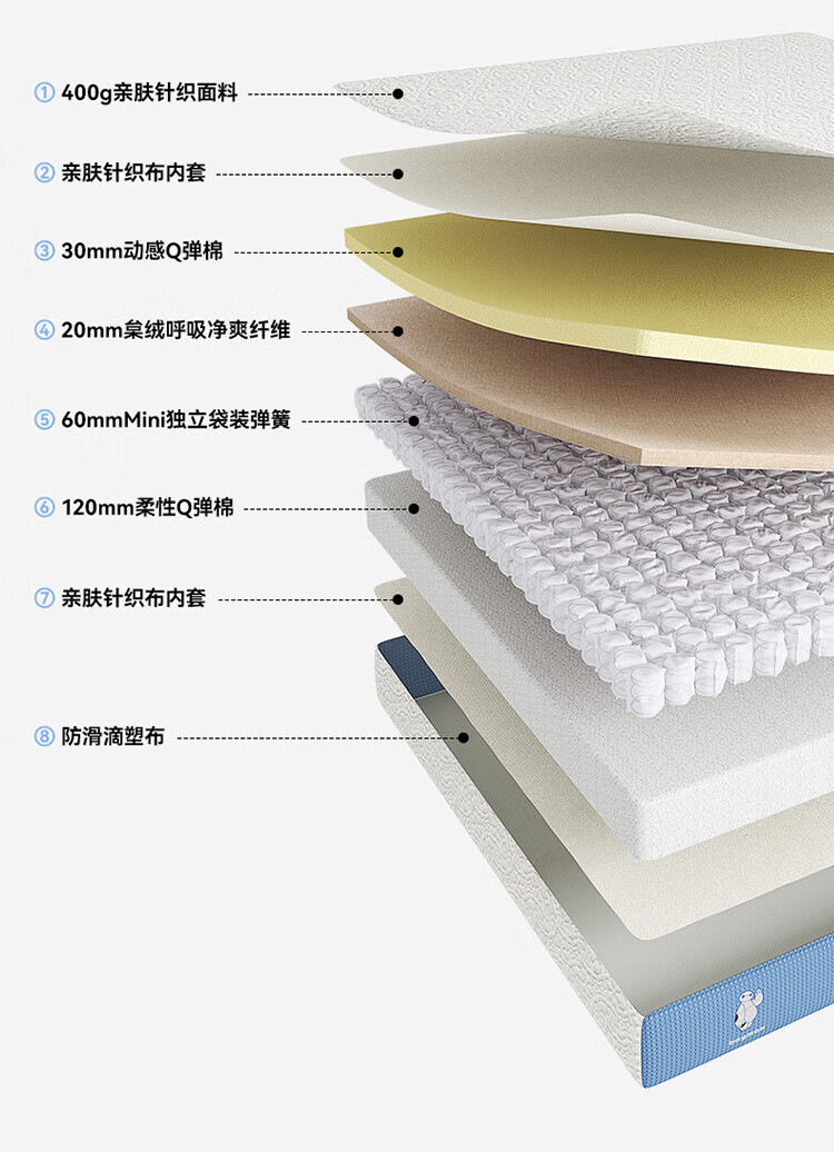 全友家居智能电动床垫独袋弹簧护脊床垫子1.8米x2米偏硬席梦思垫卧室 Q弹棉+独袋弹簧|1.5m床垫