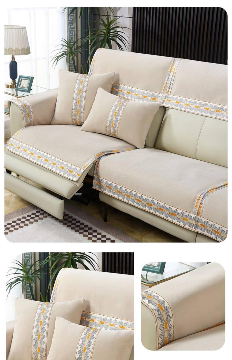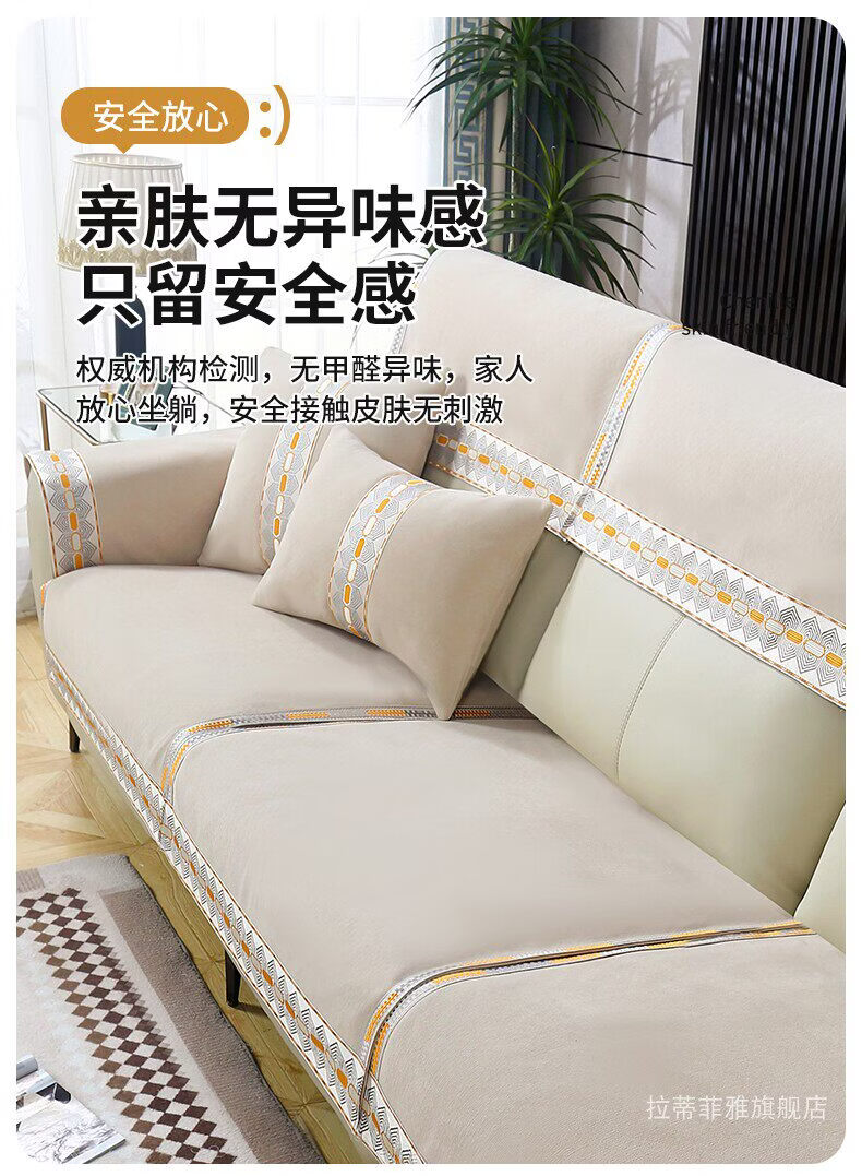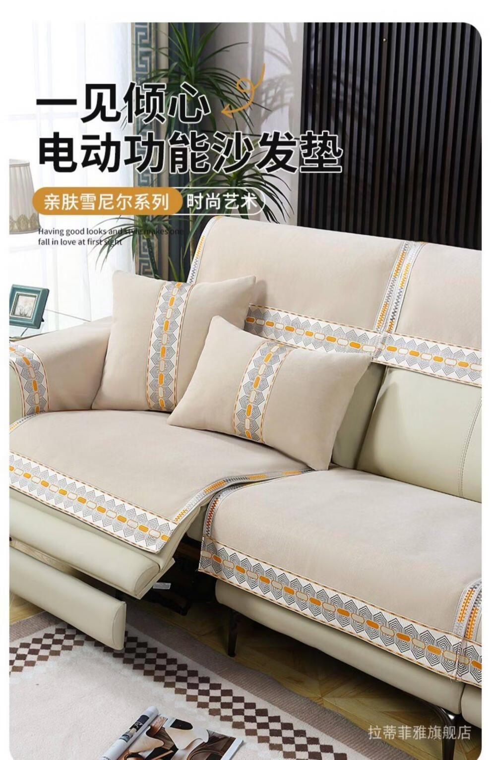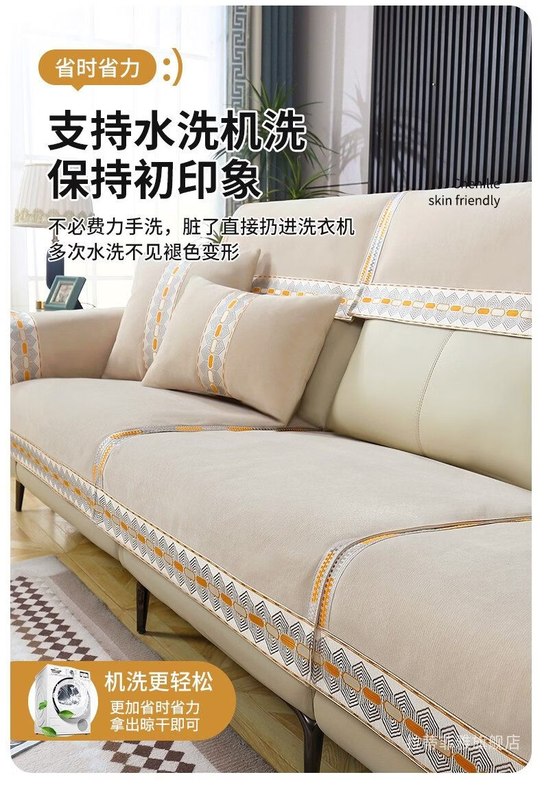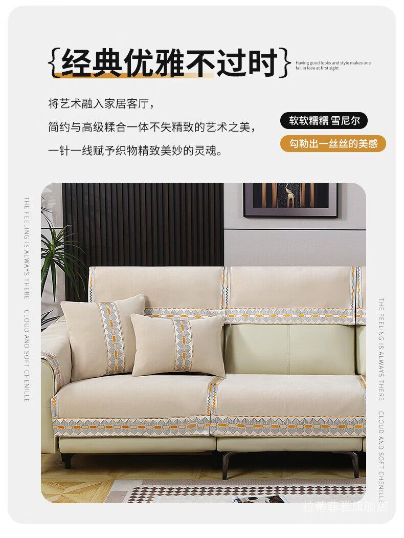正圣沙发垫四季通用防滑2026年新款雪尼尔电动功能沙发专用坐垫 诗情-米色(两件式) 60cm*60cm 靠背巾或坐垫