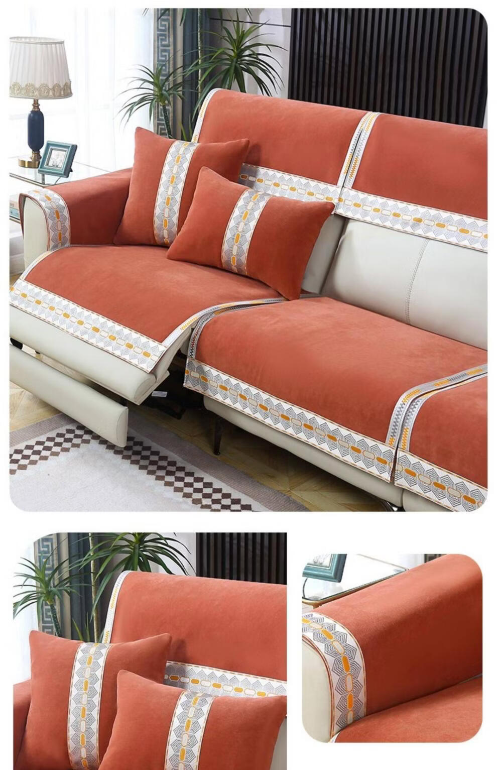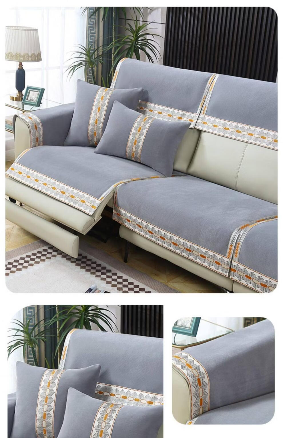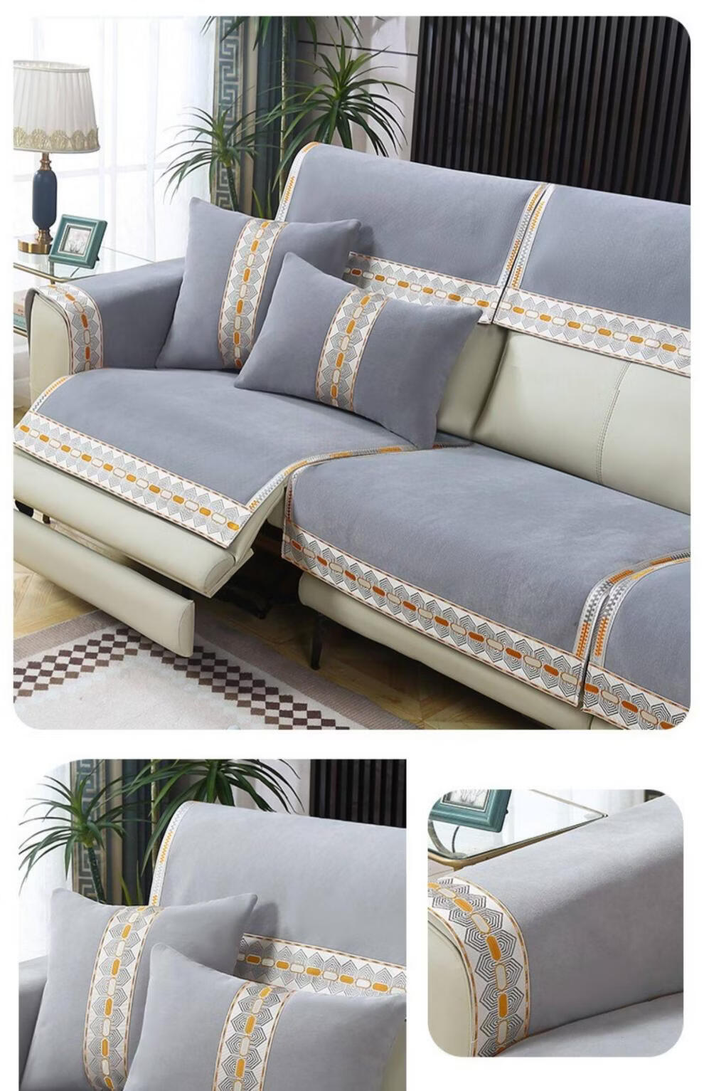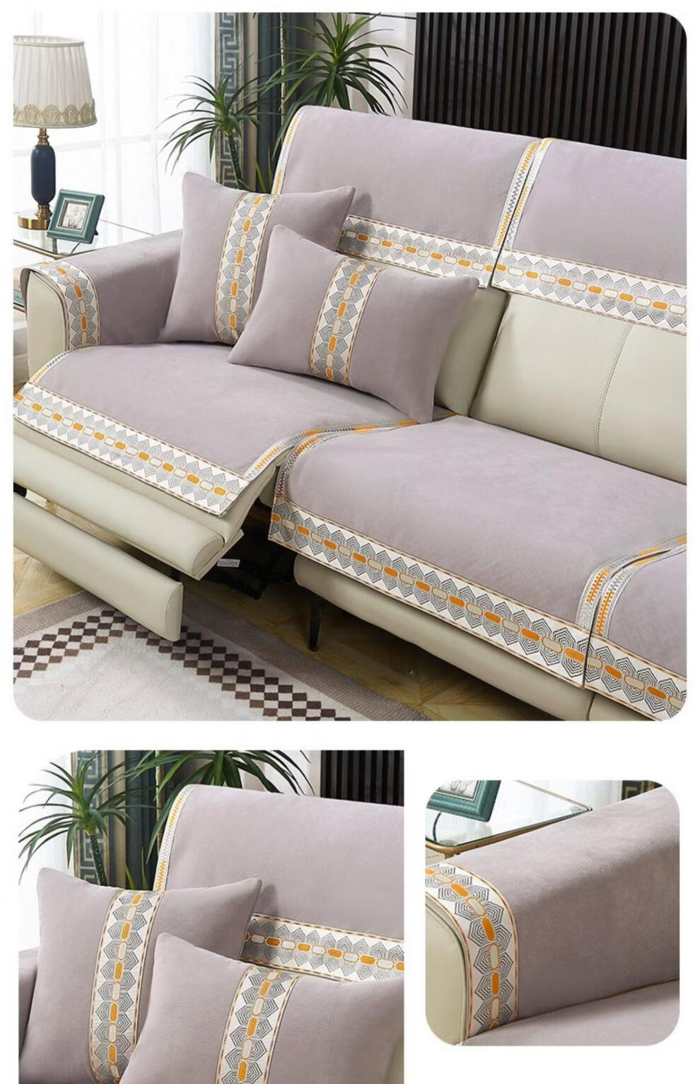 正圣沙发垫四季通用防滑2026年新款雪尼尔电动功能沙发专用坐垫 诗情-米色(两件式) 60cm*60cm 靠背巾或坐垫