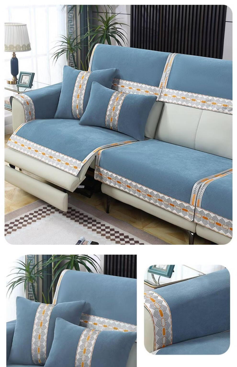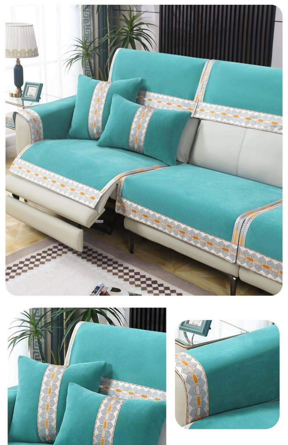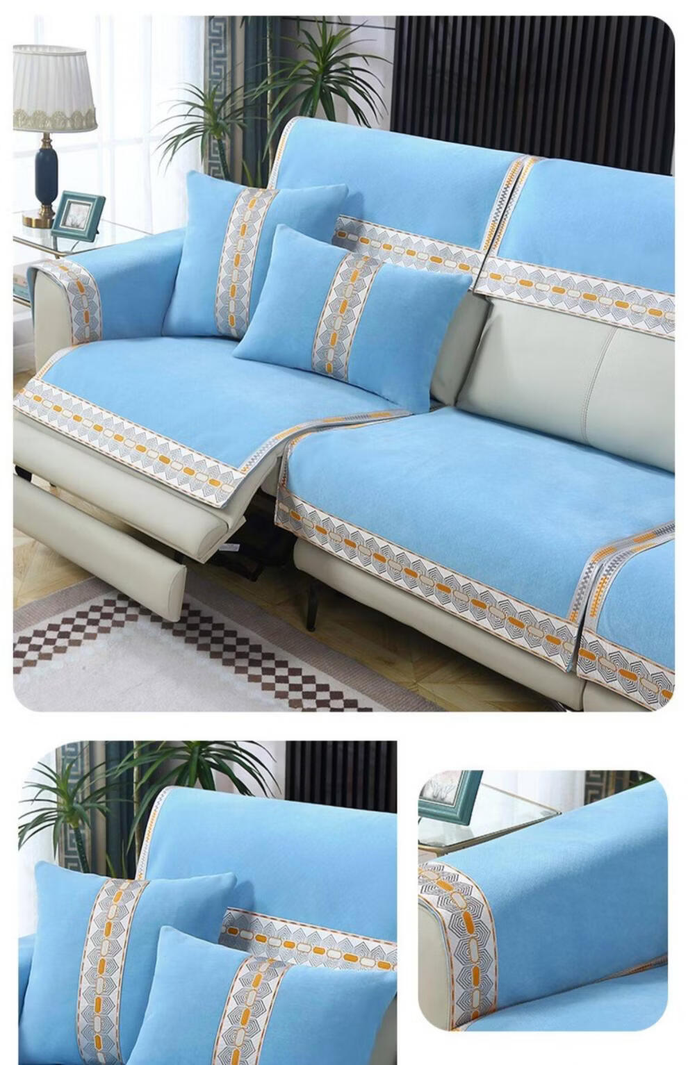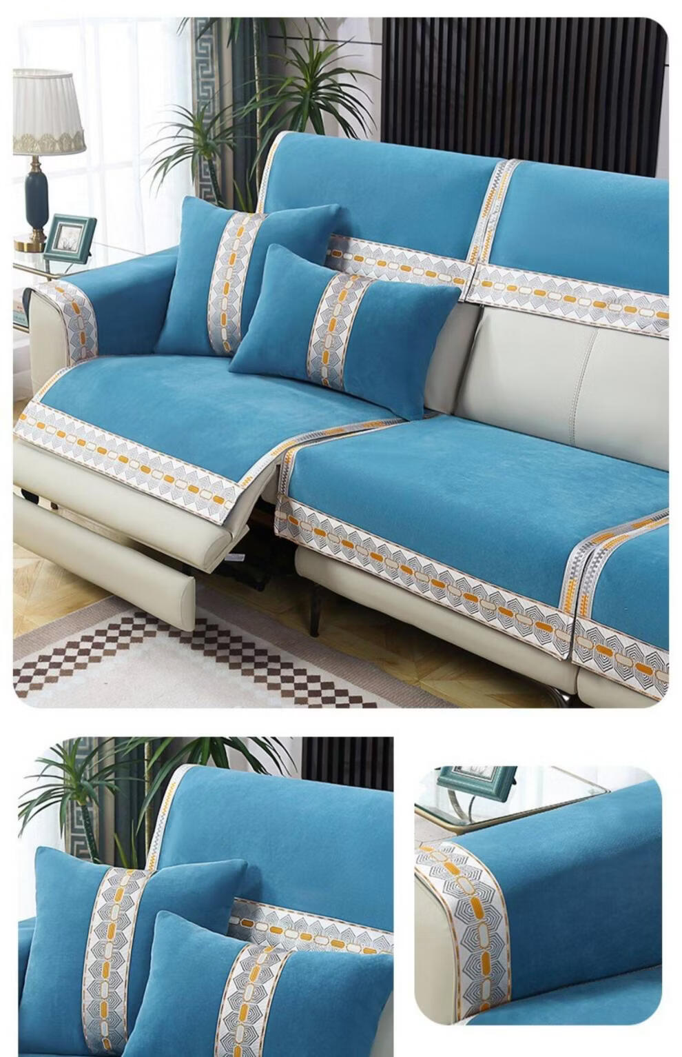 正圣沙发垫四季通用防滑2026年新款雪尼尔电动功能沙发专用坐垫 诗情-米色(两件式) 60cm*60cm 靠背巾或坐垫