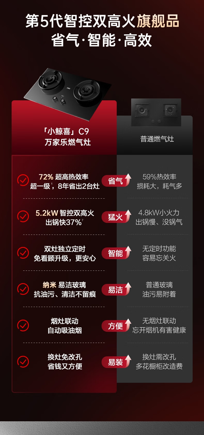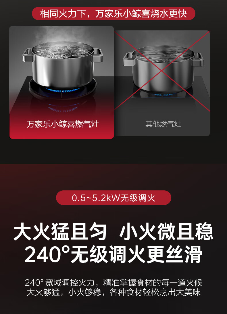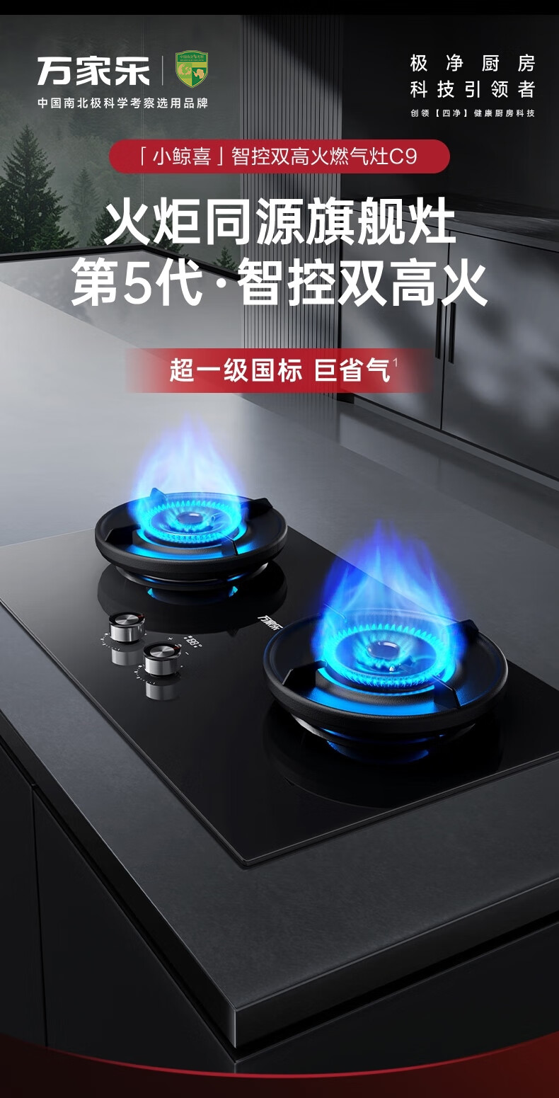 万家乐【全红婵同款超净燃气灶·魔净C9R1】5.2kw大火力灶72%热效率双边定时灶换新免扩孔烟灶联动天然气