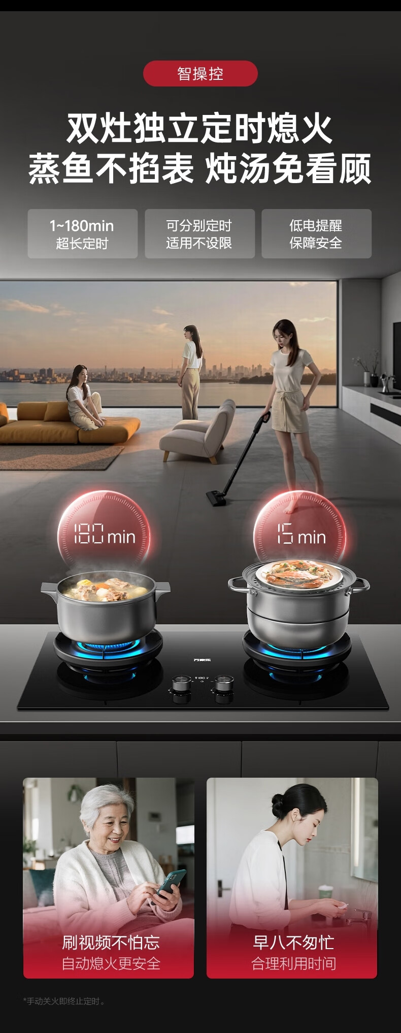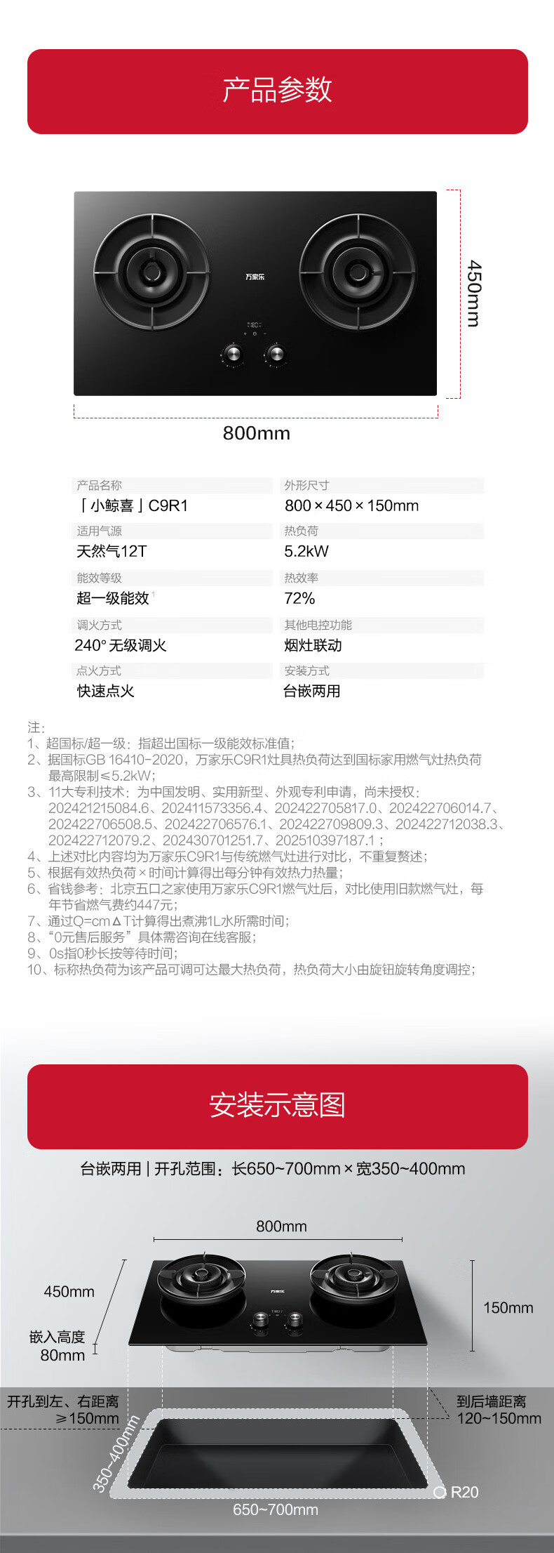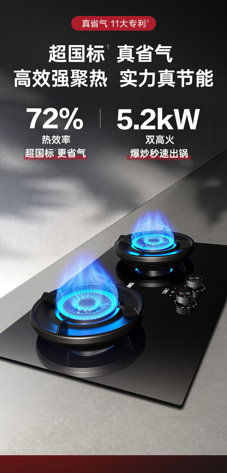 万家乐【全红婵同款超净燃气灶·魔净C9R1】5.2kw大火力灶72%热效率双边定时灶换新免扩孔烟灶联动天然气